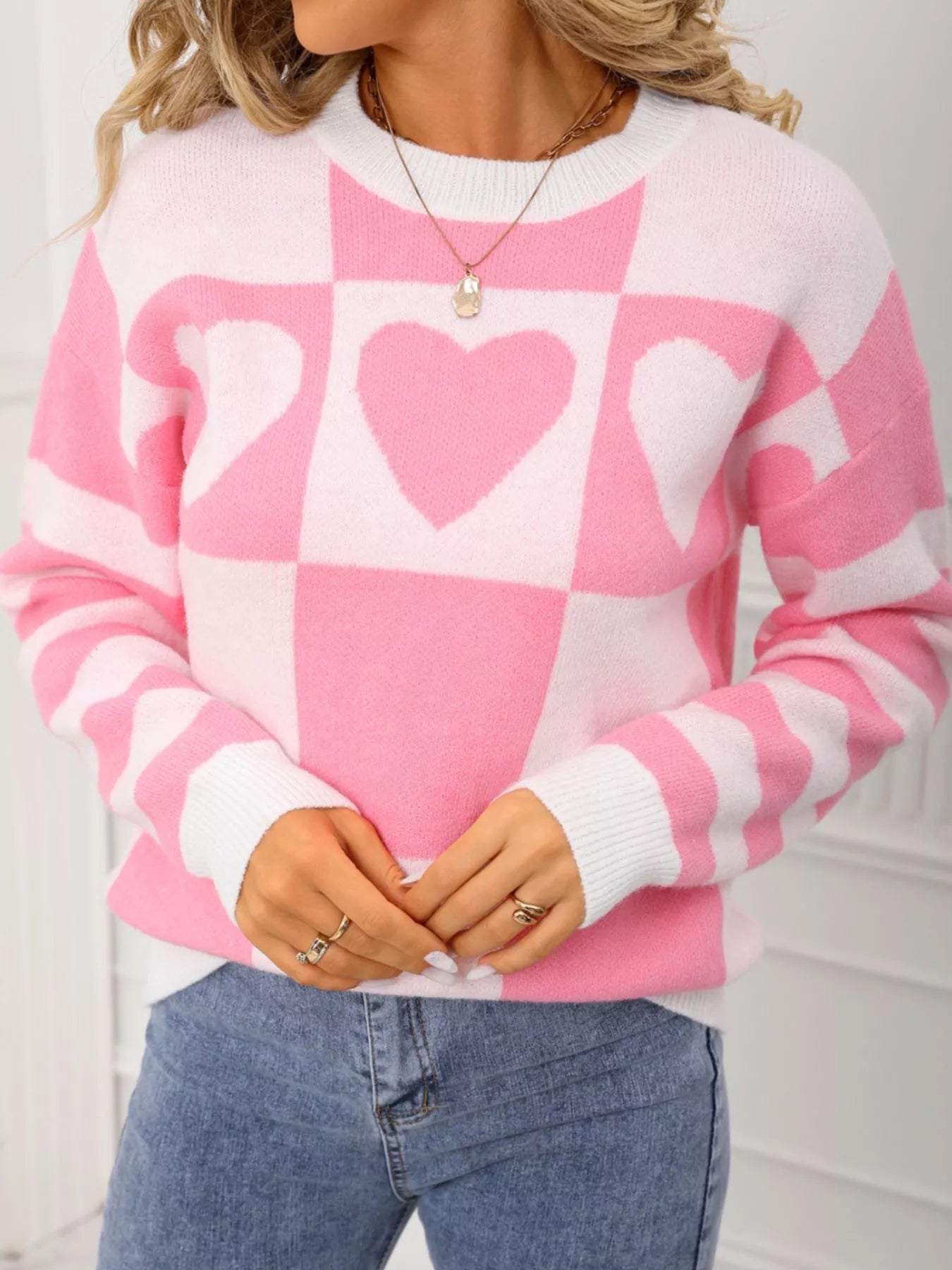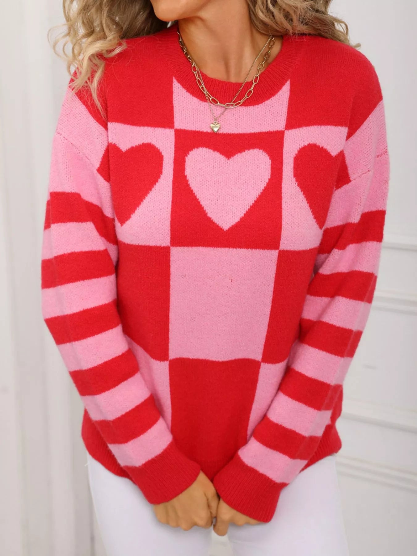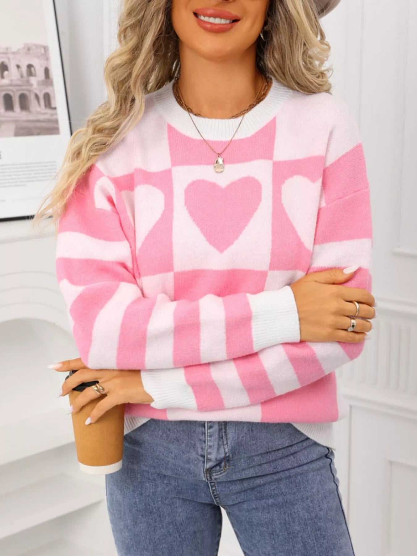 Valentine's Day Heart Round Neck Dropped Shoulder Sweater