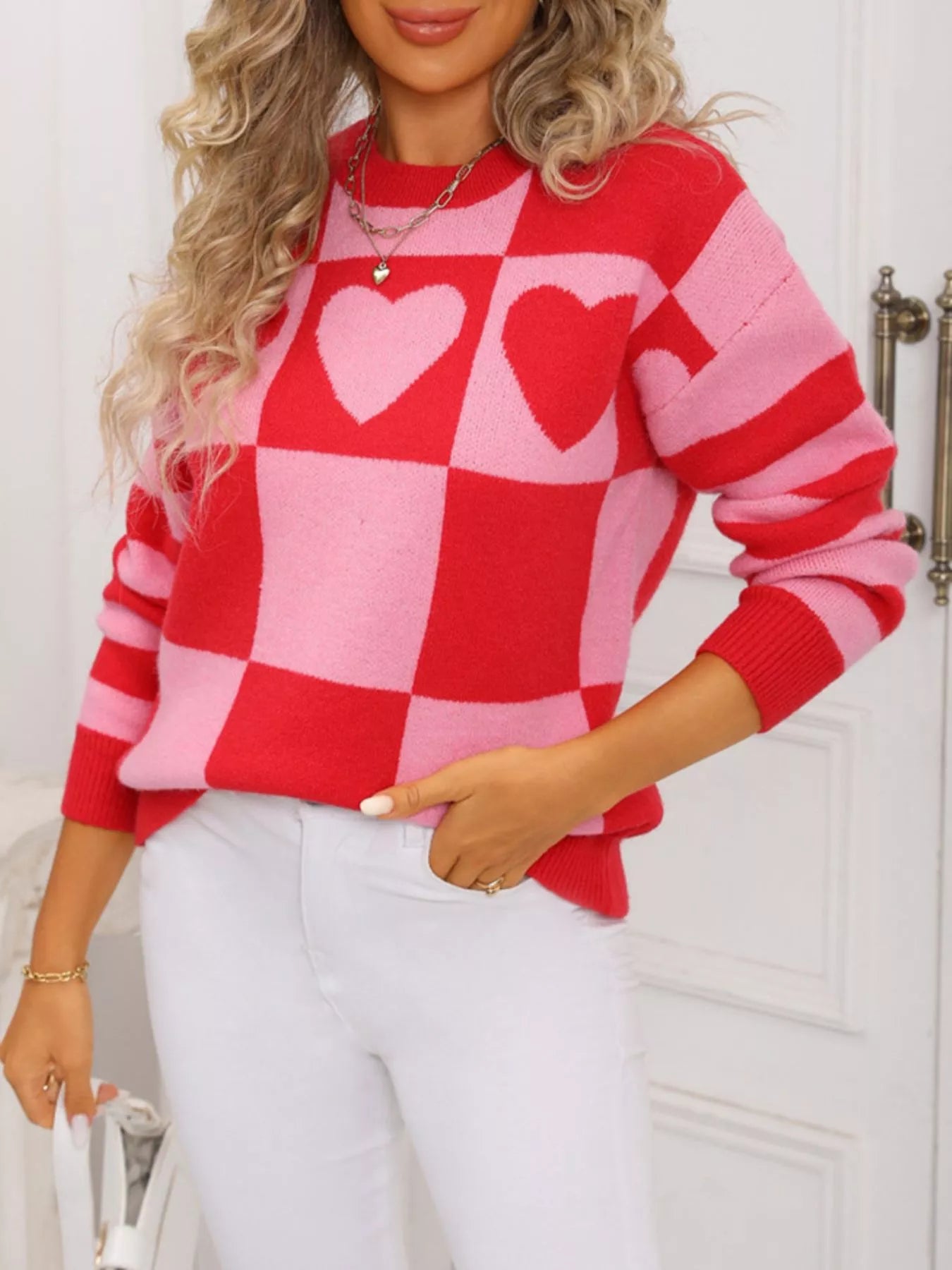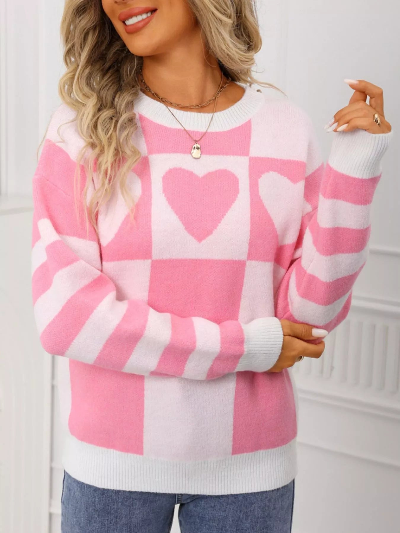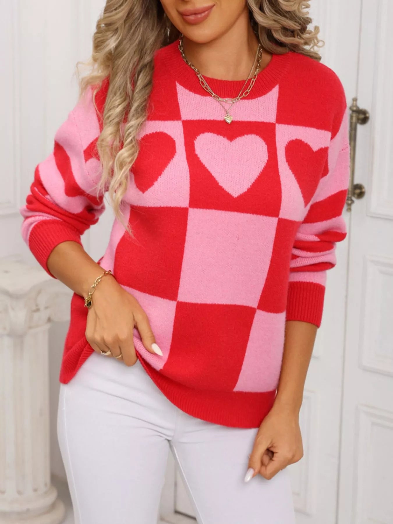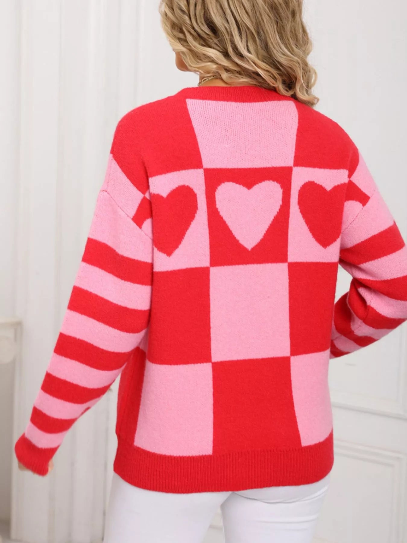 Valentine's Day Heart Round Neck Dropped Shoulder Sweater