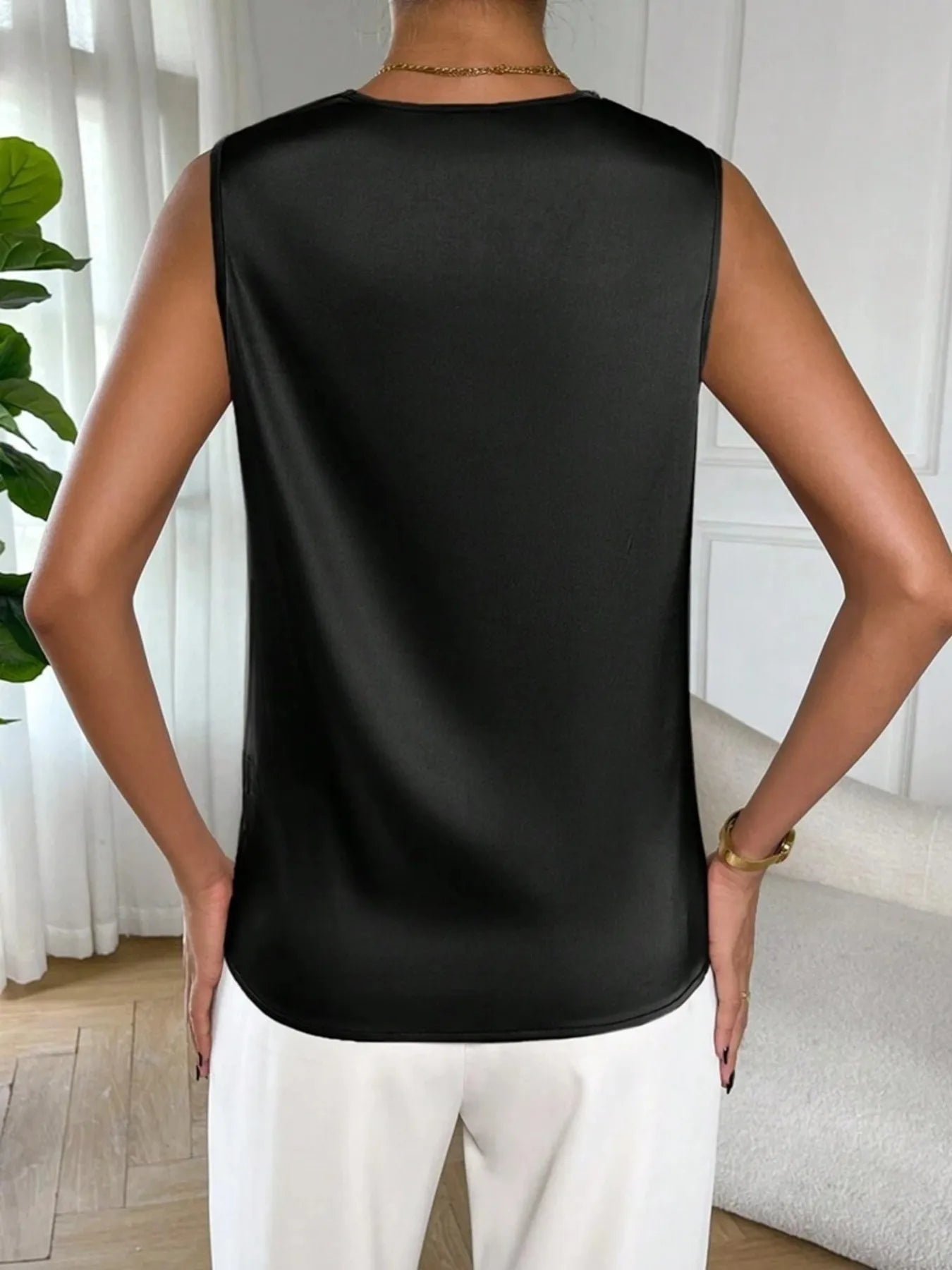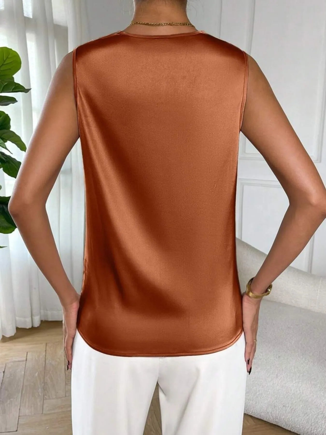 Satin Cowl Neck Sleeveless Blouse