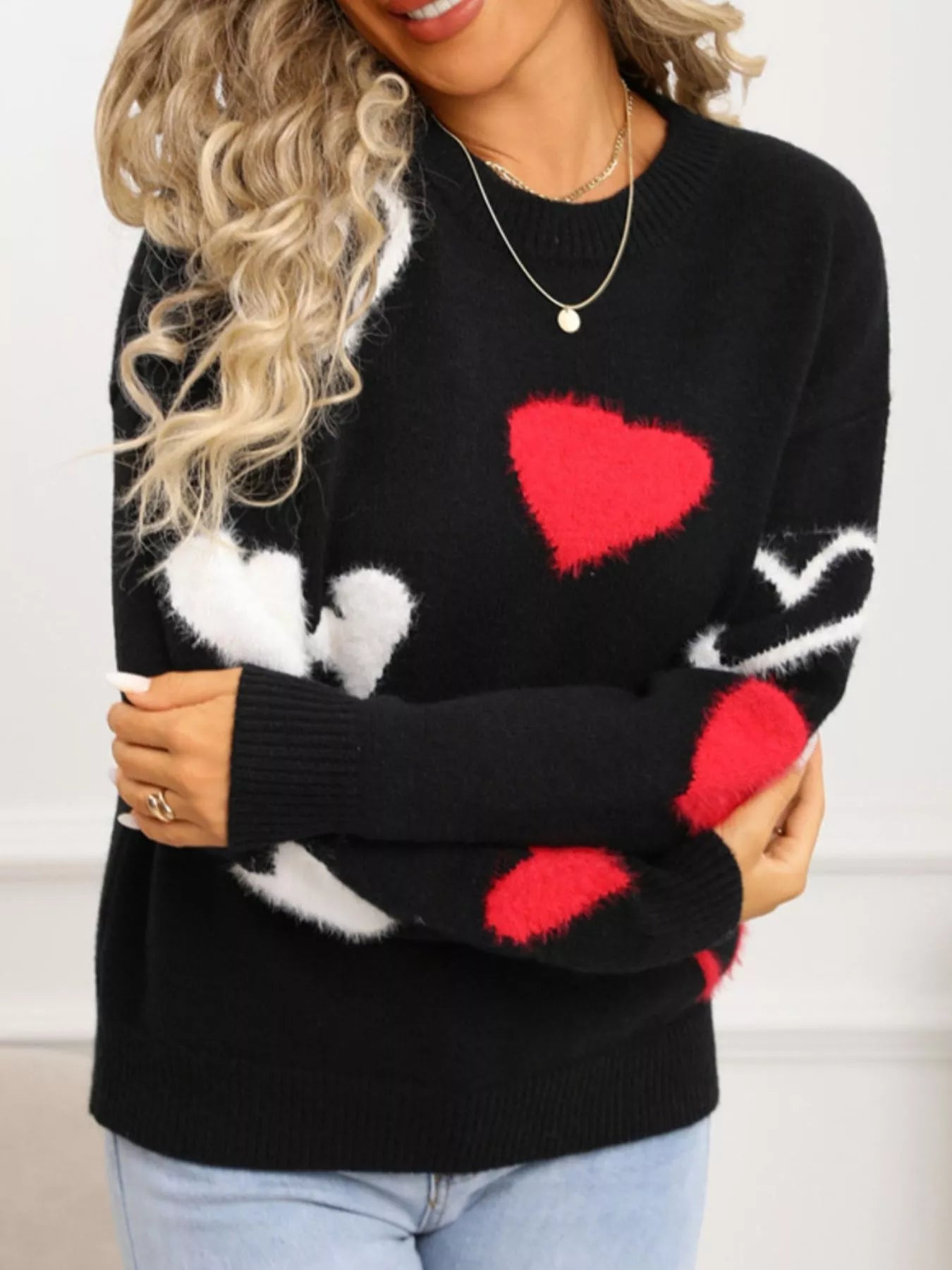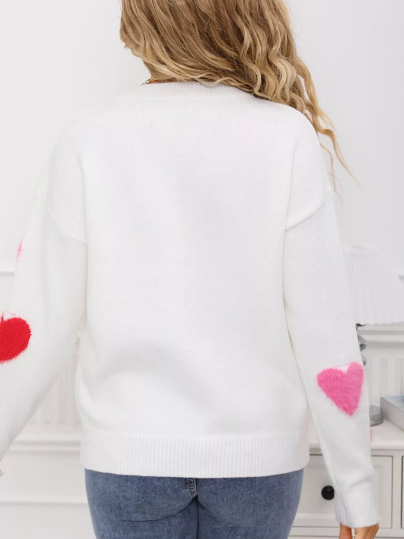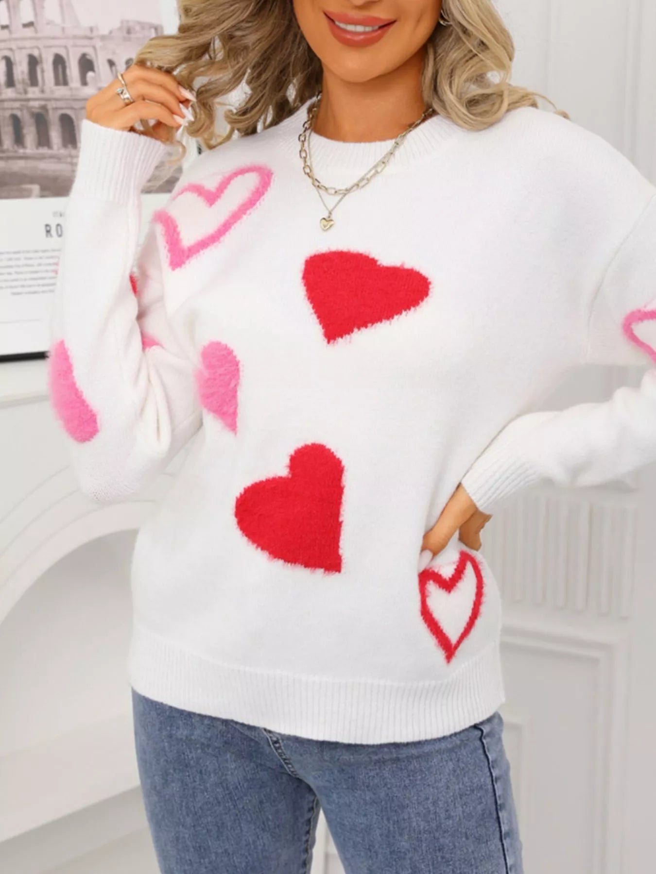 Valentine's Day Heart Round Neck Dropped Shoulder Sweater