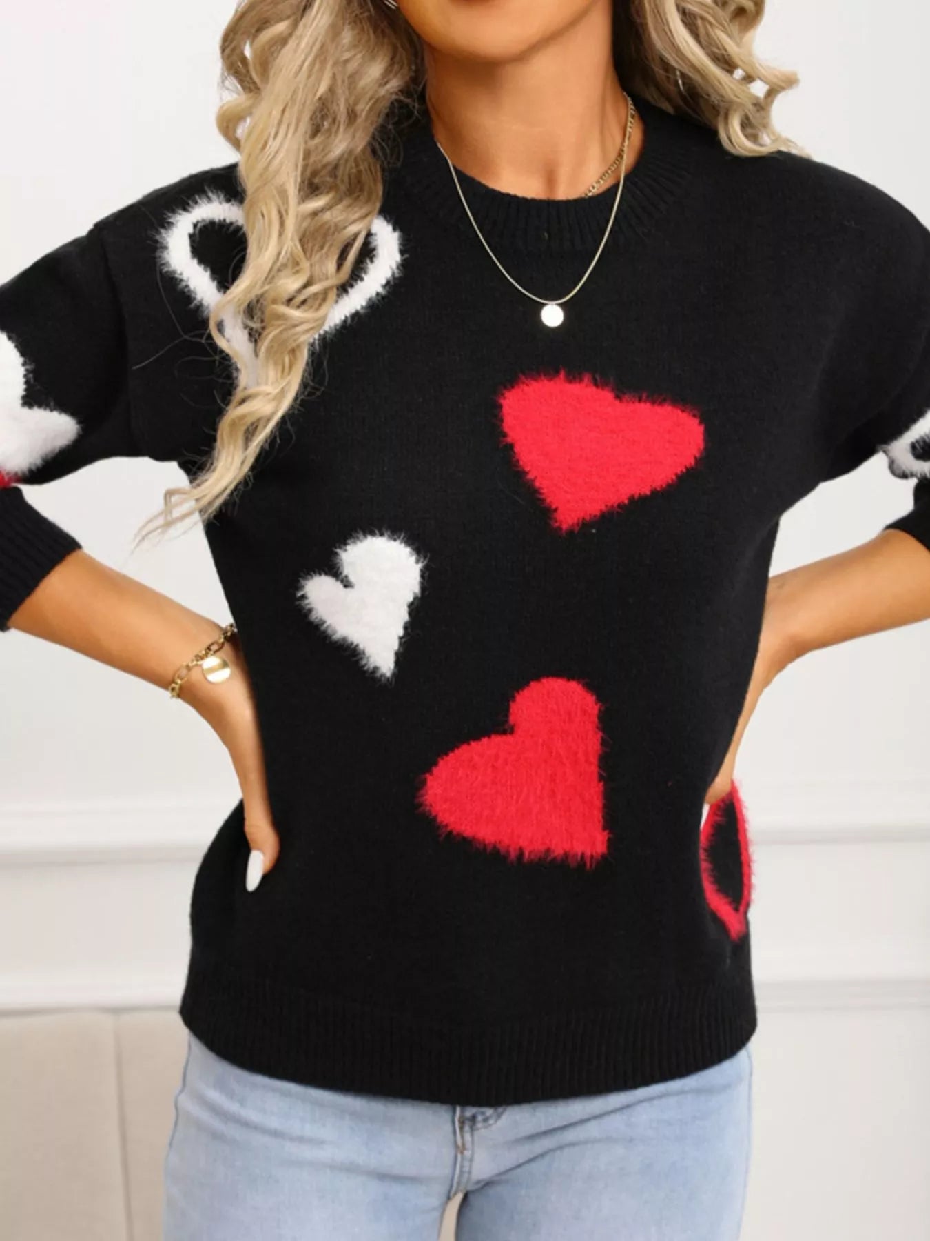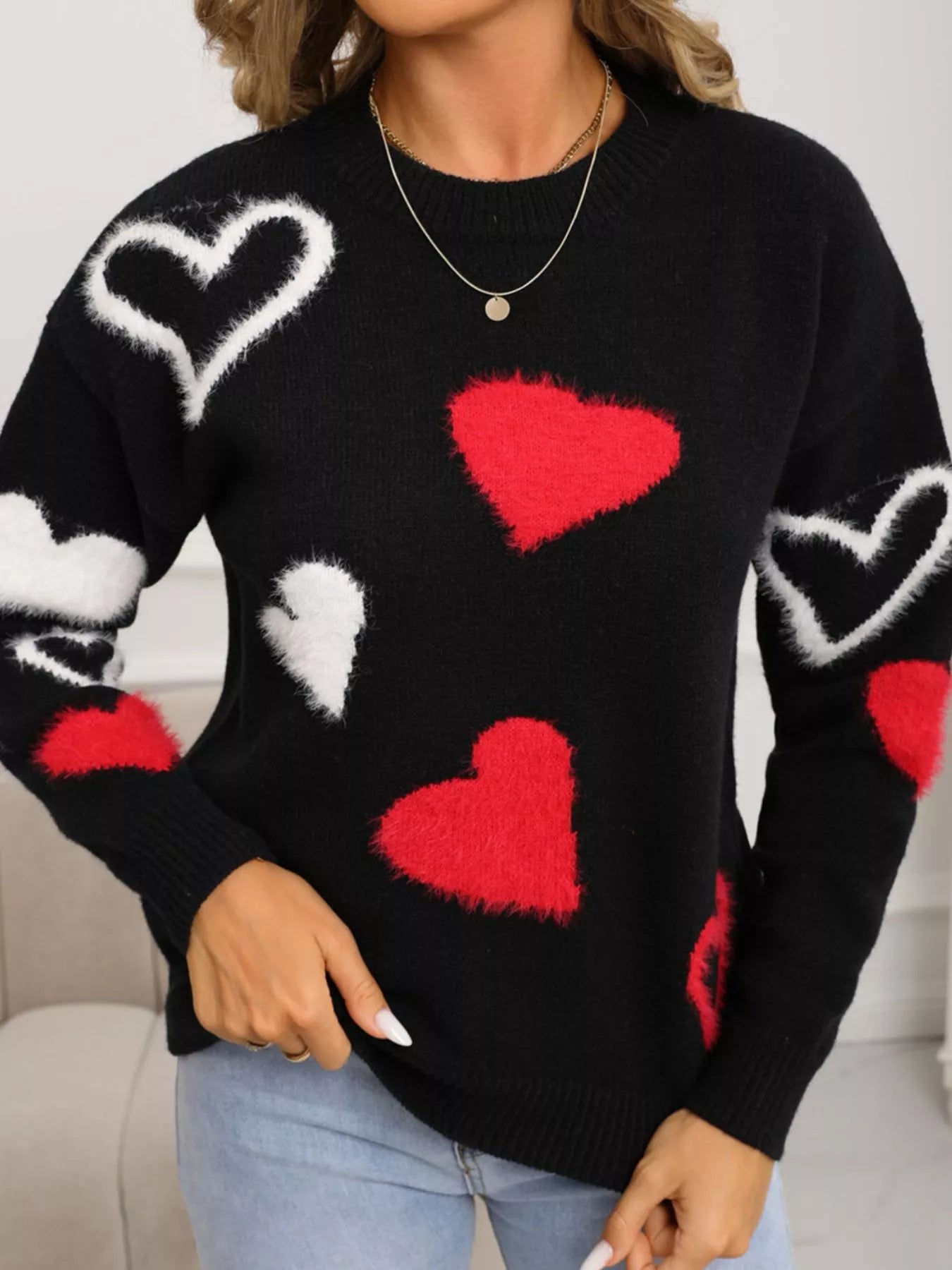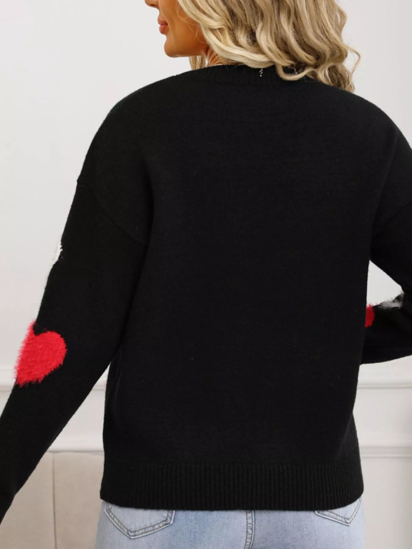 Valentine's Day Heart Round Neck Dropped Shoulder Sweater