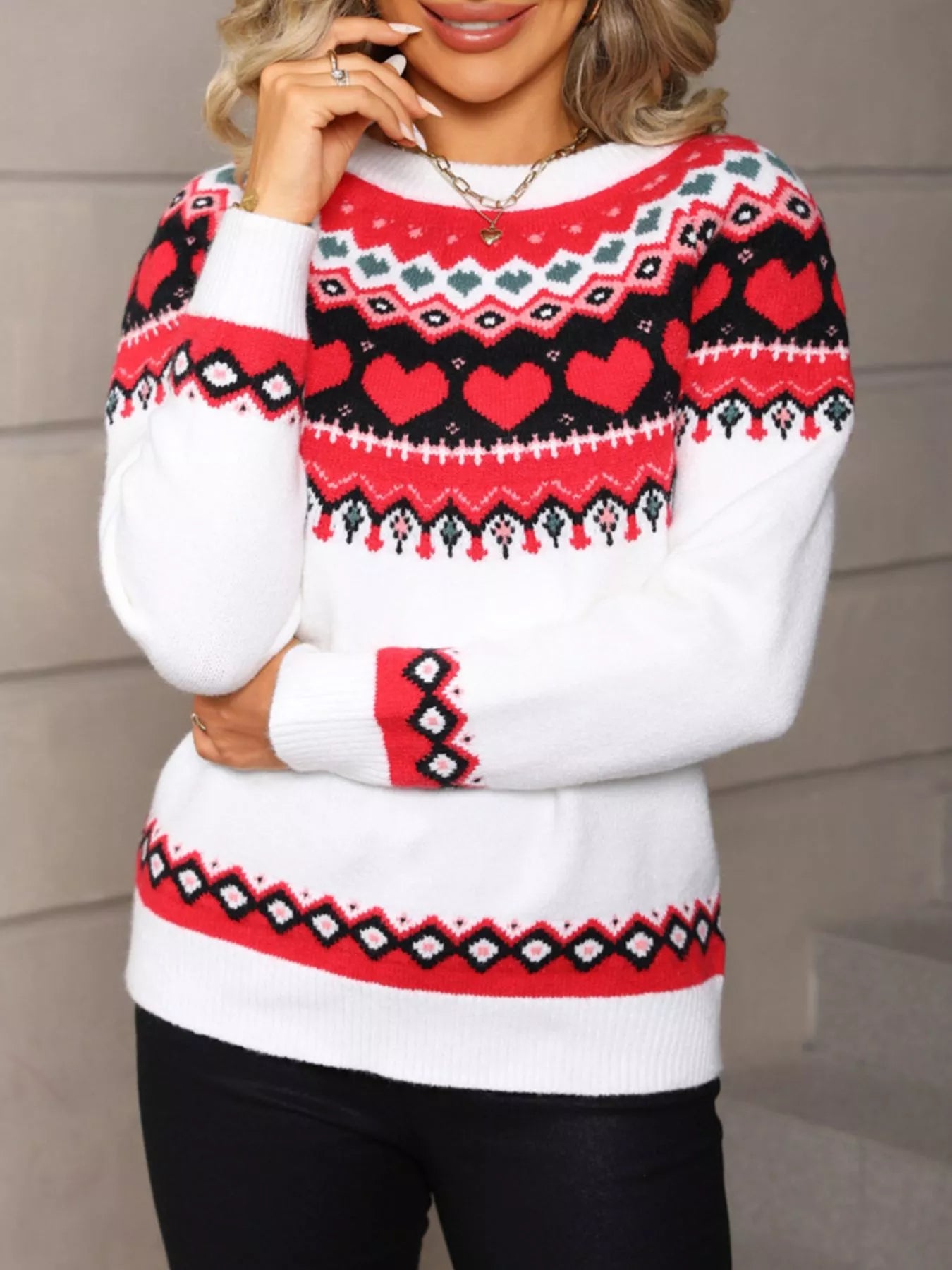 Valentine's Day Heart Pattern Knitted Sweater