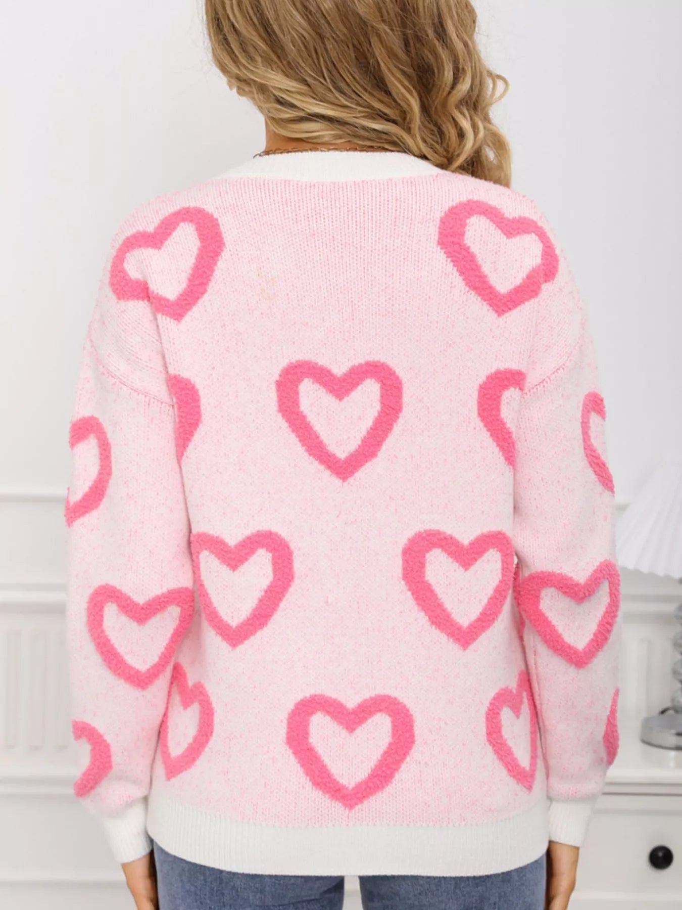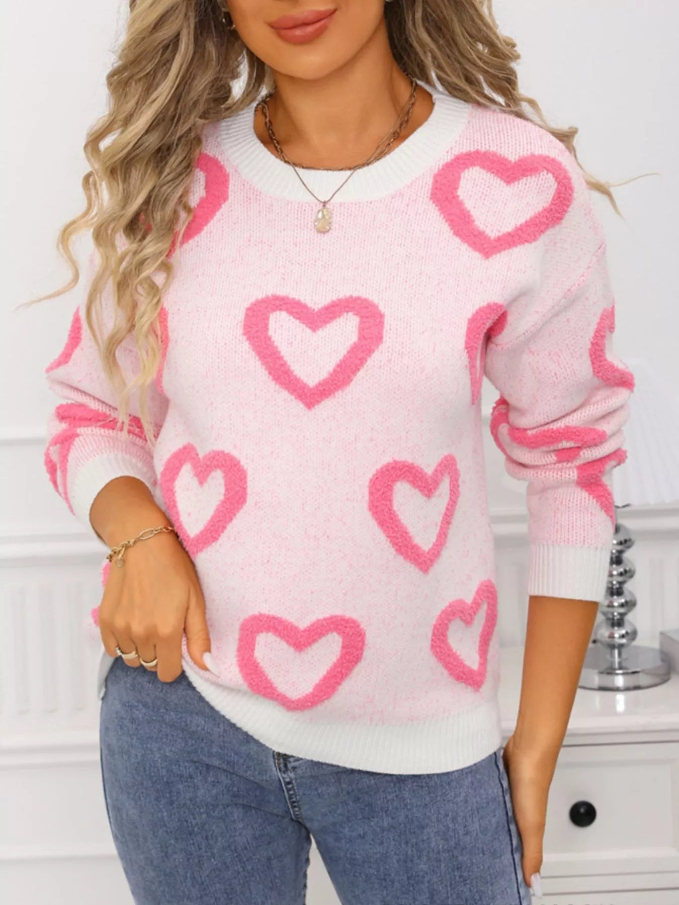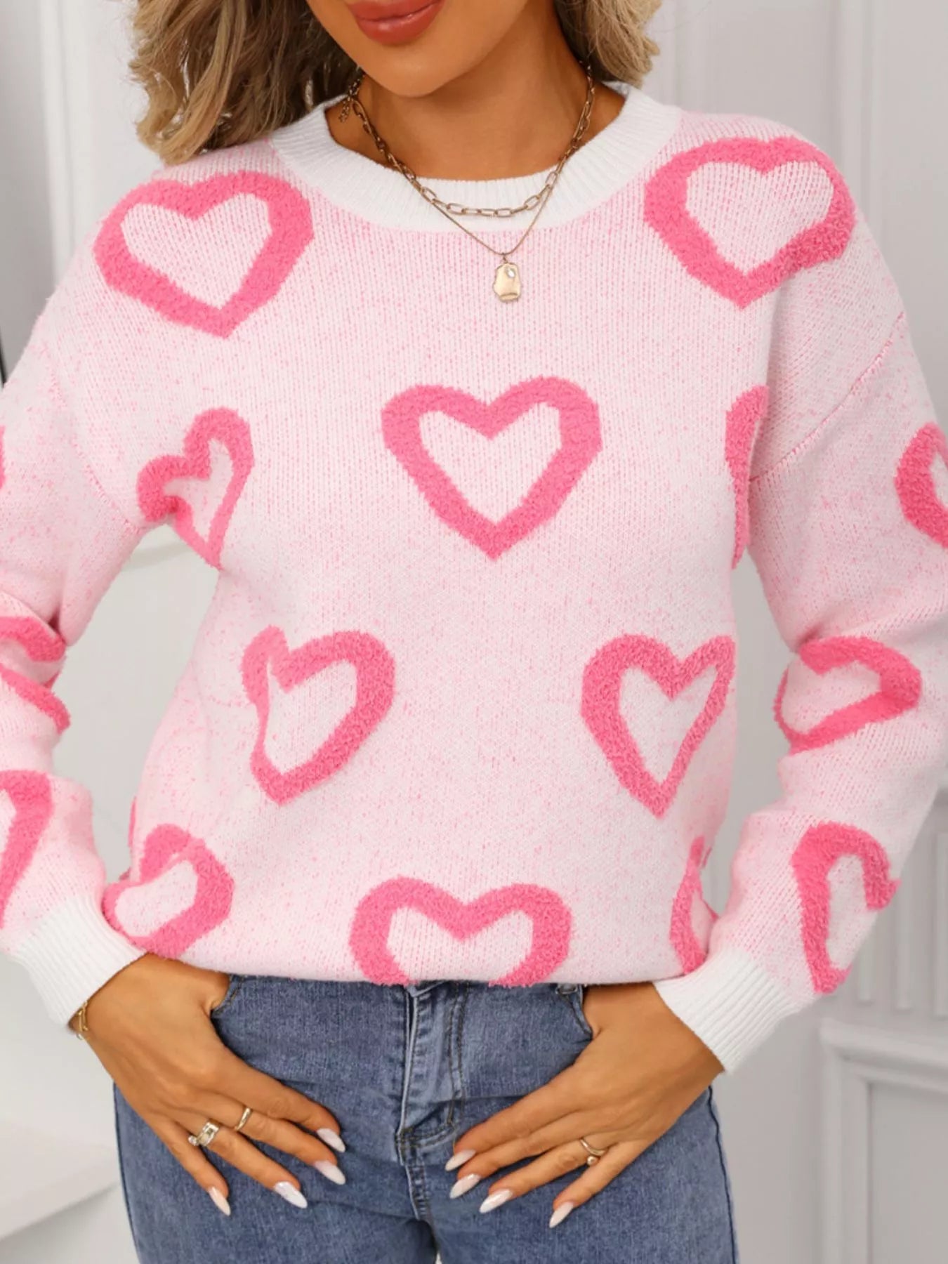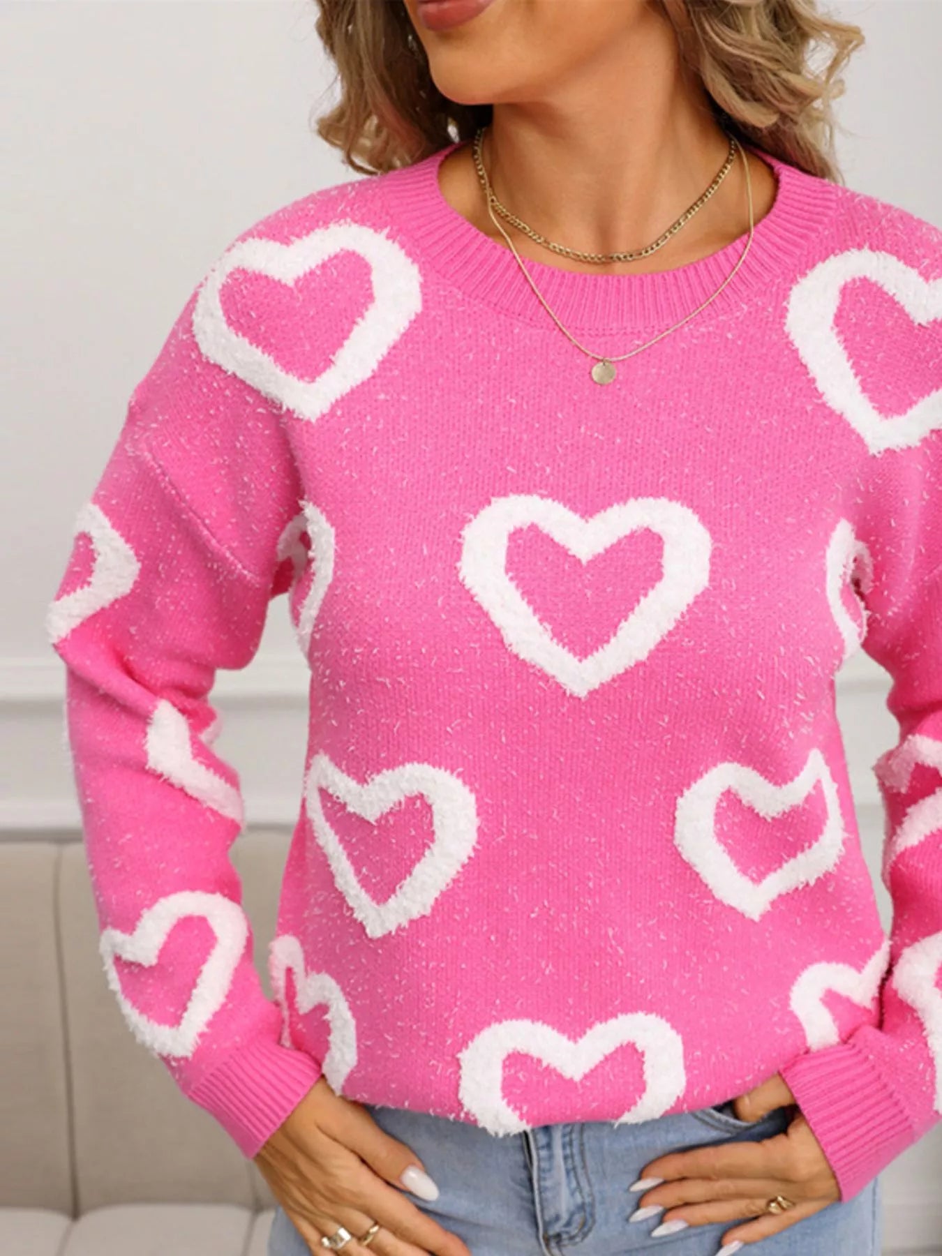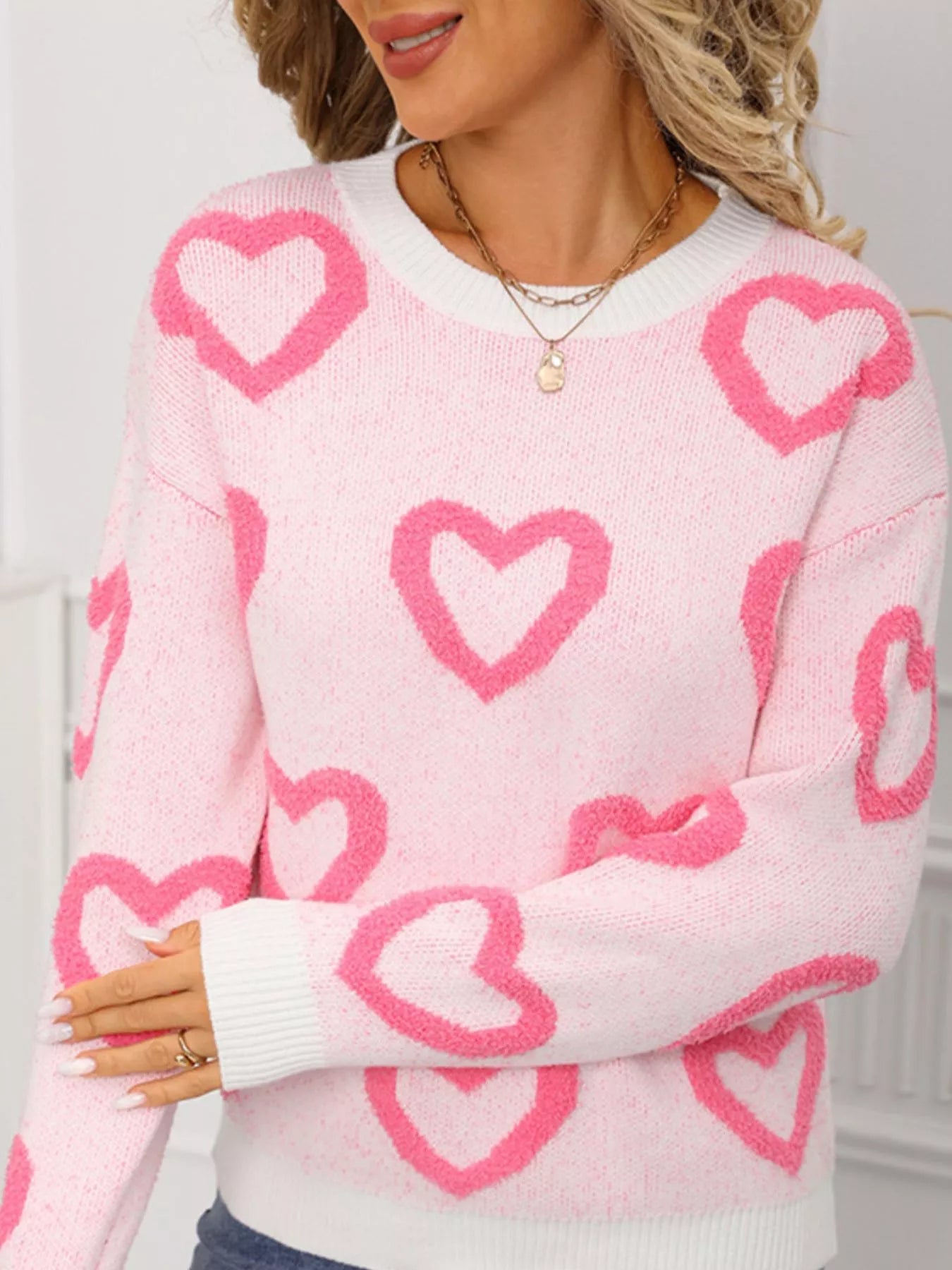 Valentine's Day Heart Round Neck Dropped Shoulder Sweater