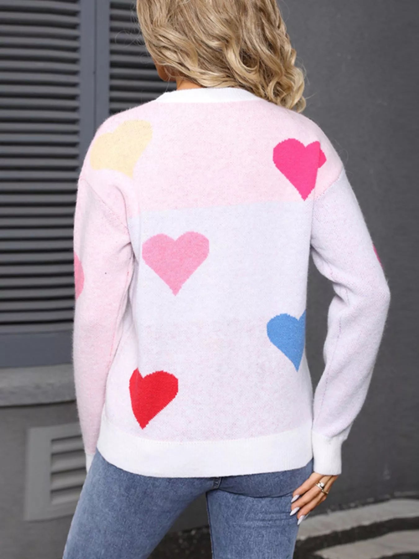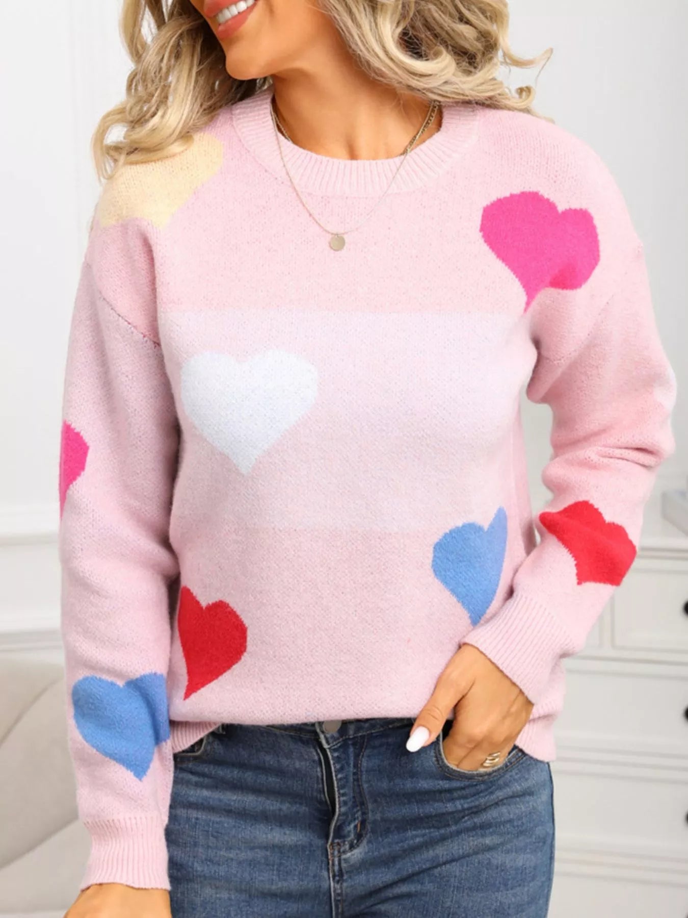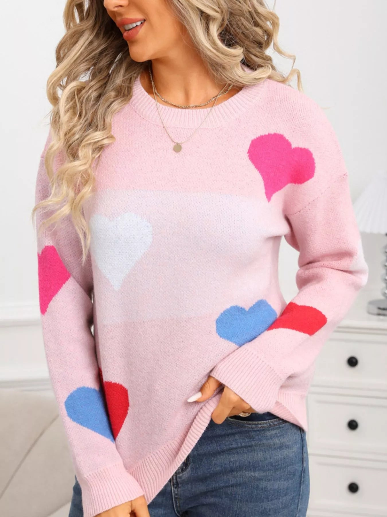 Valentine's Day Heart Round Neck Dropped Shoulder Sweater