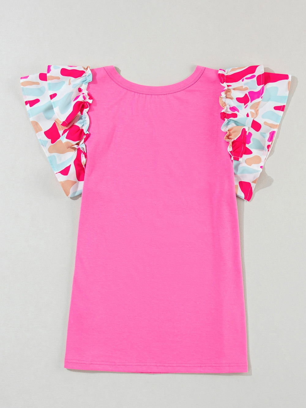 Ruffled Printed V-Neck Short Sleeve Blouse