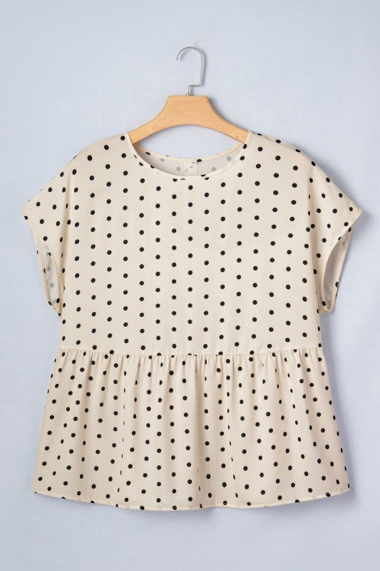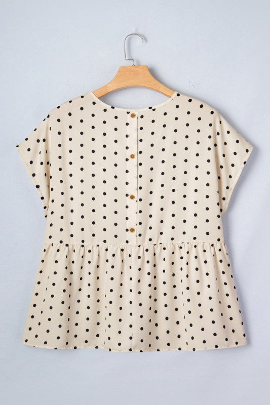 Plus Size Polka Dot Button Back Babydoll Blouse