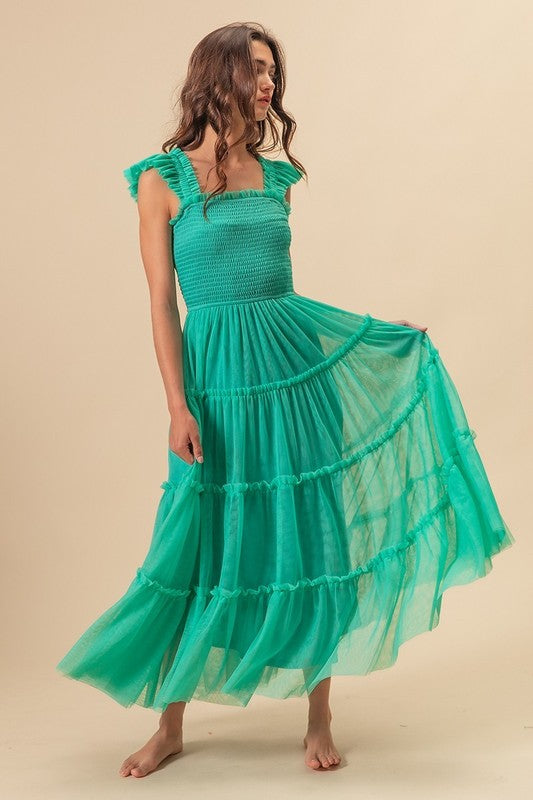 The Frill Mesh Tiered Midi Dress is a romantic and elegant choice for any special occasion. The tiered design with frill details creates a whimsical and feminine silhouette. The mesh fabric adds a touch of texture and sophistication to the dress. With a midi length, this dress is perfect for formal events or evening gatherings. Pair it with heels and statement jewelry for a polished look. Whether attending a wedding or a garden party, this dress is sure to make you feel beautiful and confident.