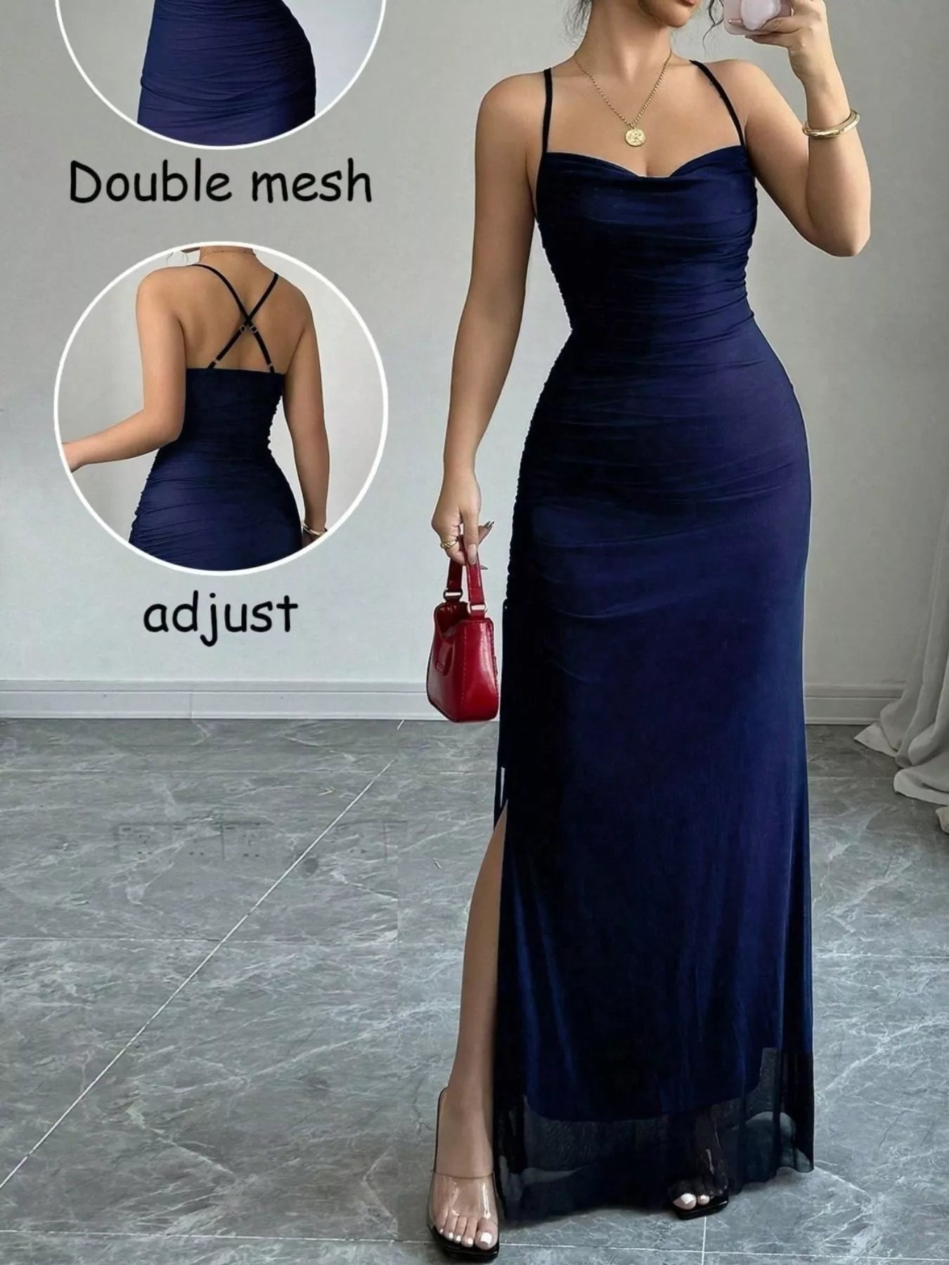 • Features:Ruched,Slit,Drawstring