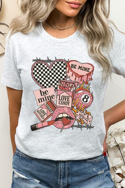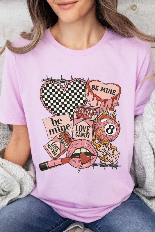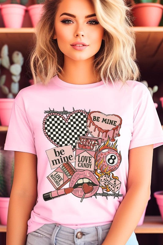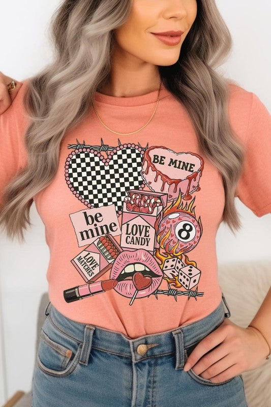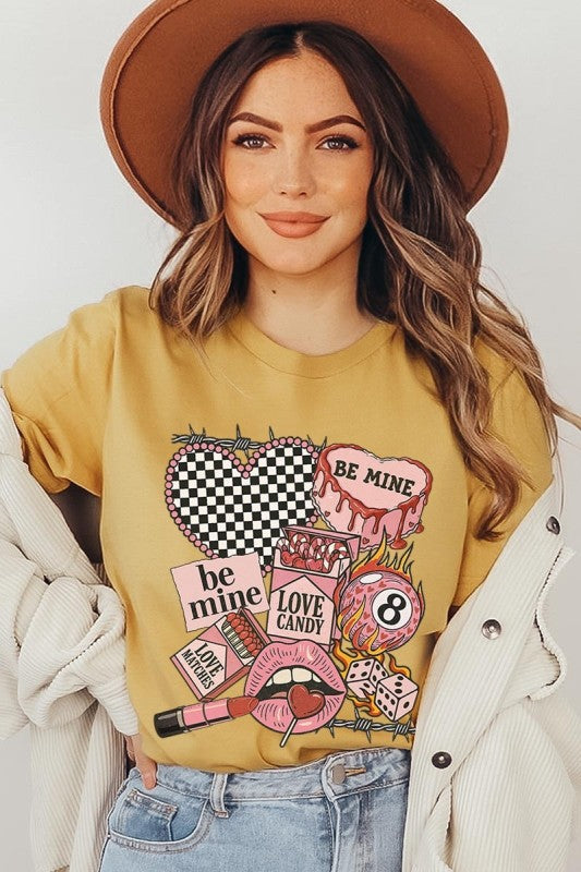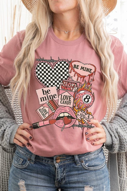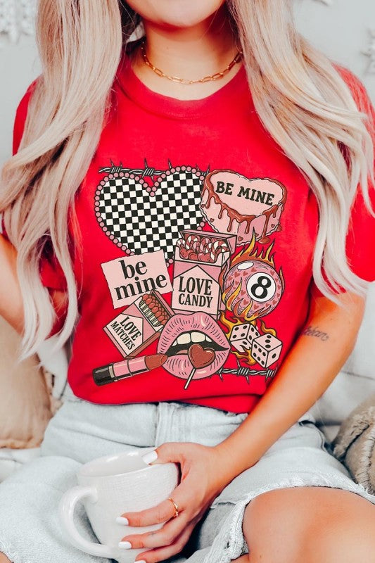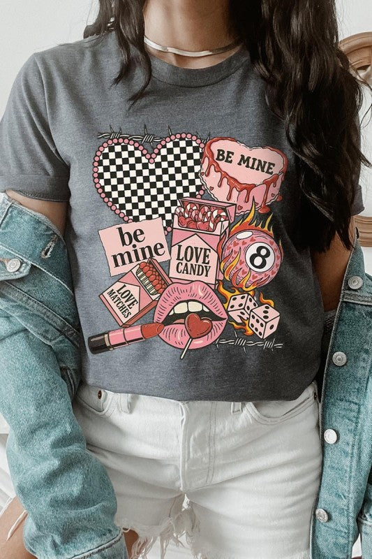 valentine graphic tee, candy collage shirt, retro love icons top, western style valentine tee, western inspired graphic shirt, cowboy western aesthetic, heart themed apparel, boutique seasonal wear, cute romantic graphic, holiday casual style Graphic Tee.
