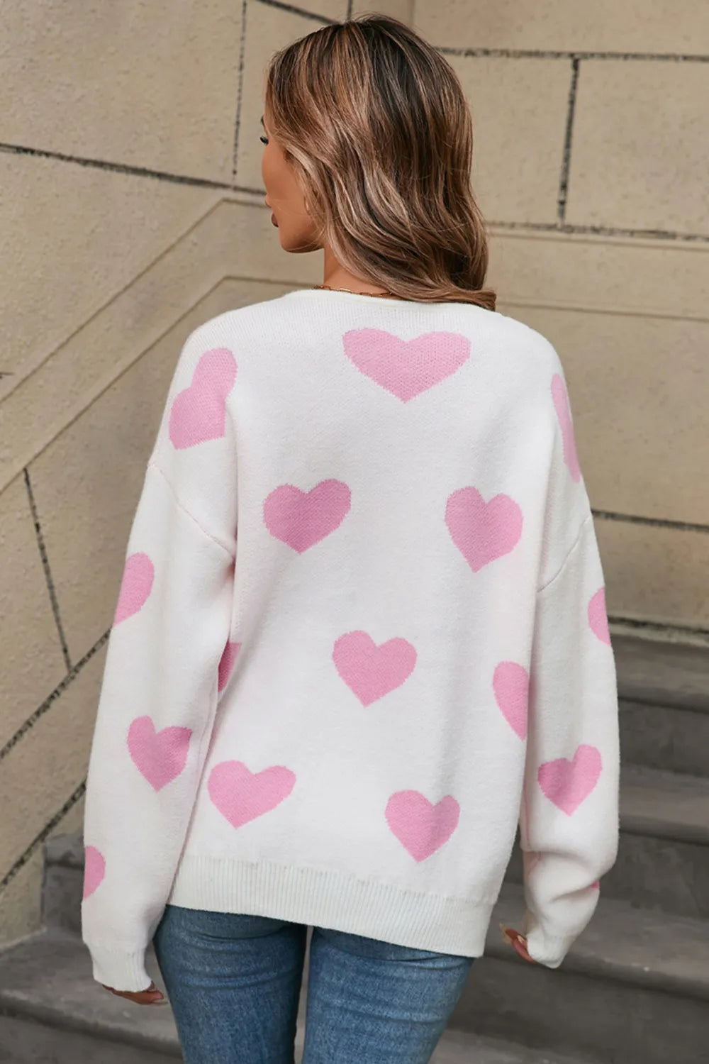 Angel Wings Heart Round Neck Dropped Shoulder Sweater