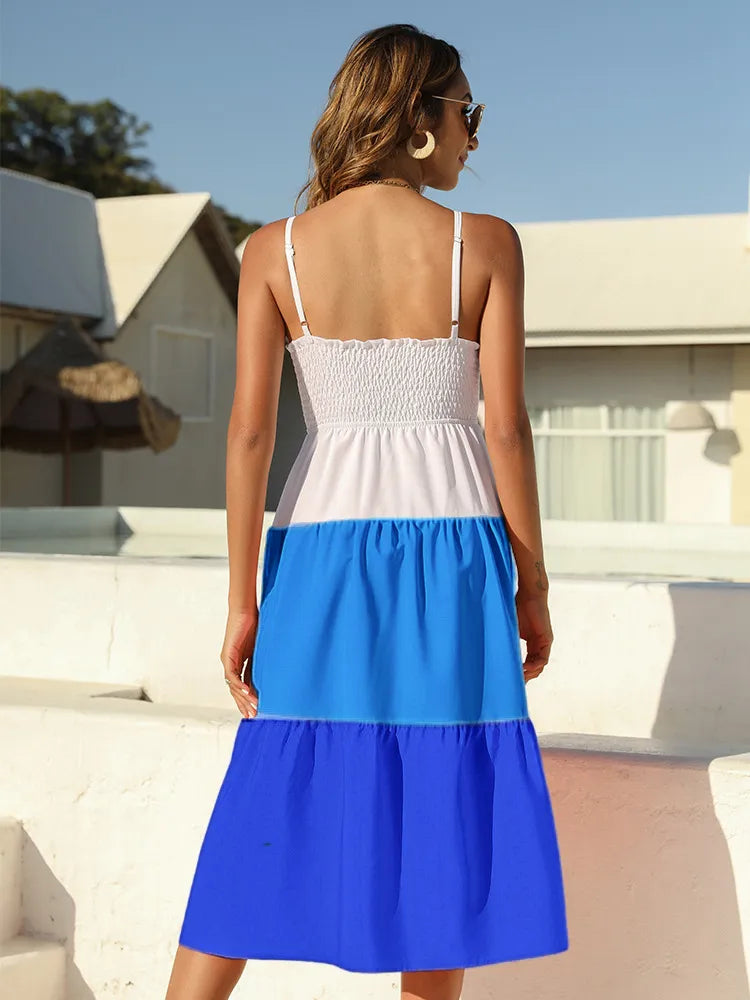 Color Block Tie-Front Midi Dress