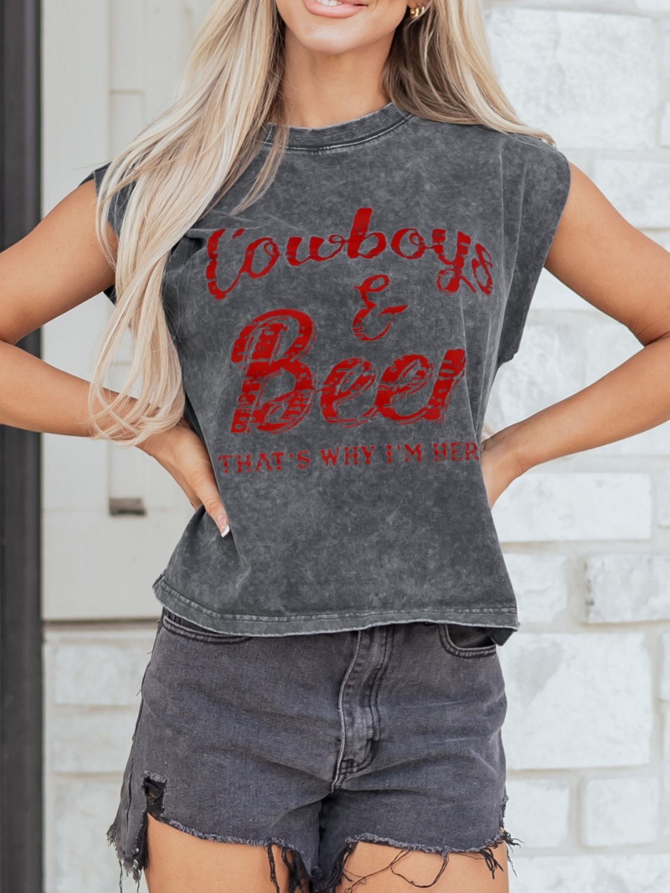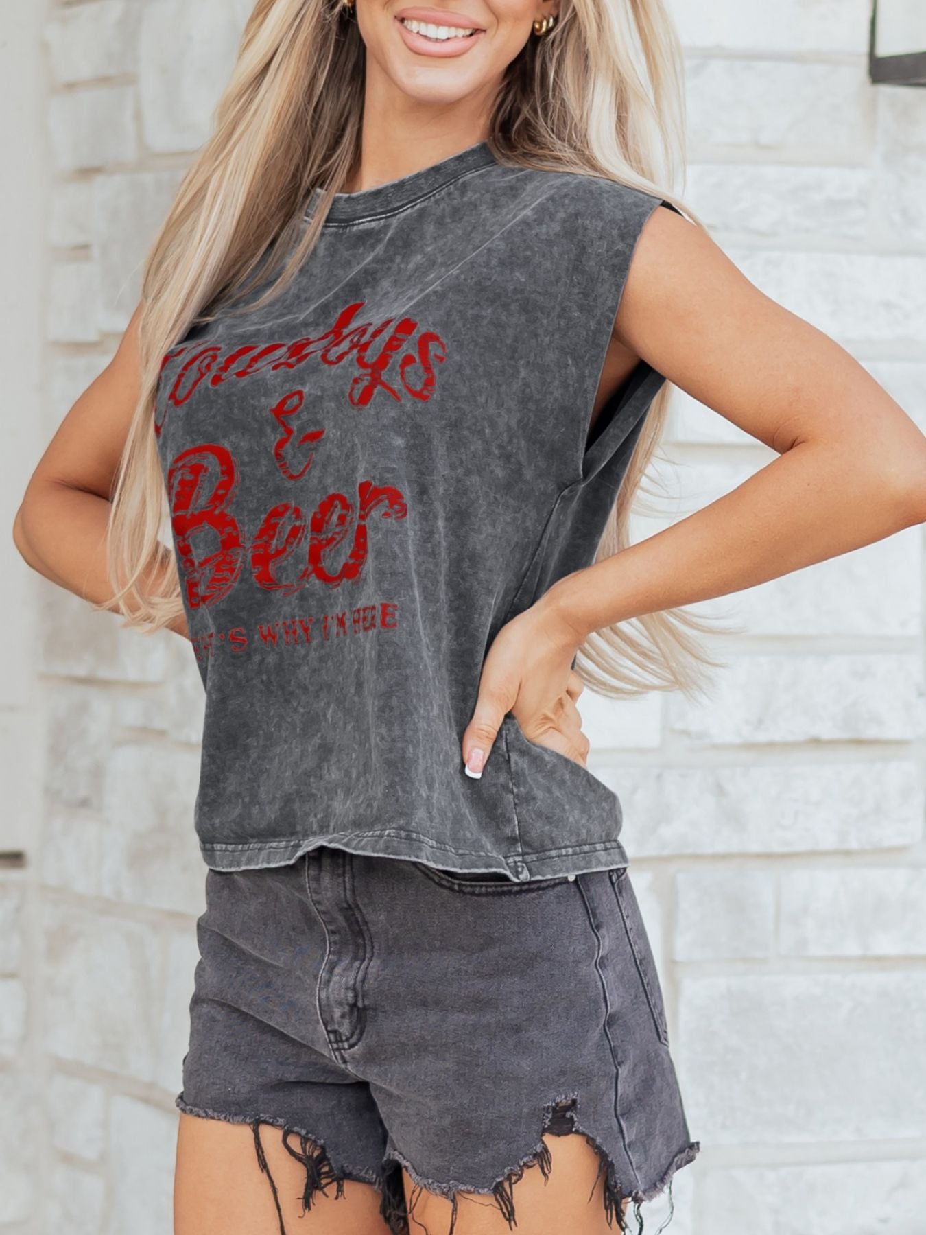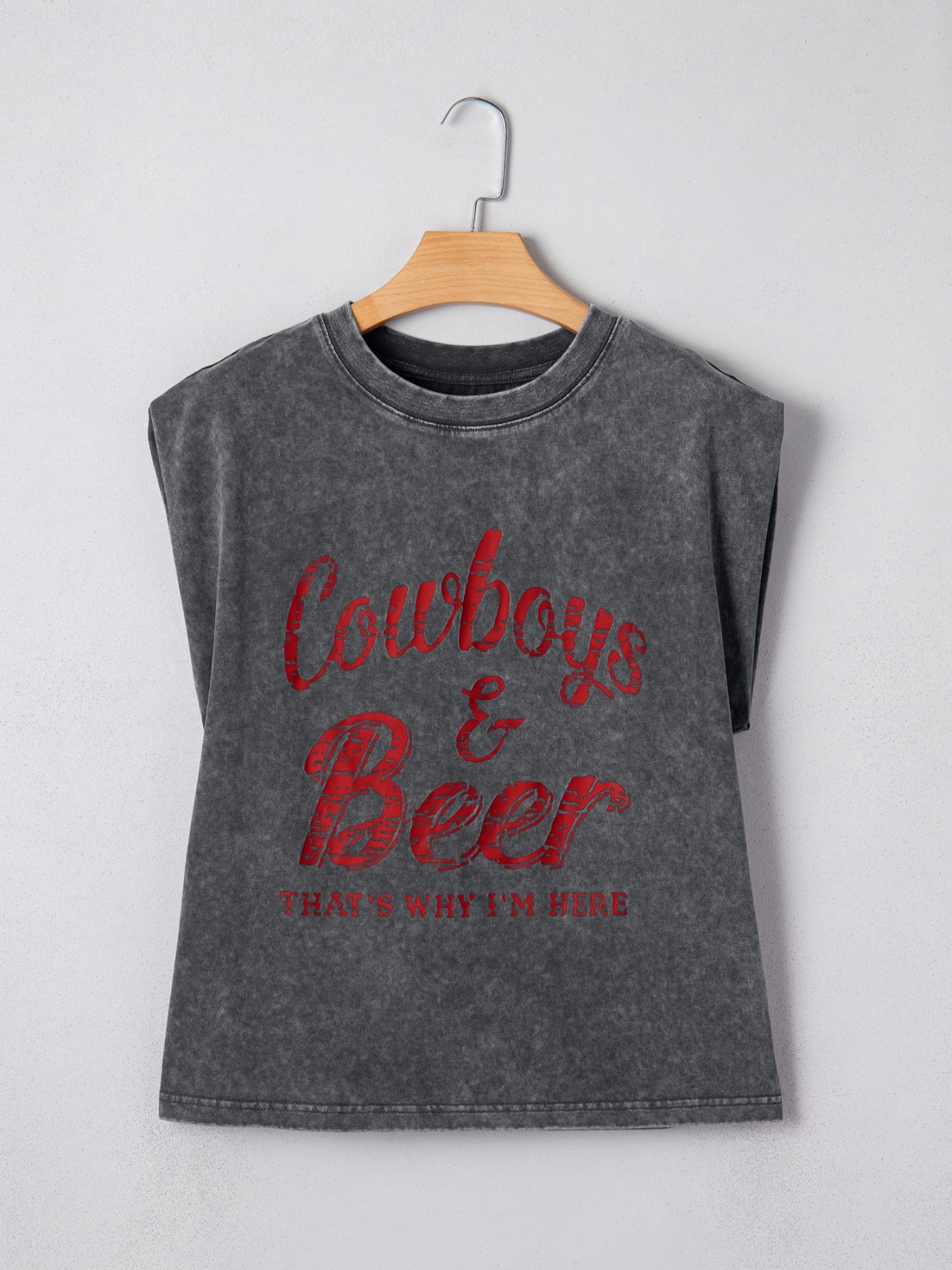 Cowboy & Beer Western Graphic Mineral Wash Tank Top
