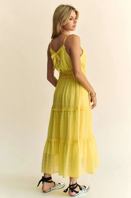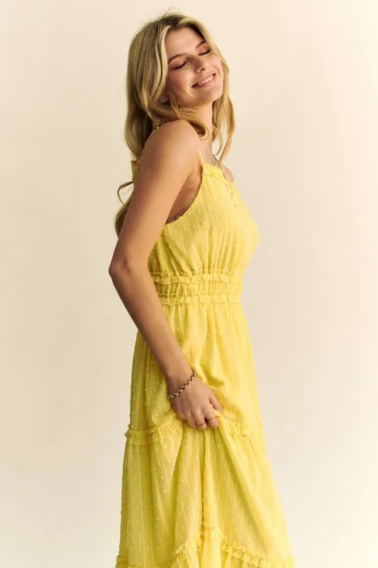 Davi & Dani Texture Swiss Dot Ruffle Square Neck Midi Dress