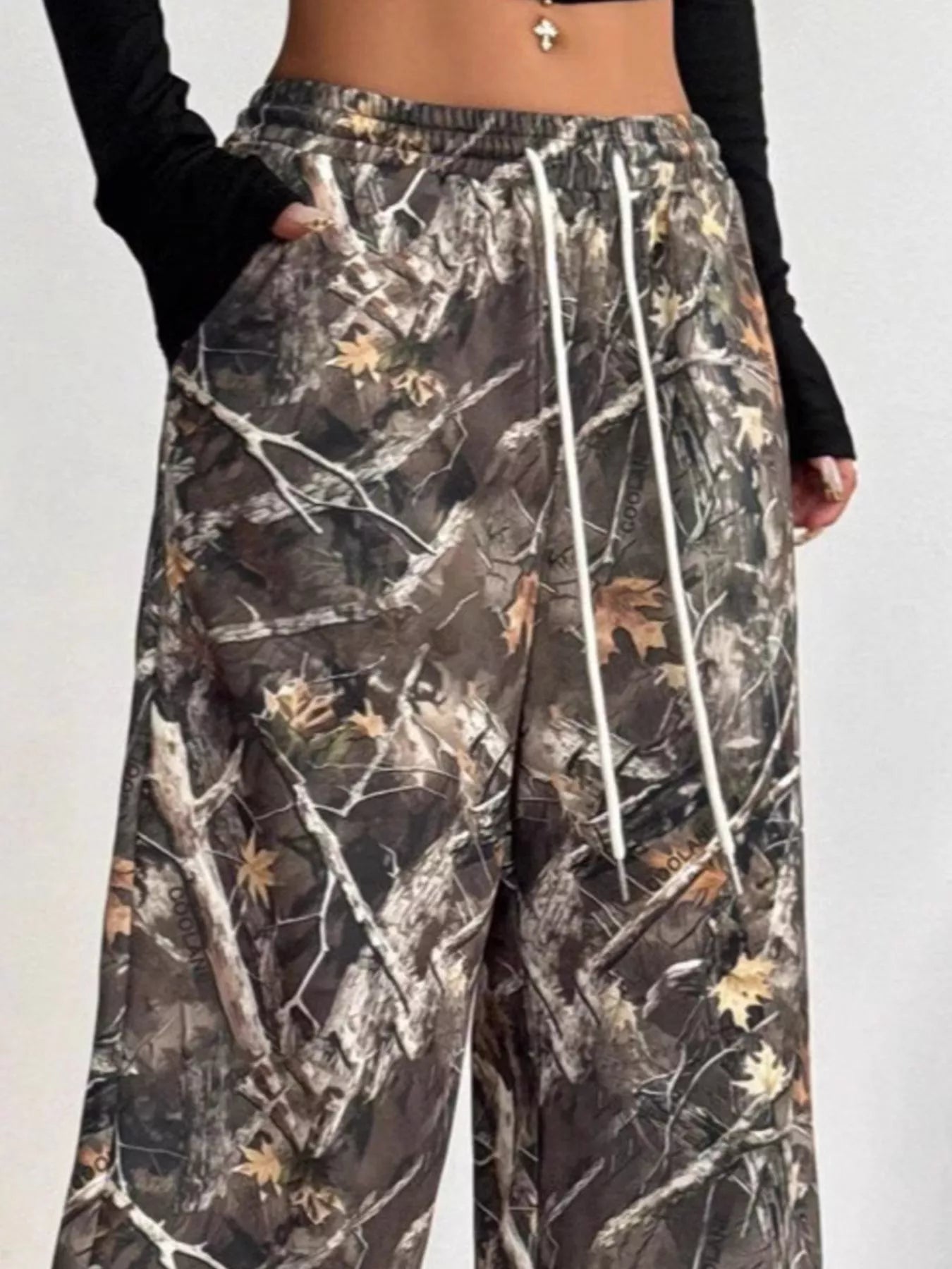 Drawstring Printed Wide Leg Pants