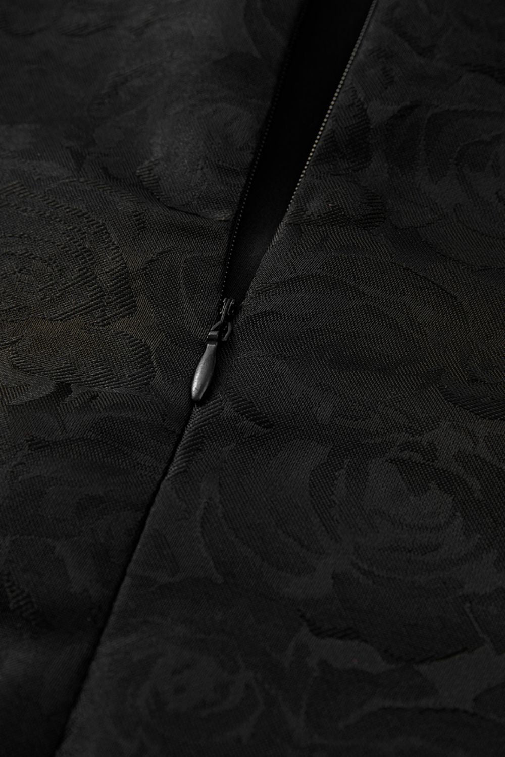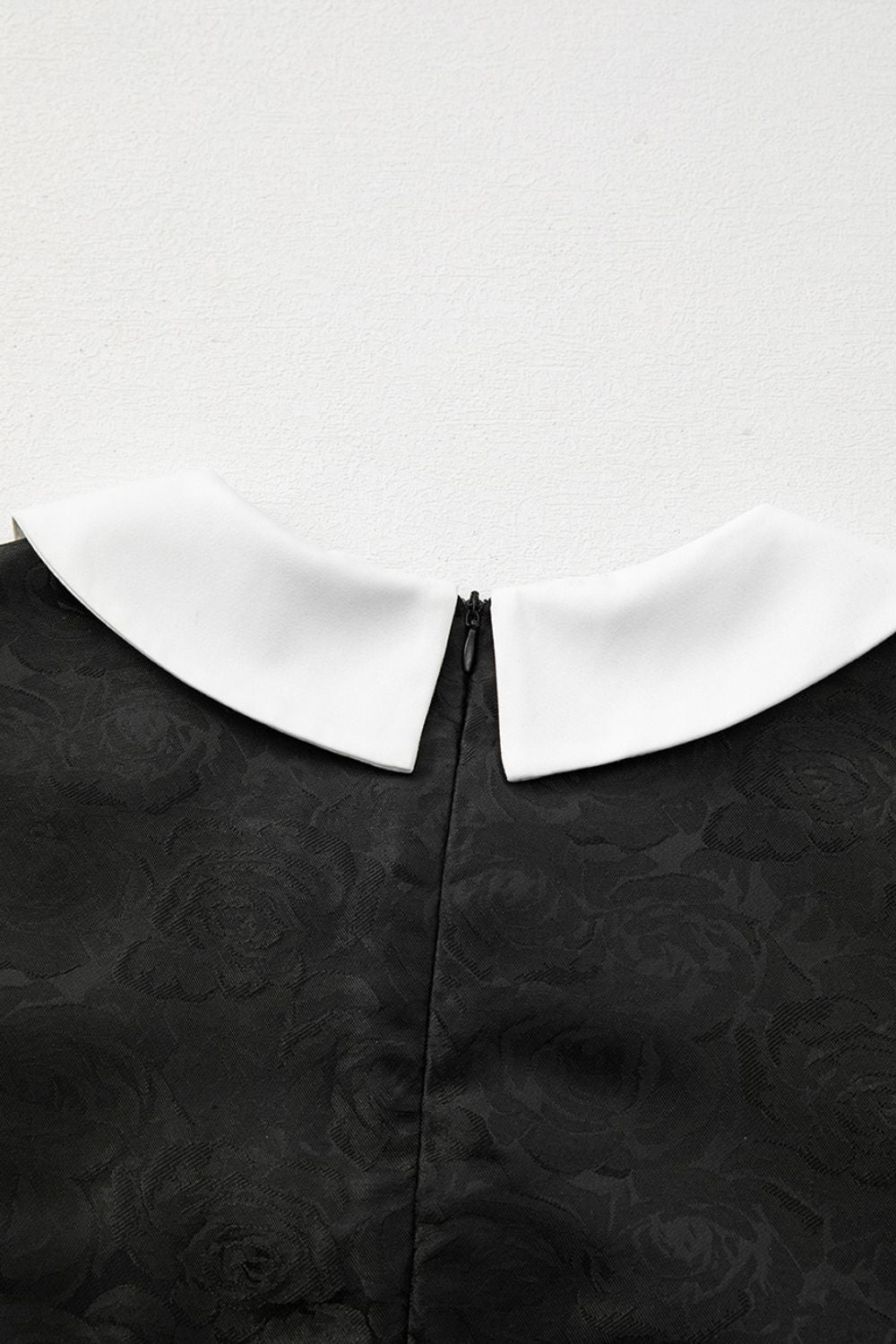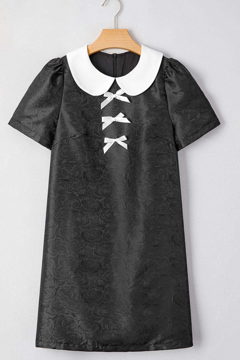 Floral Embossed Puff Sleeve Colorblock Bow Collared Mini Dress