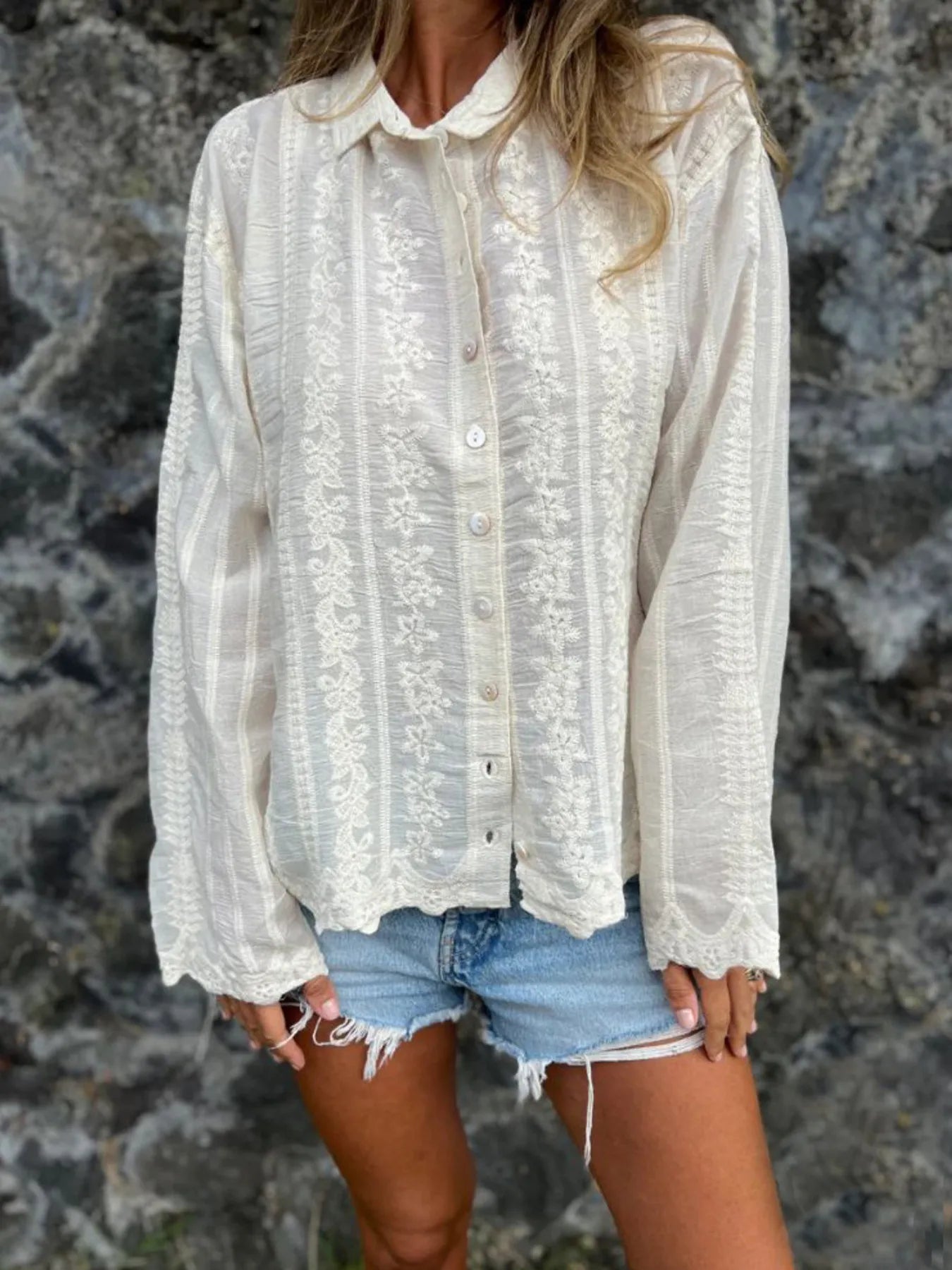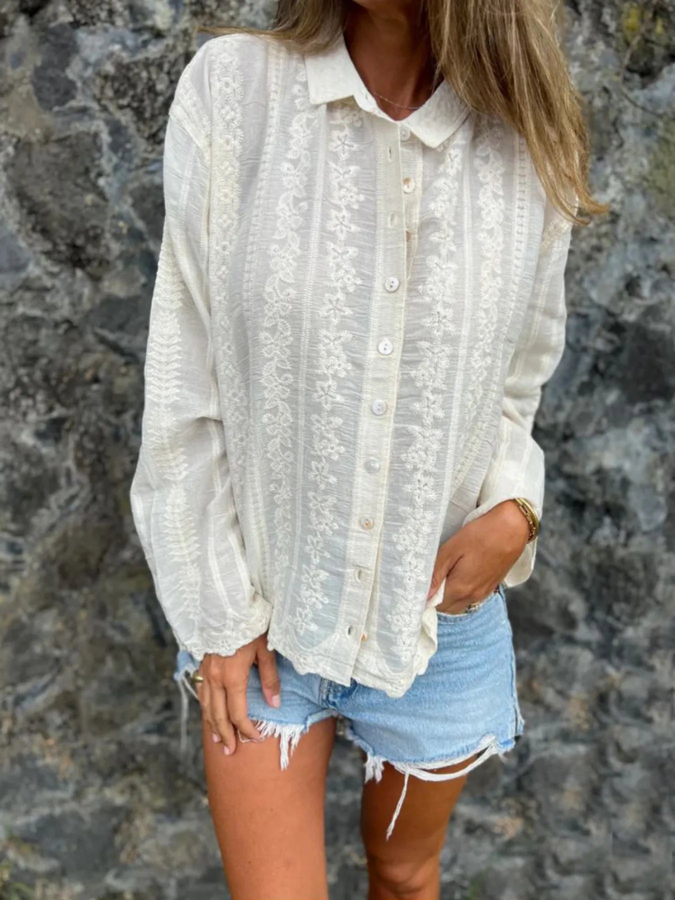 Floral Embroidered Button Down Shirt