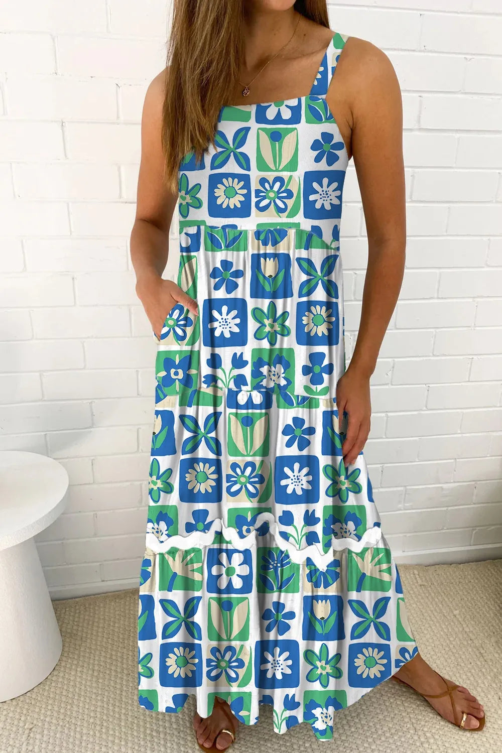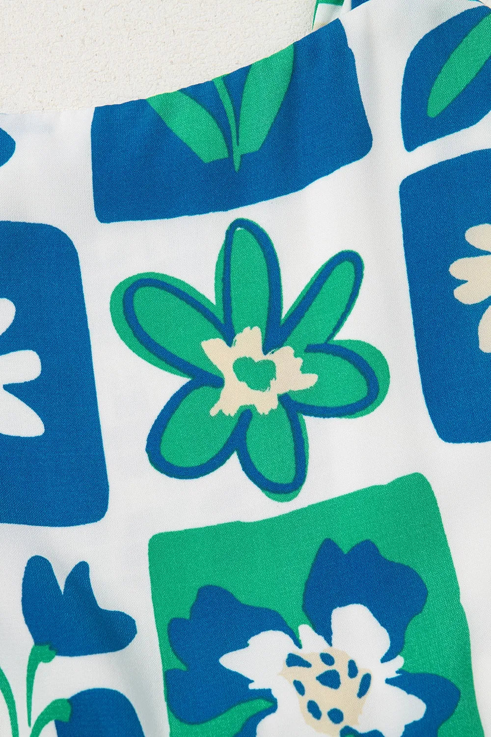 Floral Mixed Pattern Ruffle Flutter Sleeve Buttoned Dress