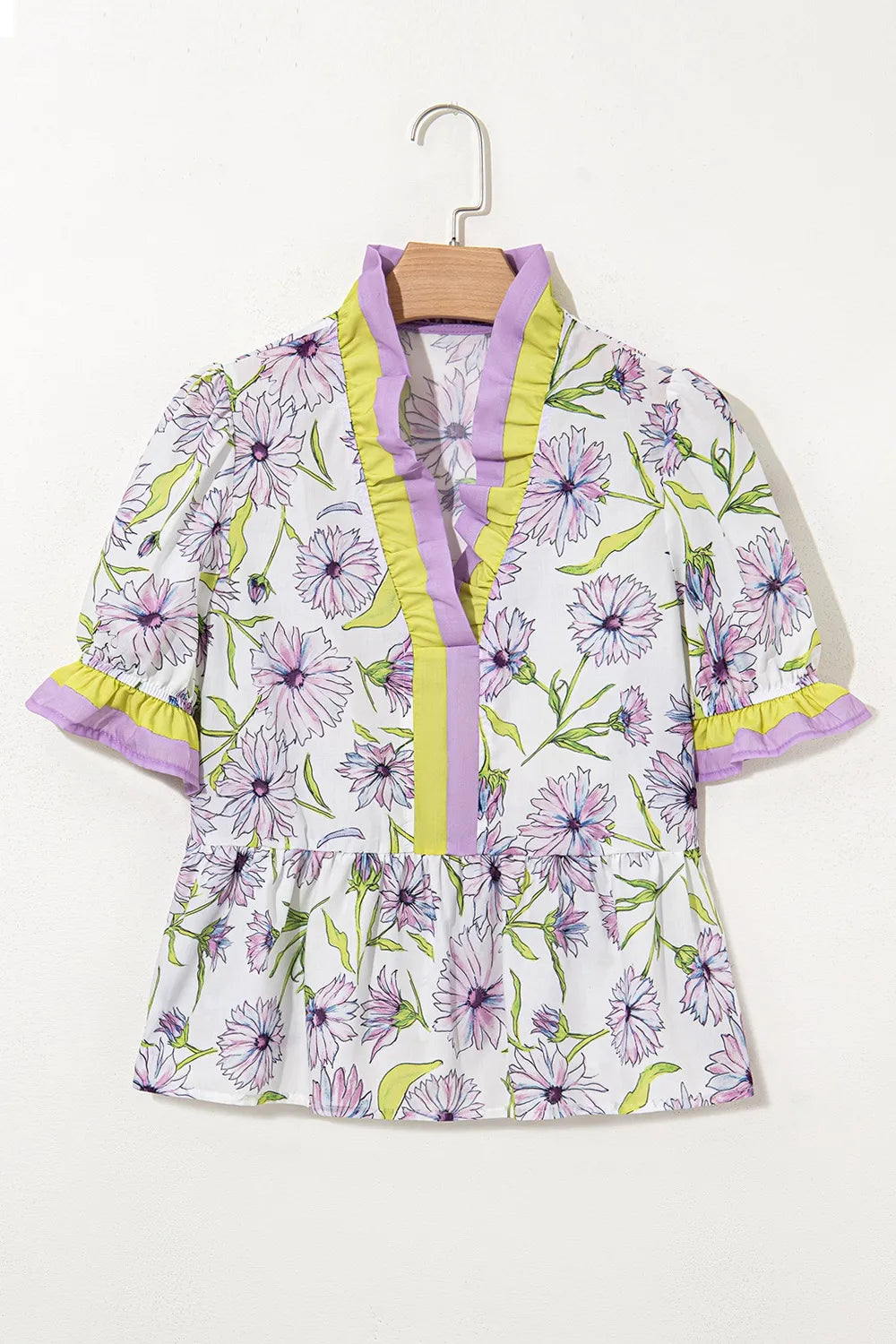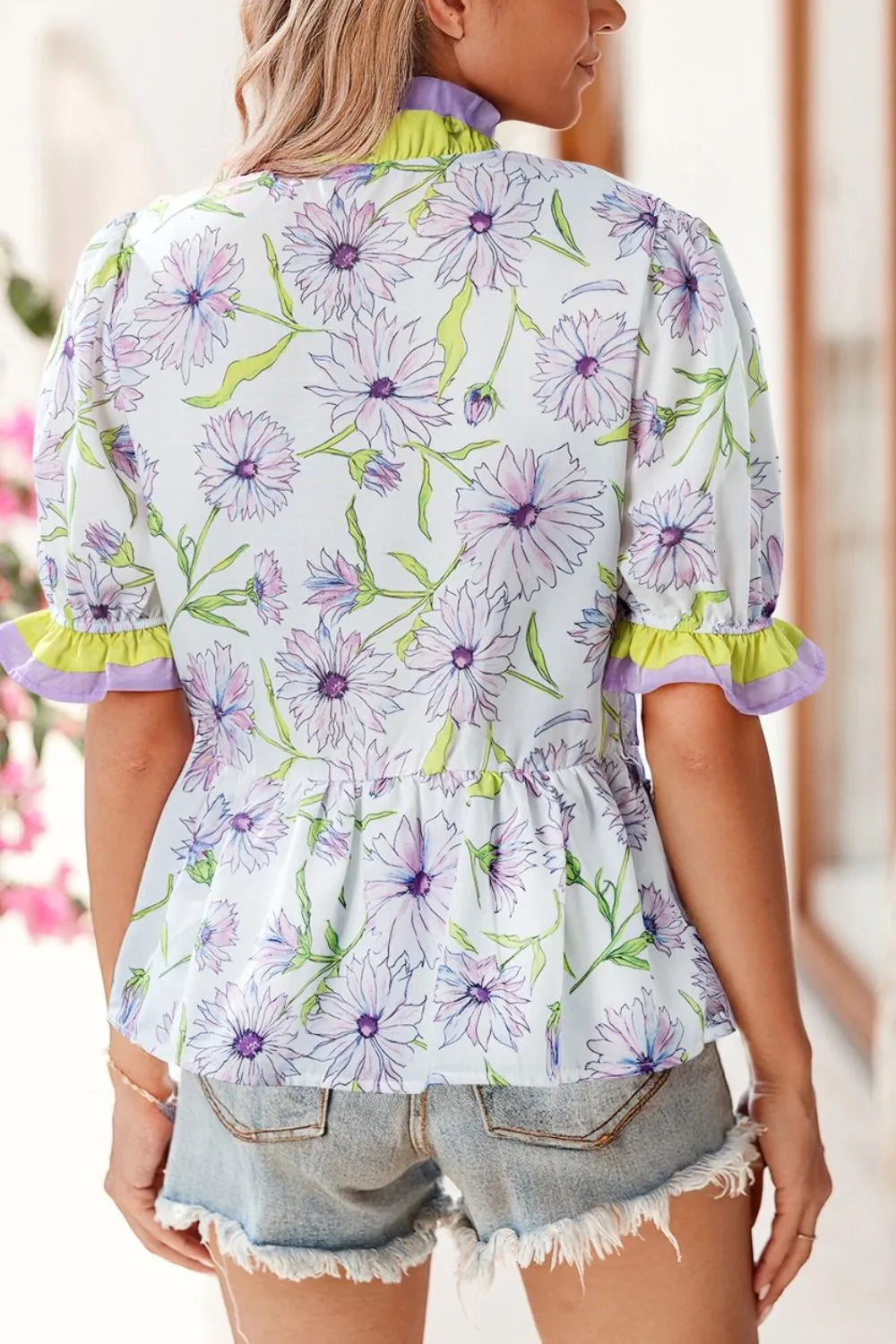 Floral Print Flounce Sleeve Peplum Blouse