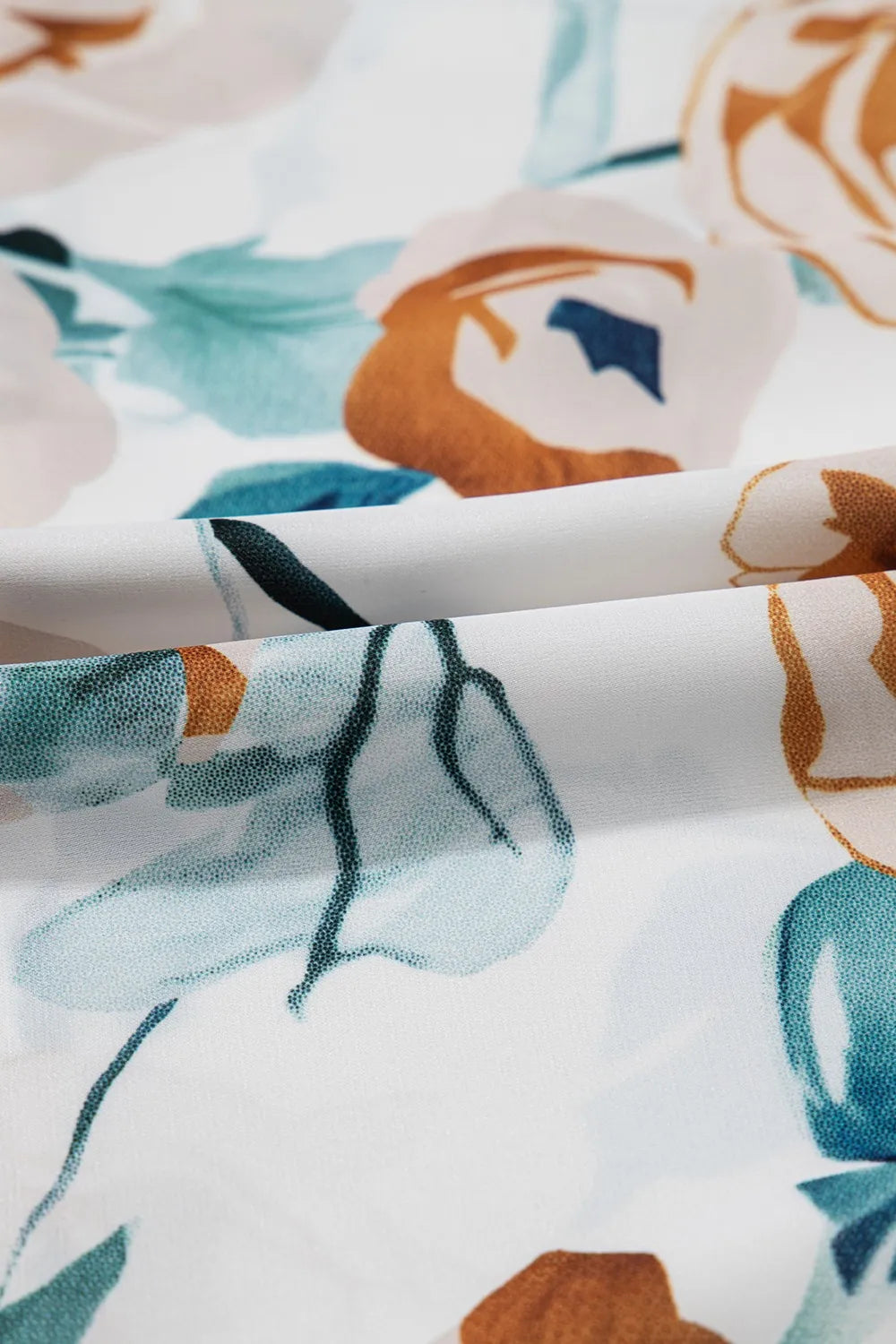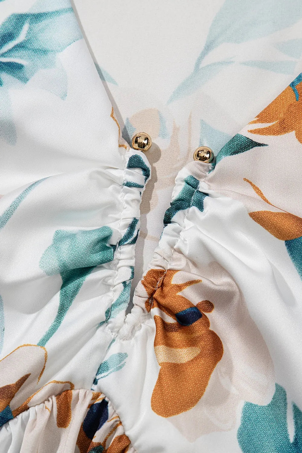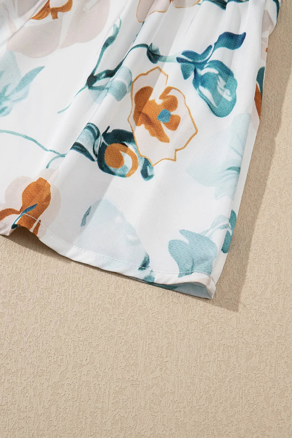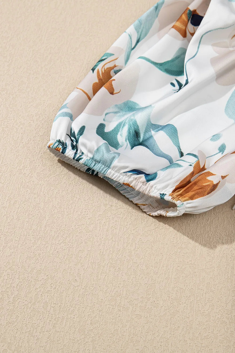 Floral Print Puff Sleeve V Neck Babydoll Blouse
