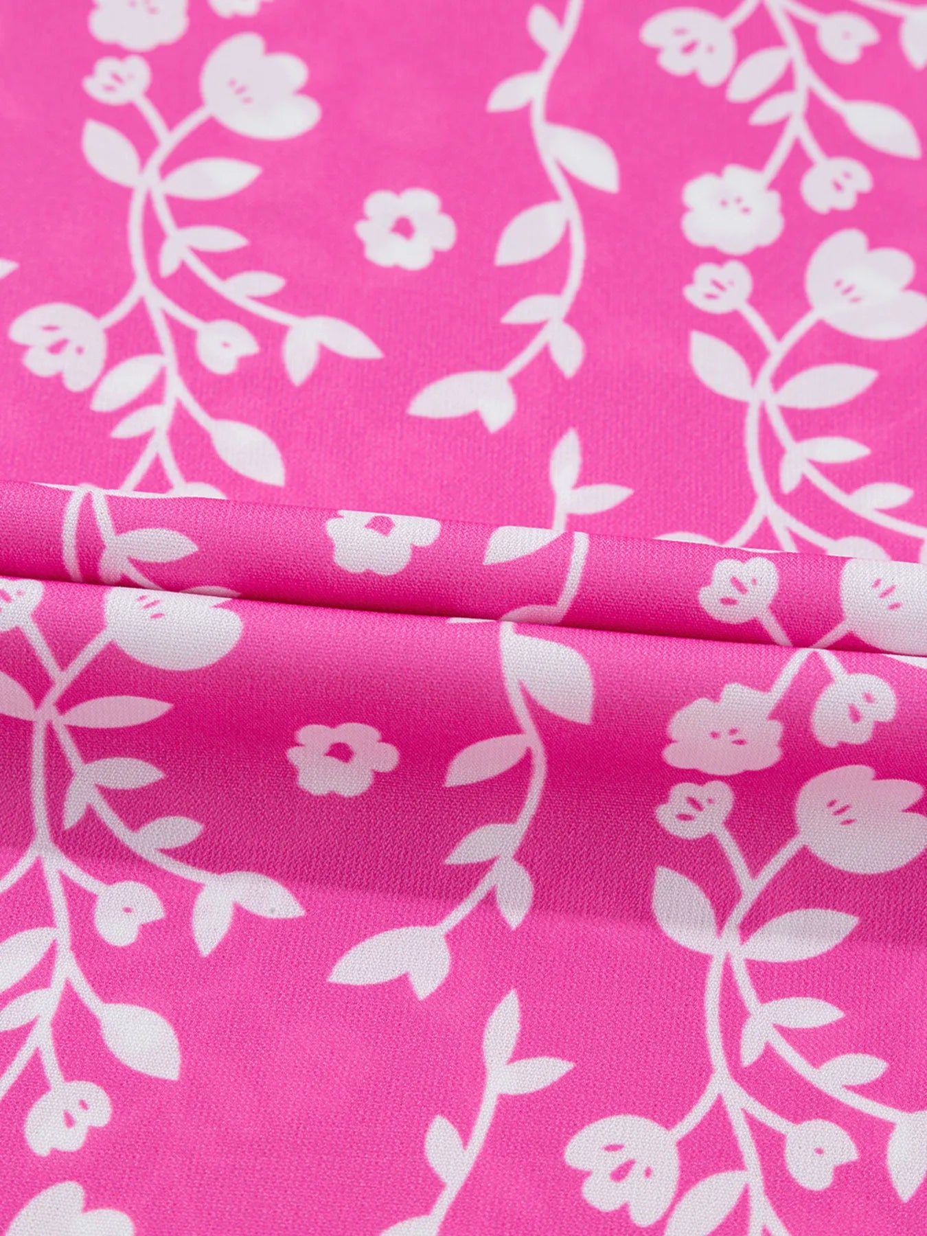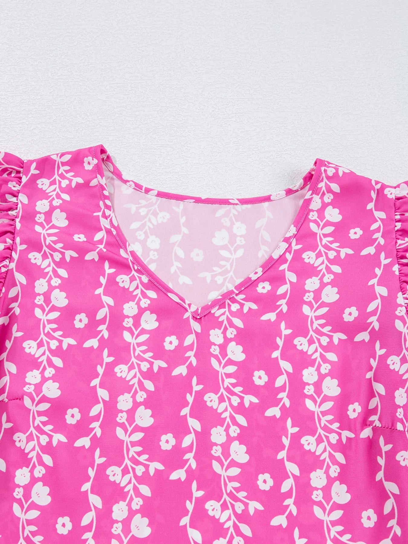 Floral Print Ric-rac Tiered Ruffled V Neck Blouse