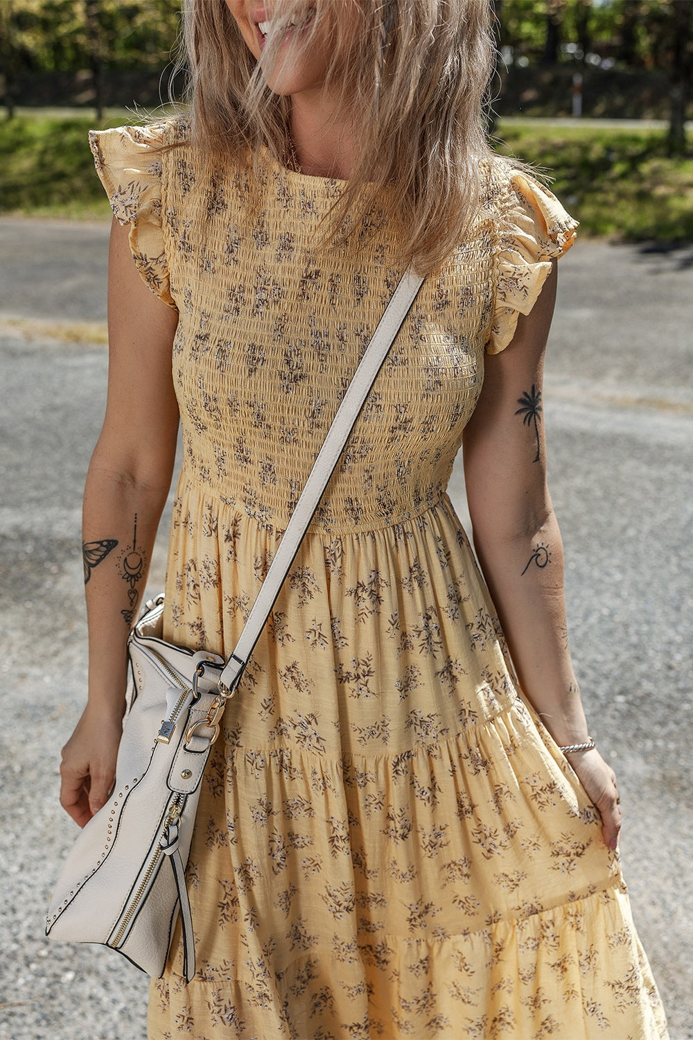 Floral Print Ruffle Cap Sleeve Smocked Flowy Dress