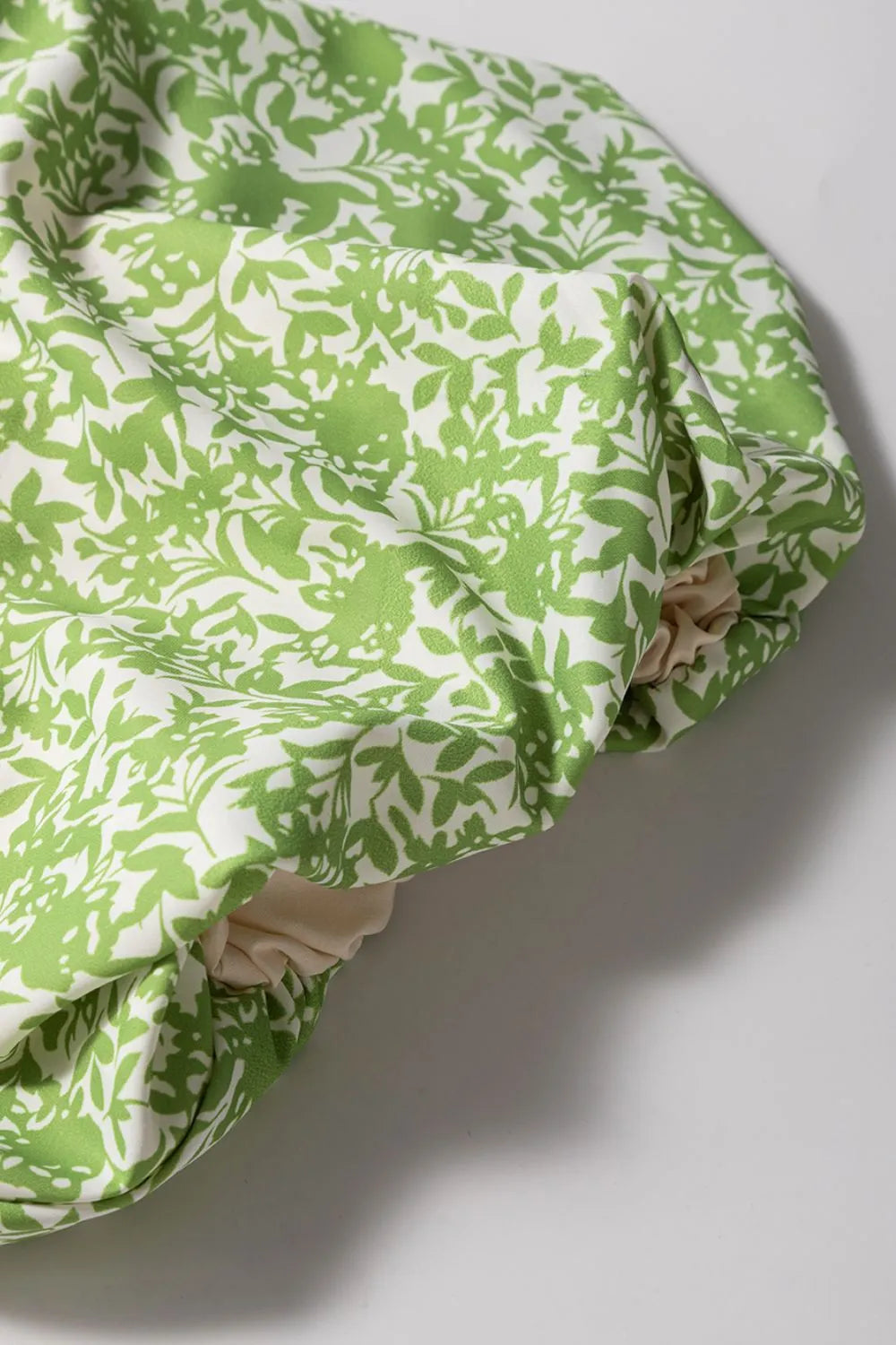 Floral Ruffle Puff Short Sleeve Frilled Notched Blouse