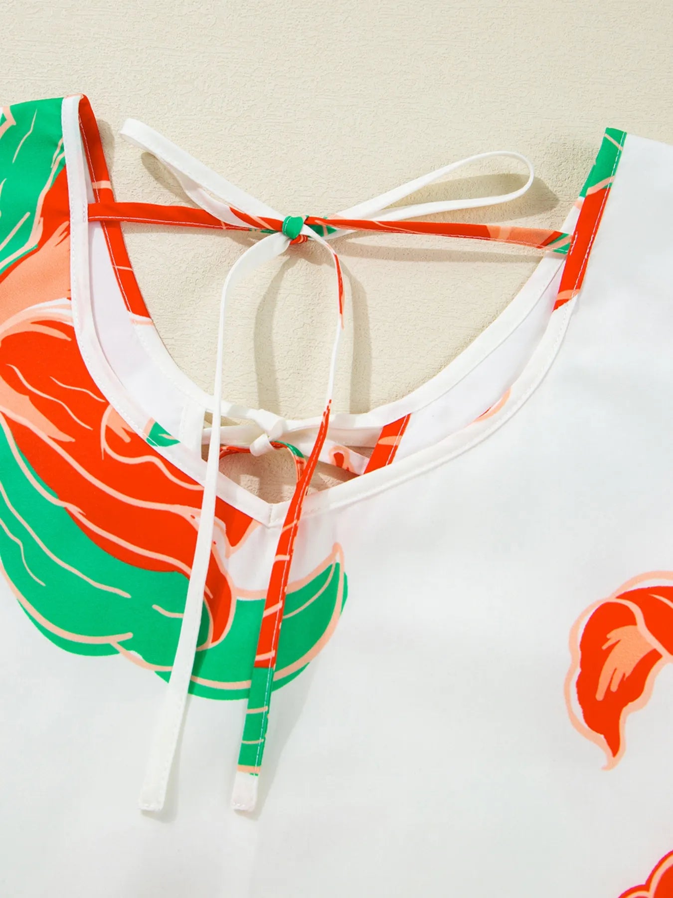 Floral Tie Neck Sleeveless Ruffled Sundress