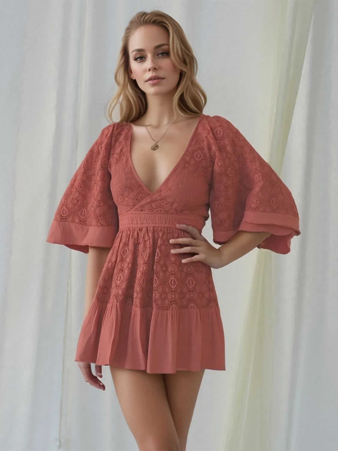 Full Size Lace Cutout Back Half Sleeve Mini Dress Plus Size
