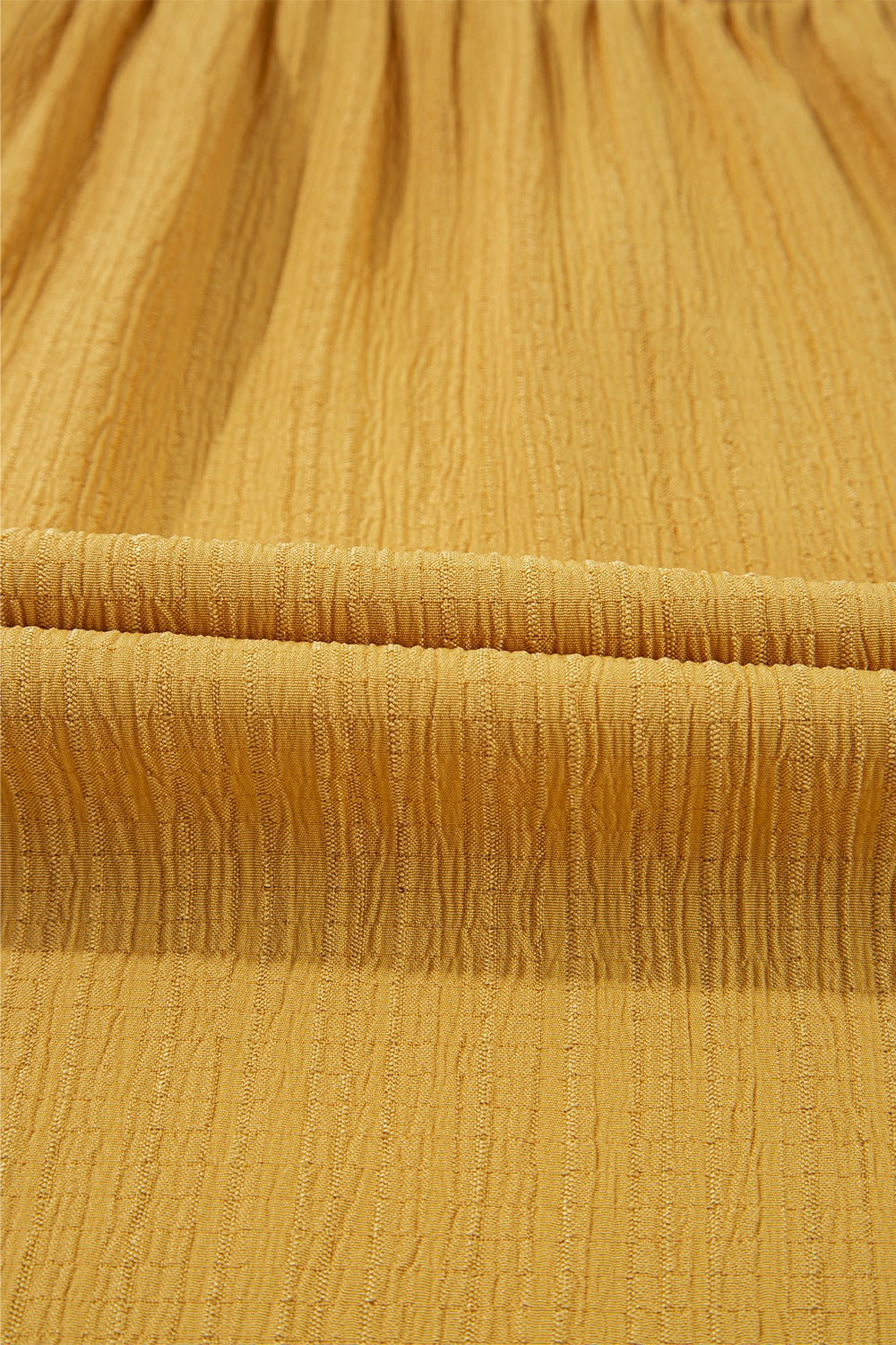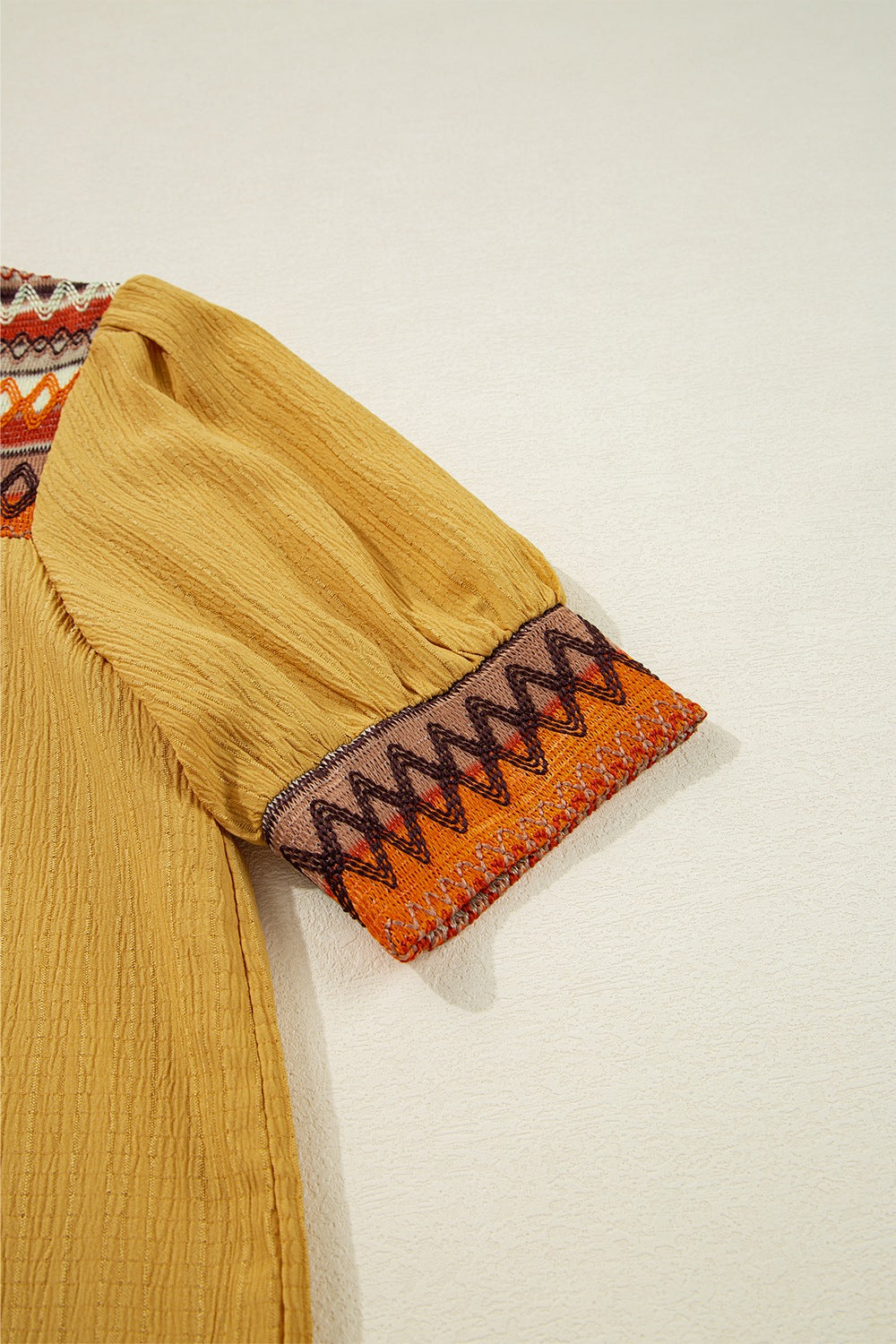 Geometric Frill Mock Neck Short Sleeve Blouse