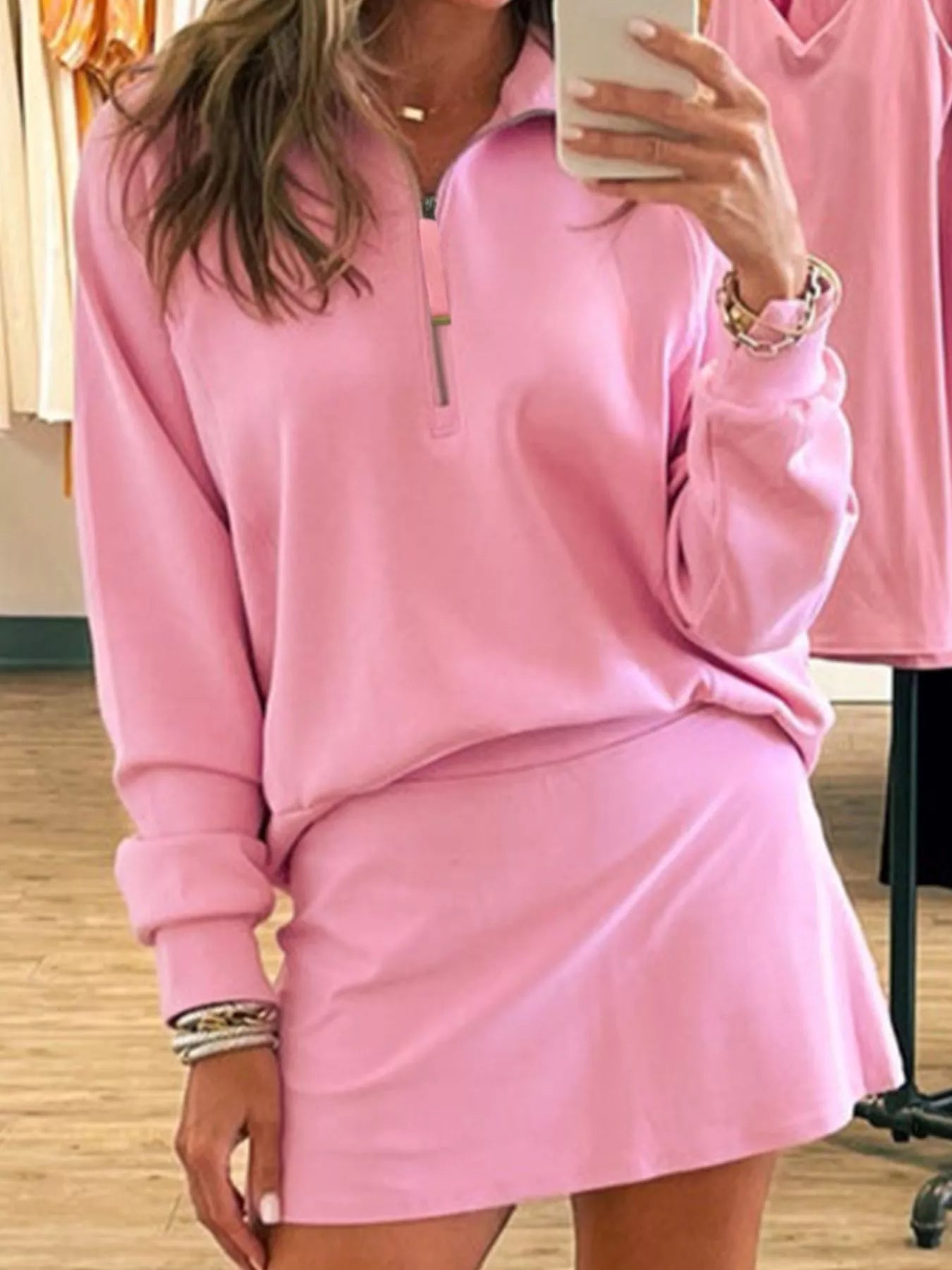 Half Zip Long Sleeve Top and Mini Skirt 2pcs Outfit