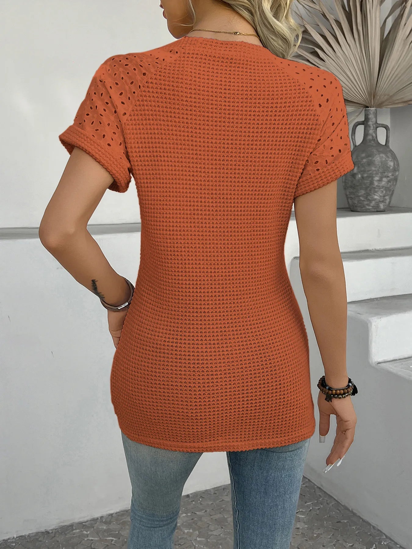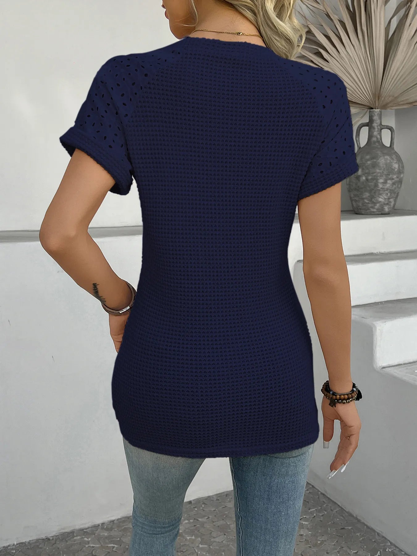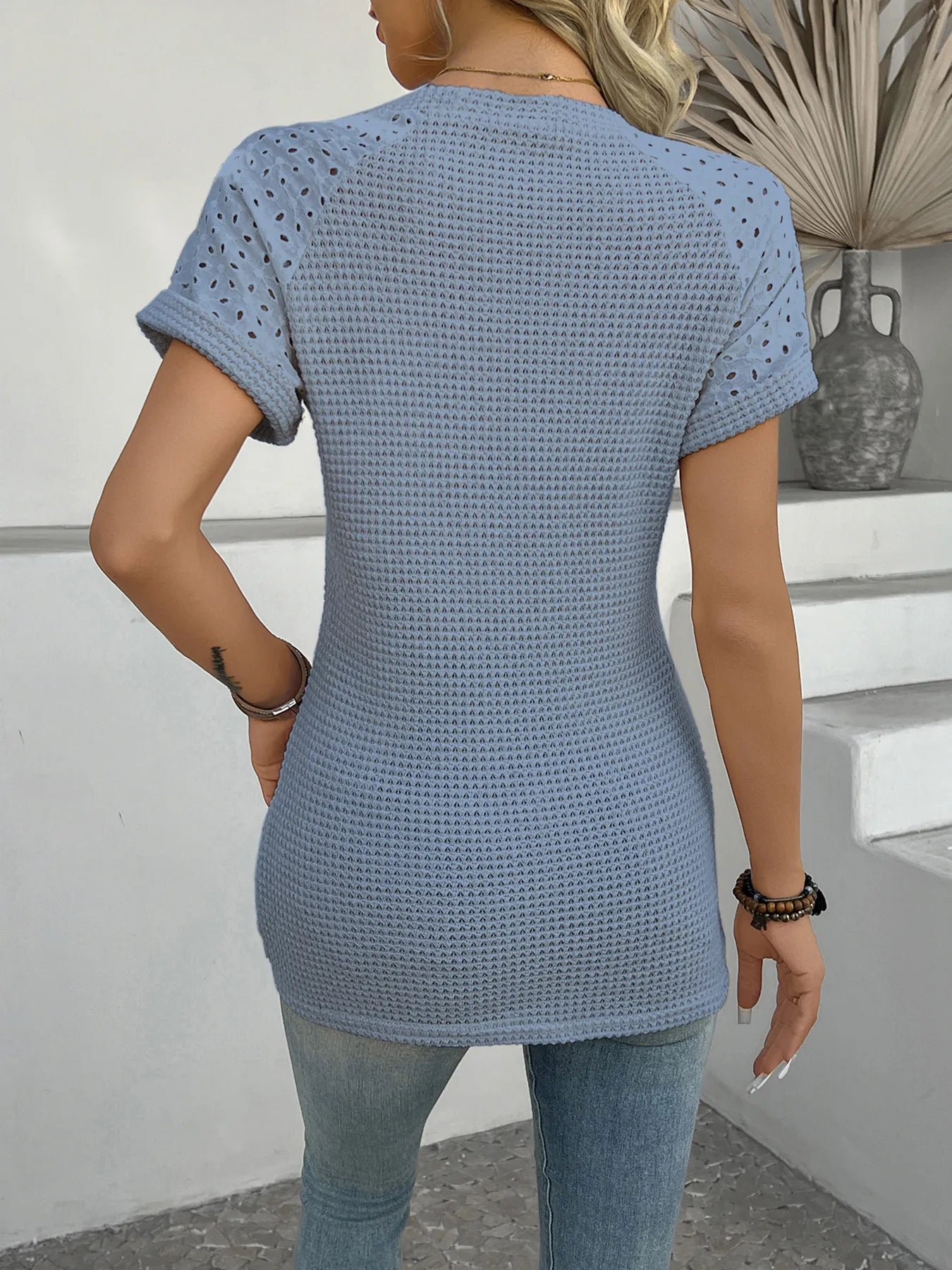 Hollow Out Waffle Knit Short Sleeve T-Shirt