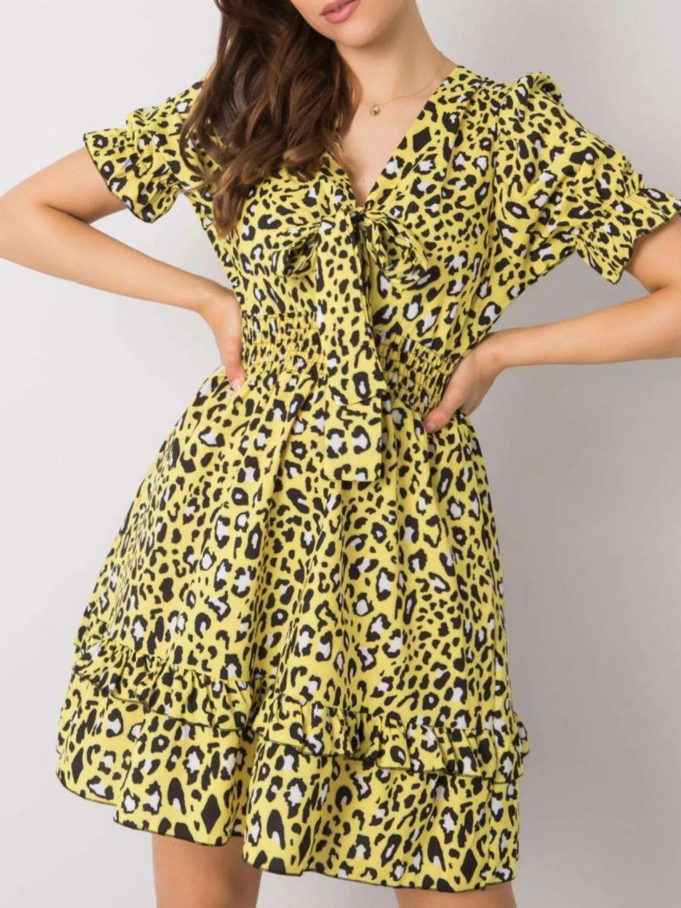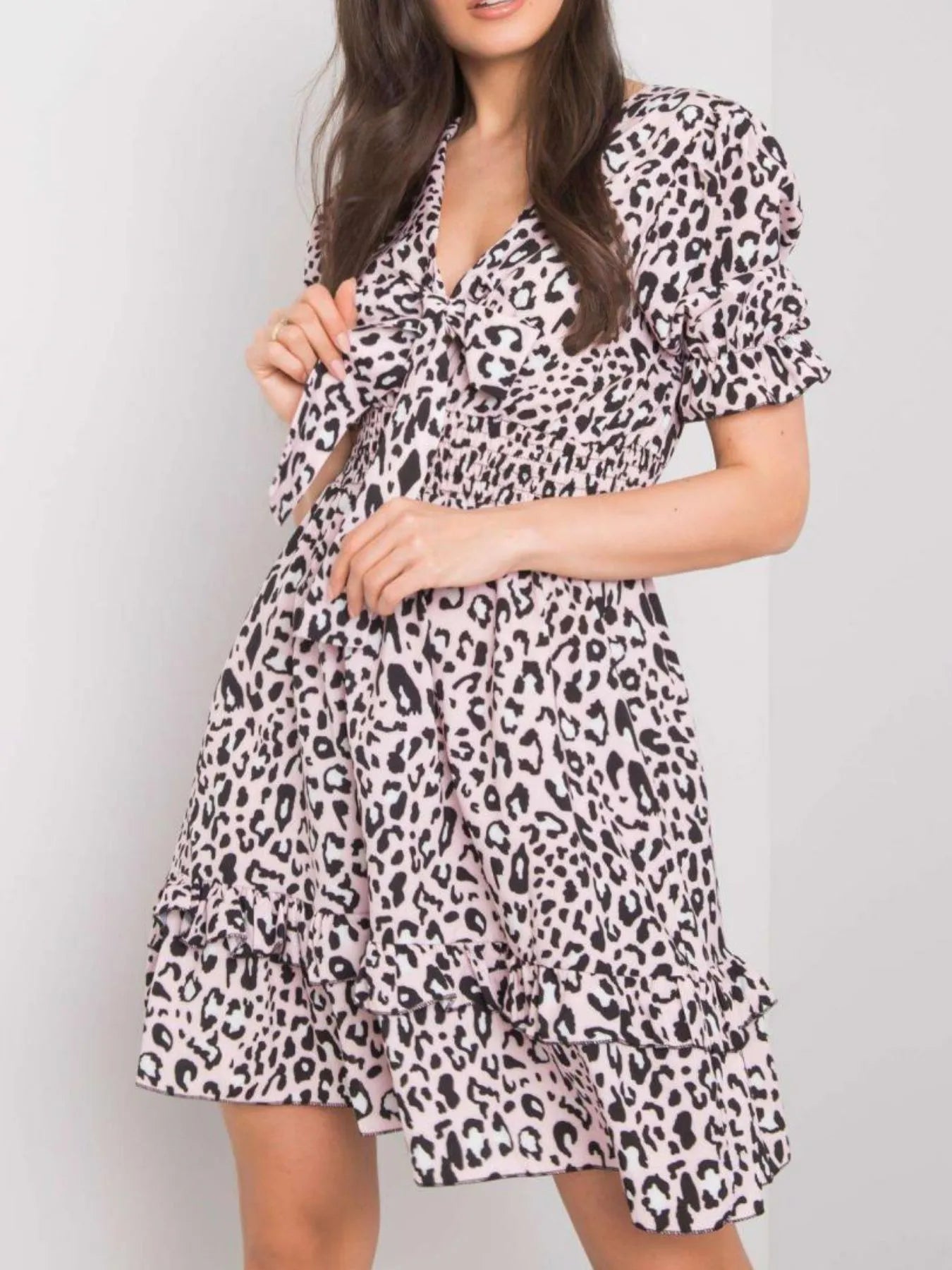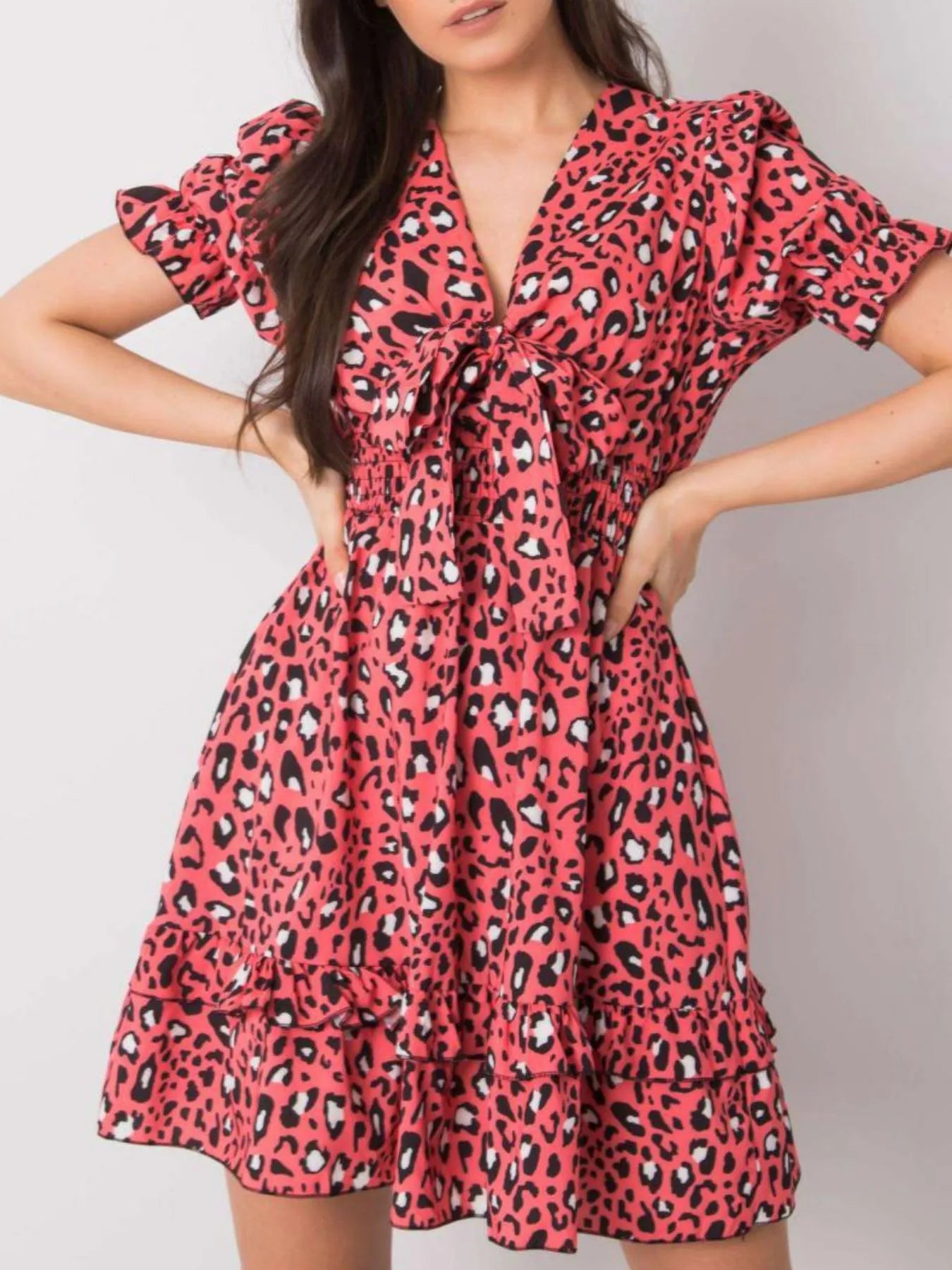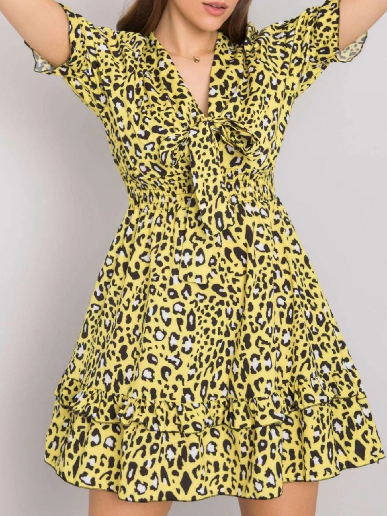 Leopard Print Tie Front Short Sleeve Mini Dress