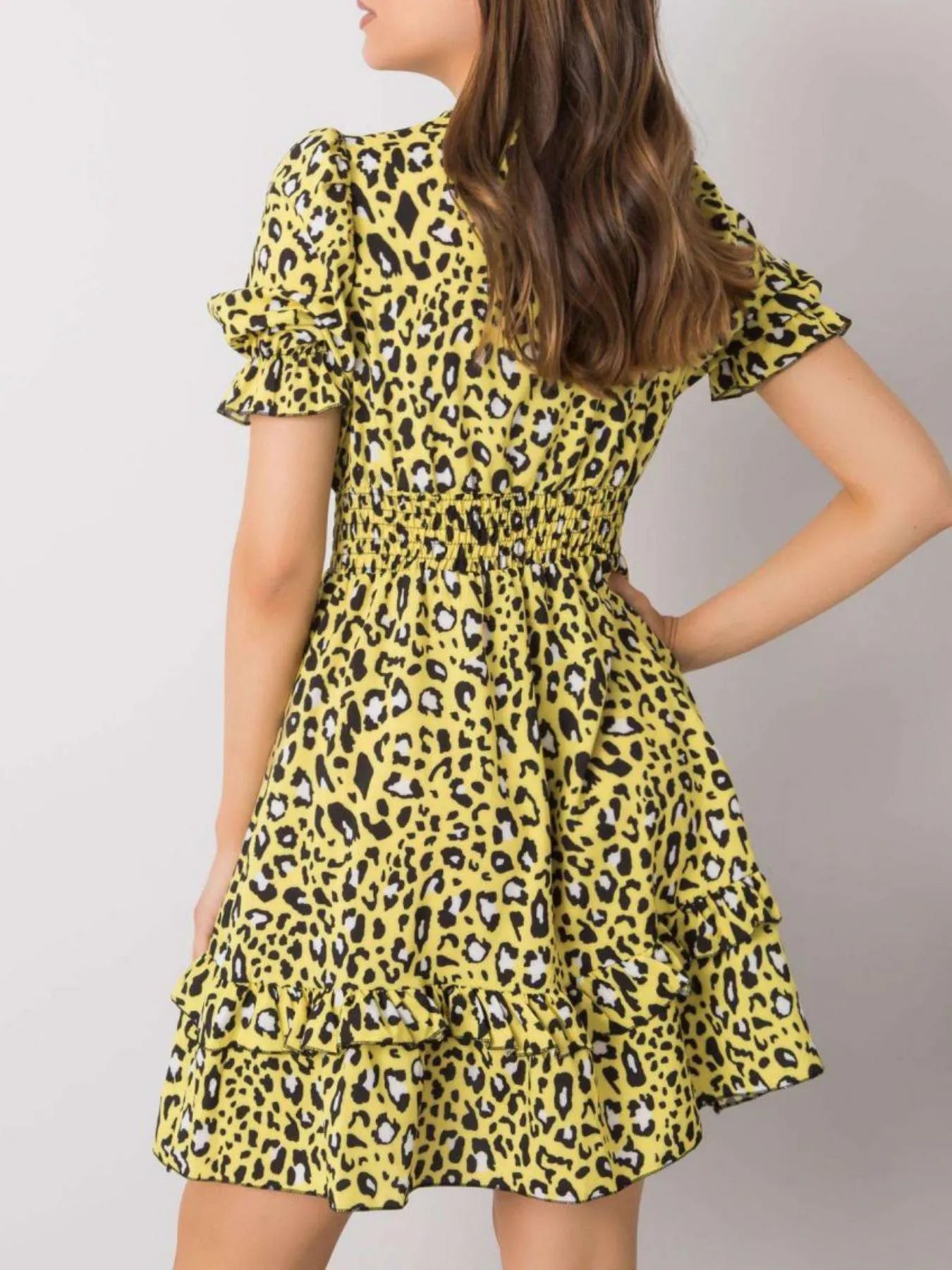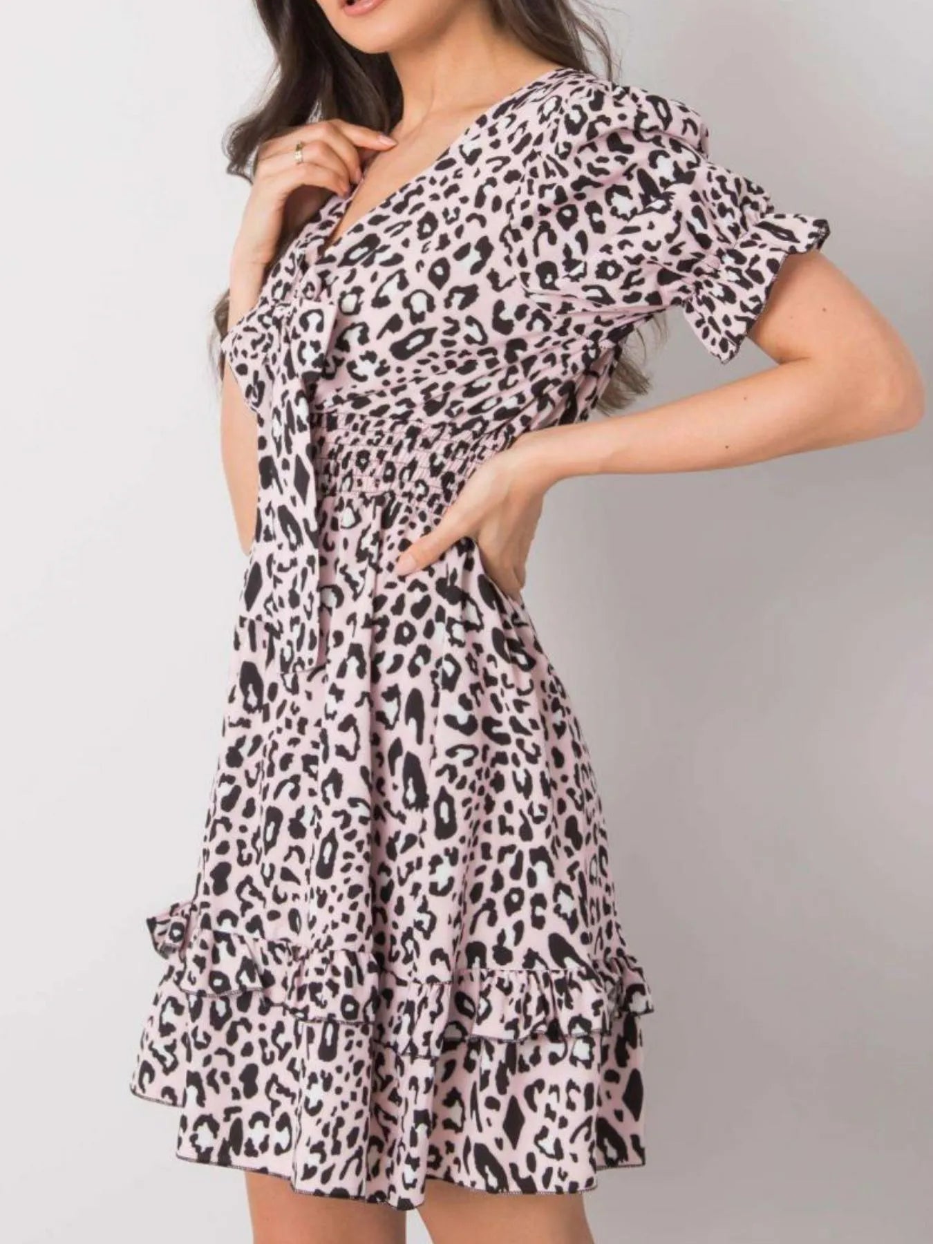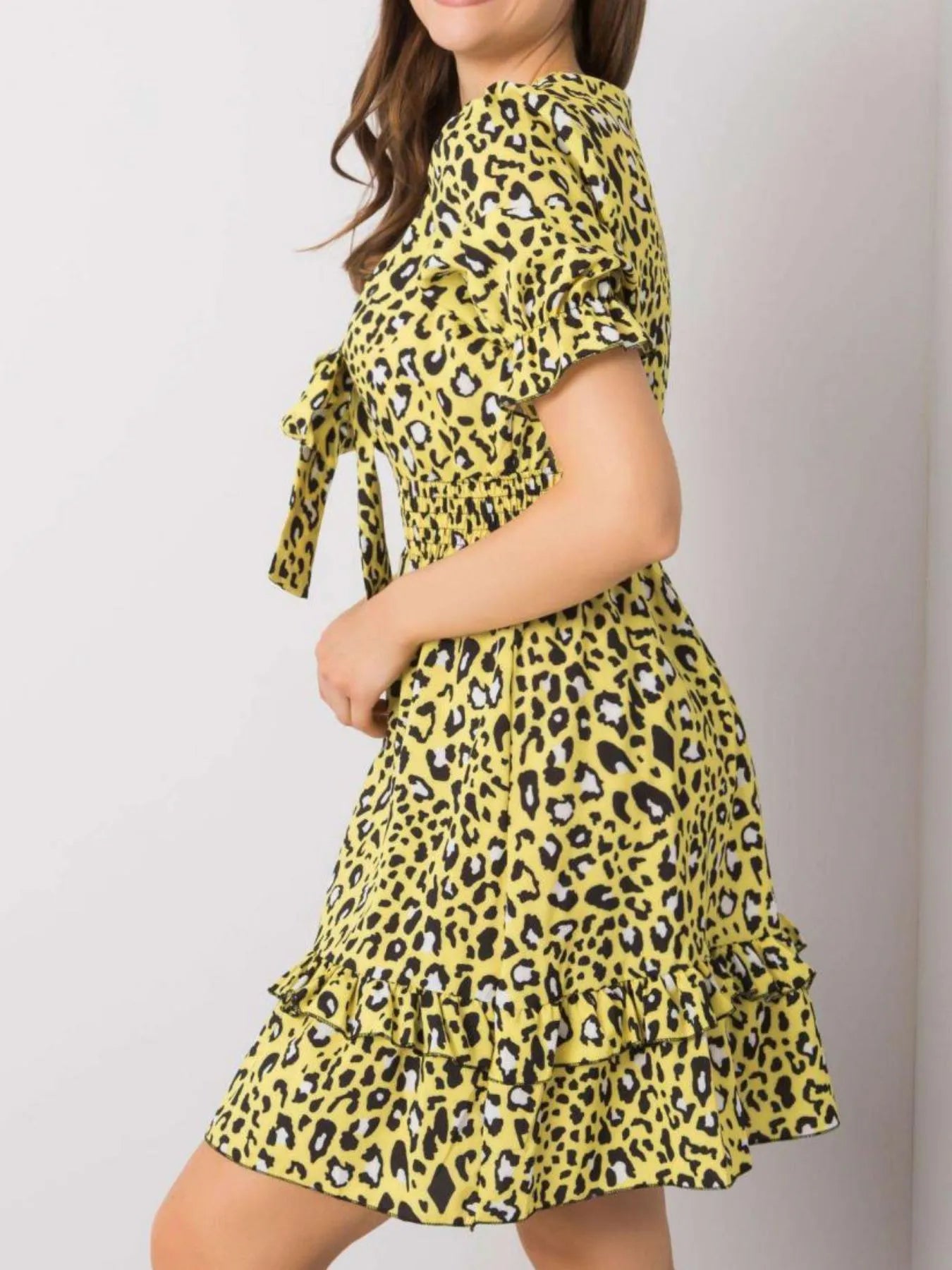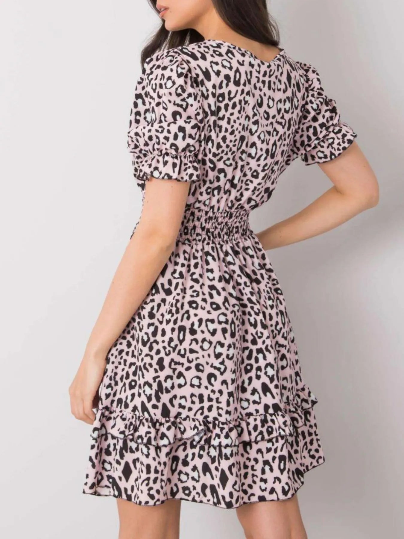 Leopard Print Tie Front Short Sleeve Mini Dress