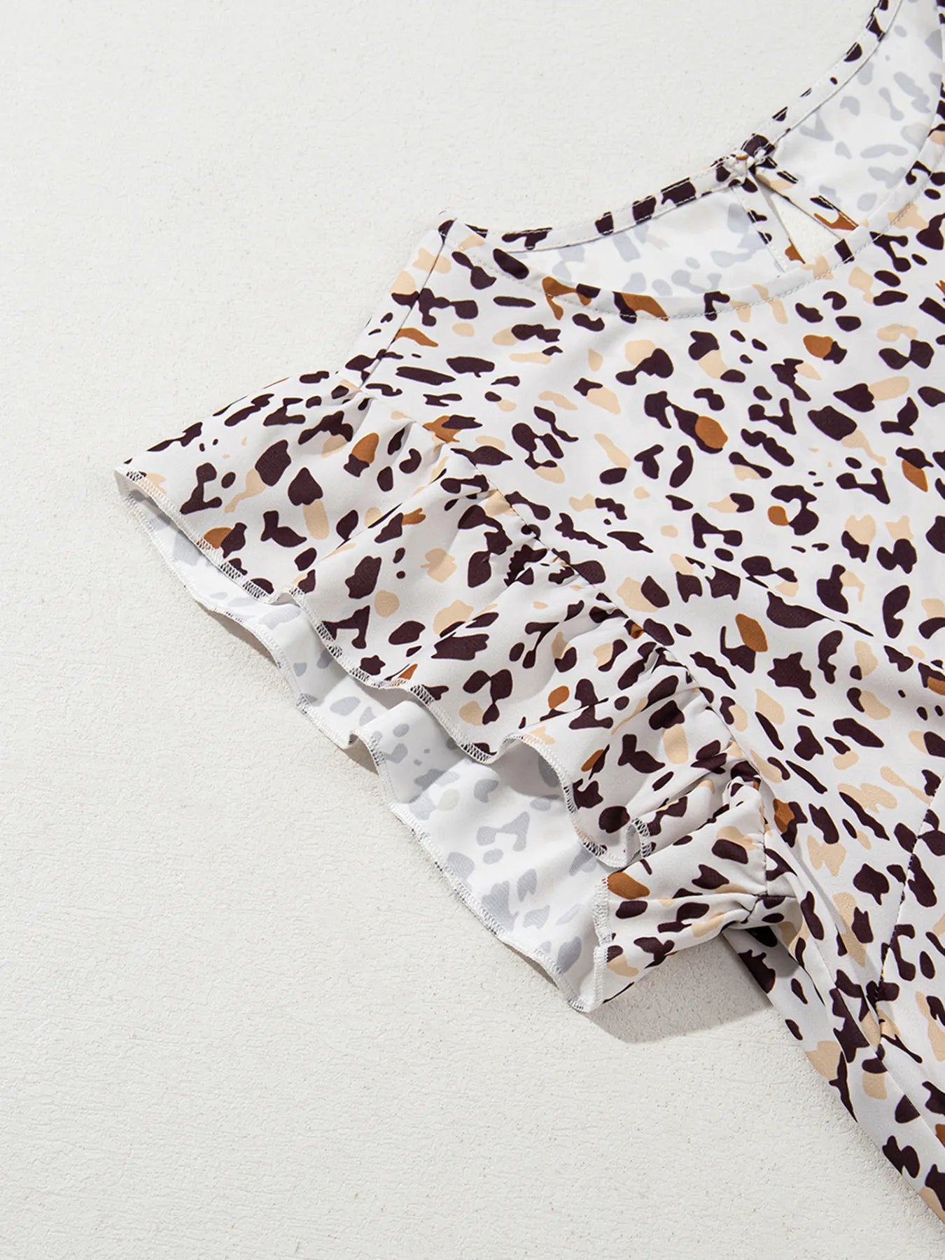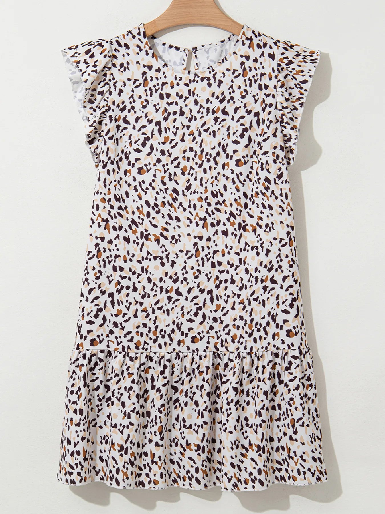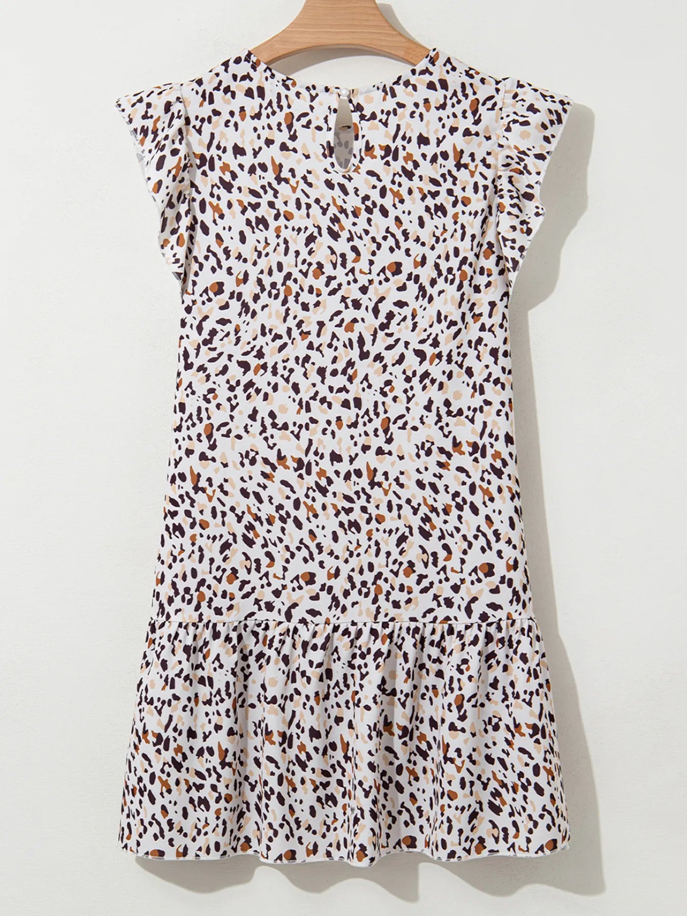Leopard Ruffled Flutter Sleeve Keyhole Back Mini Dress
