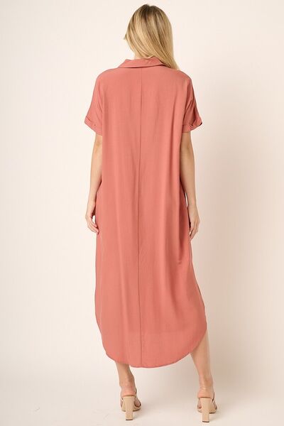 Mittoshop Collared Neck Dolman Short Sleeve Midi Shirt Dress