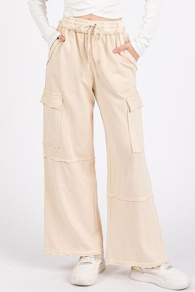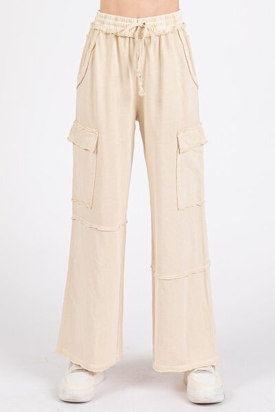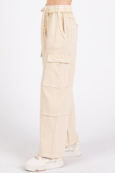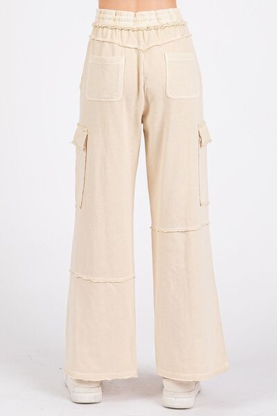 Mittoshop Mineral Wash Elastic Waist Cargo Wide Leg Pants