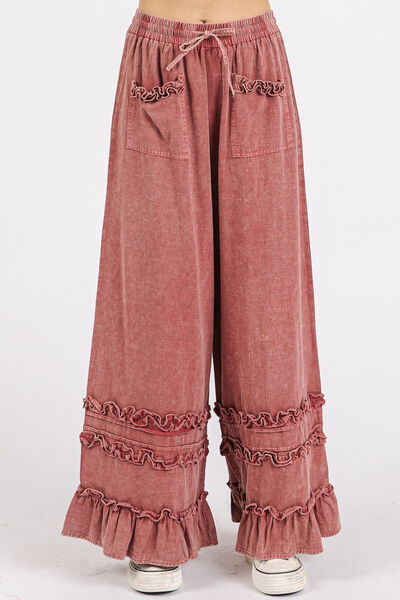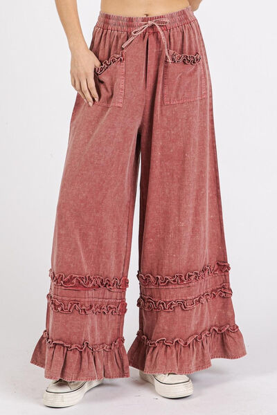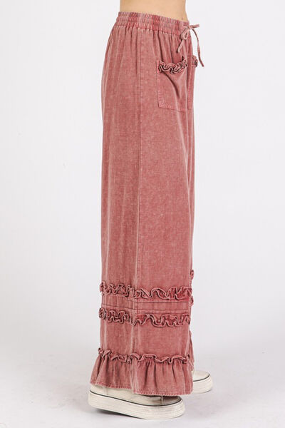 Mittoshop Ruffle Trim Pocket Mineral Wash Wide Leg Pants