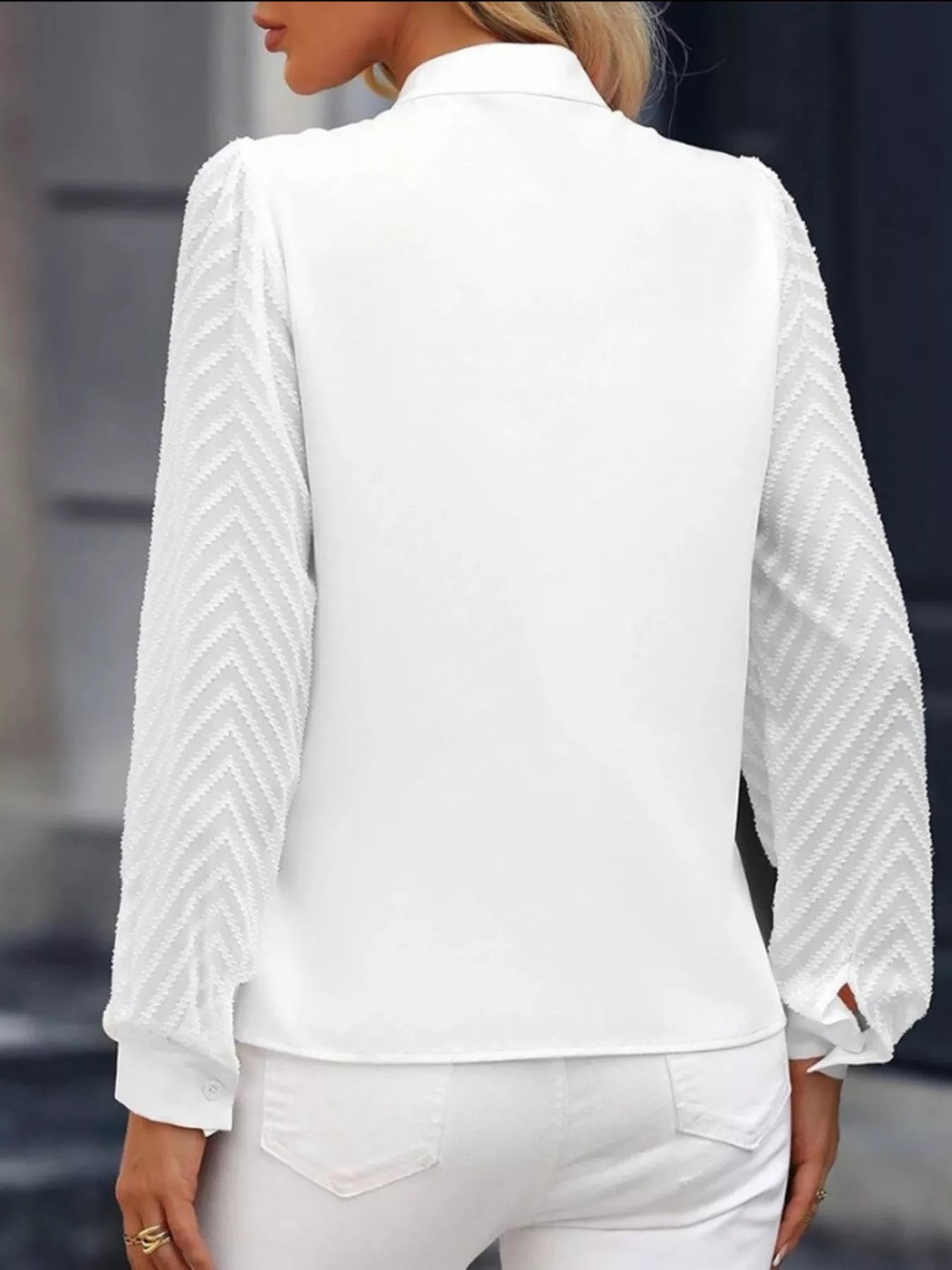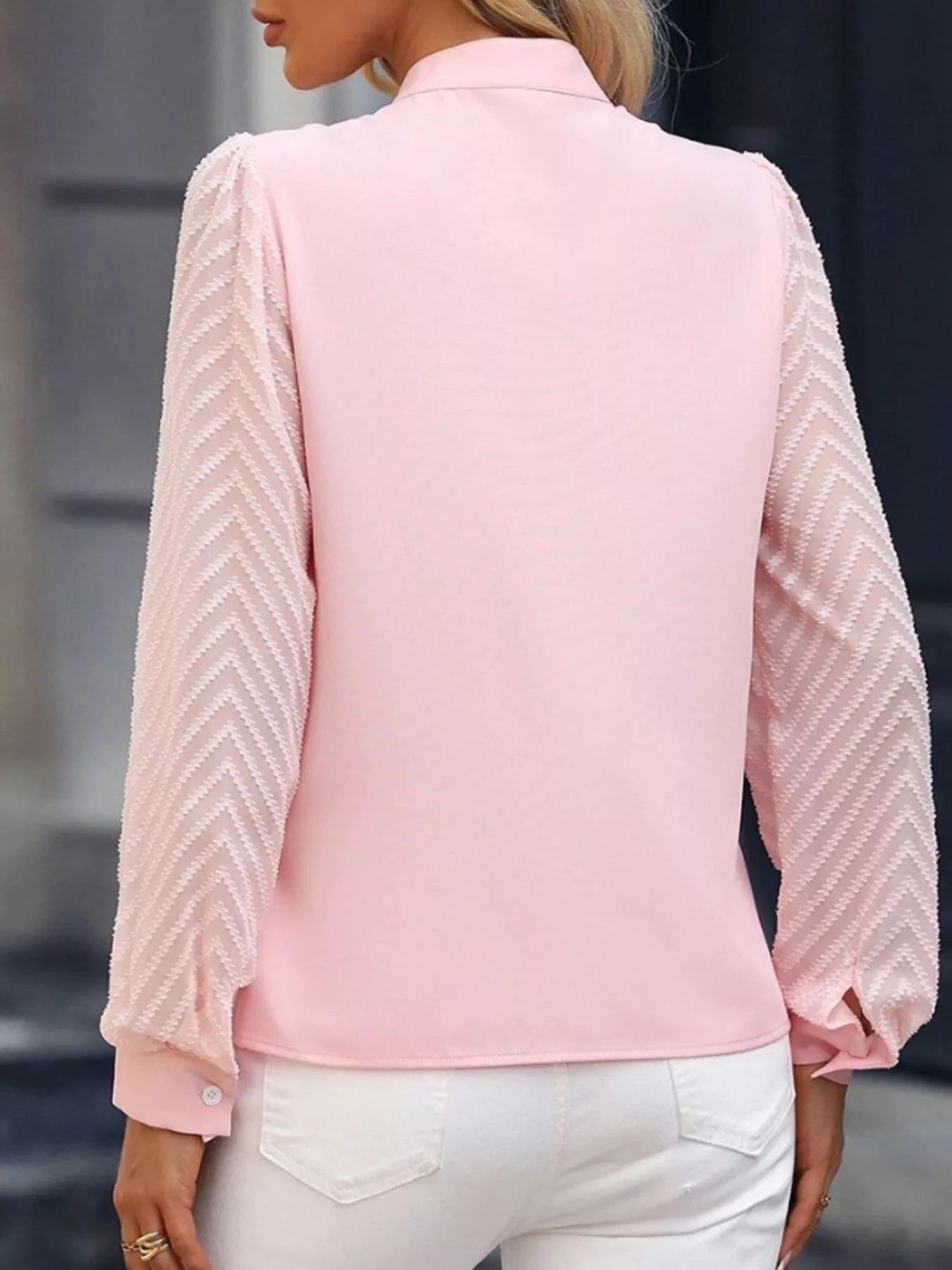 Notched Long Sleeve Blouse