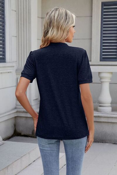 Notched Short Sleeve Top