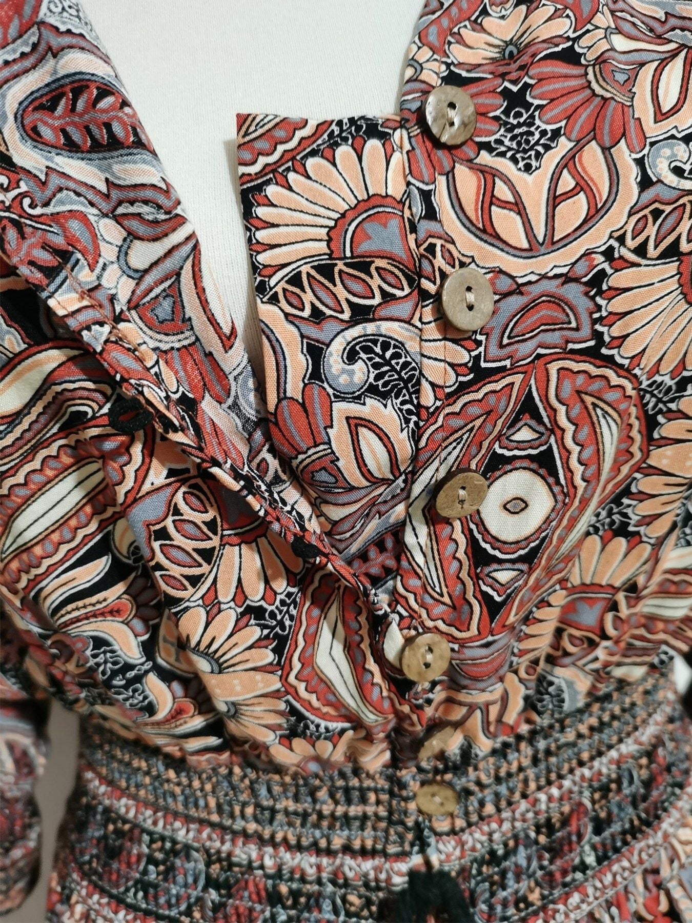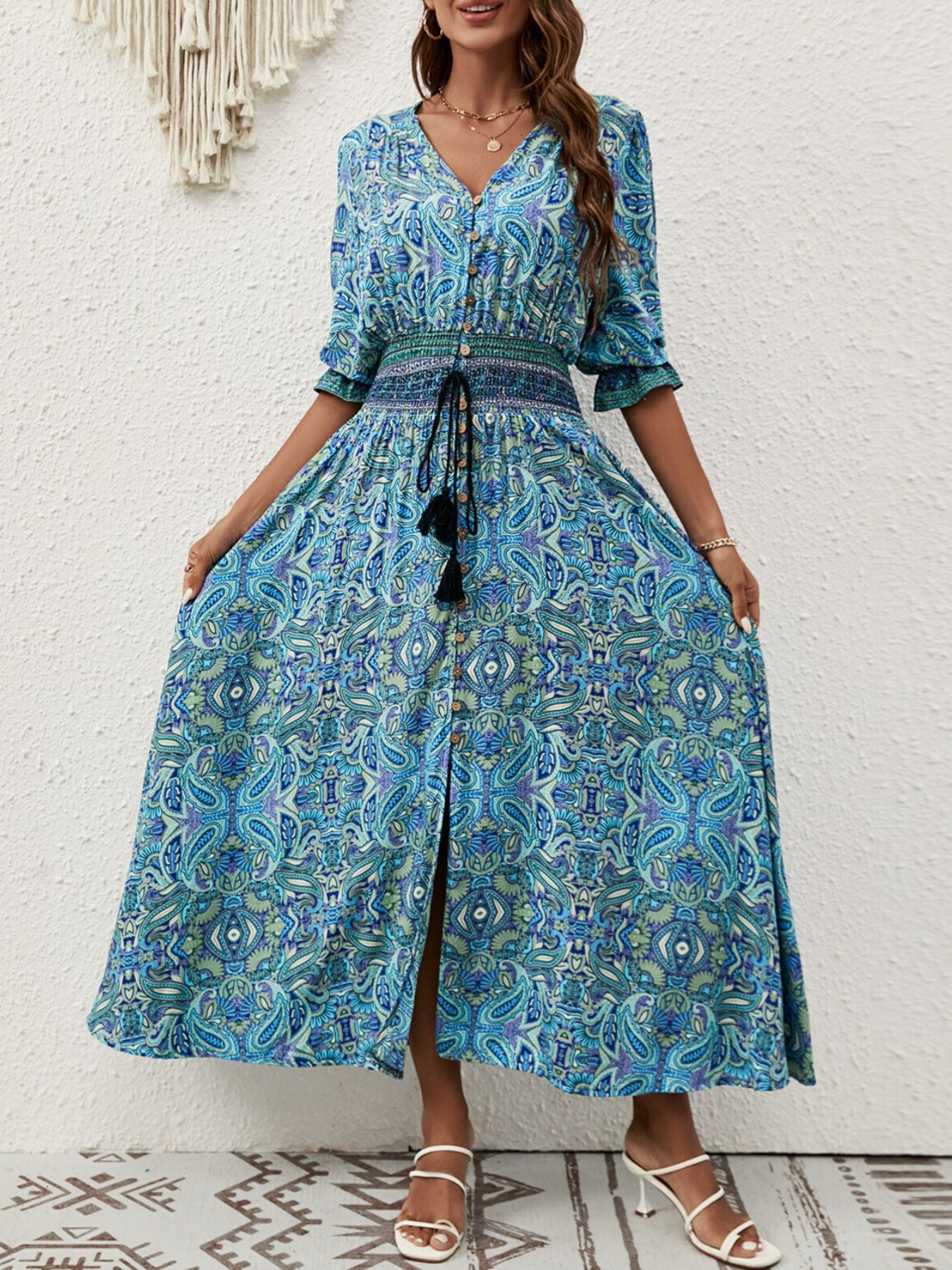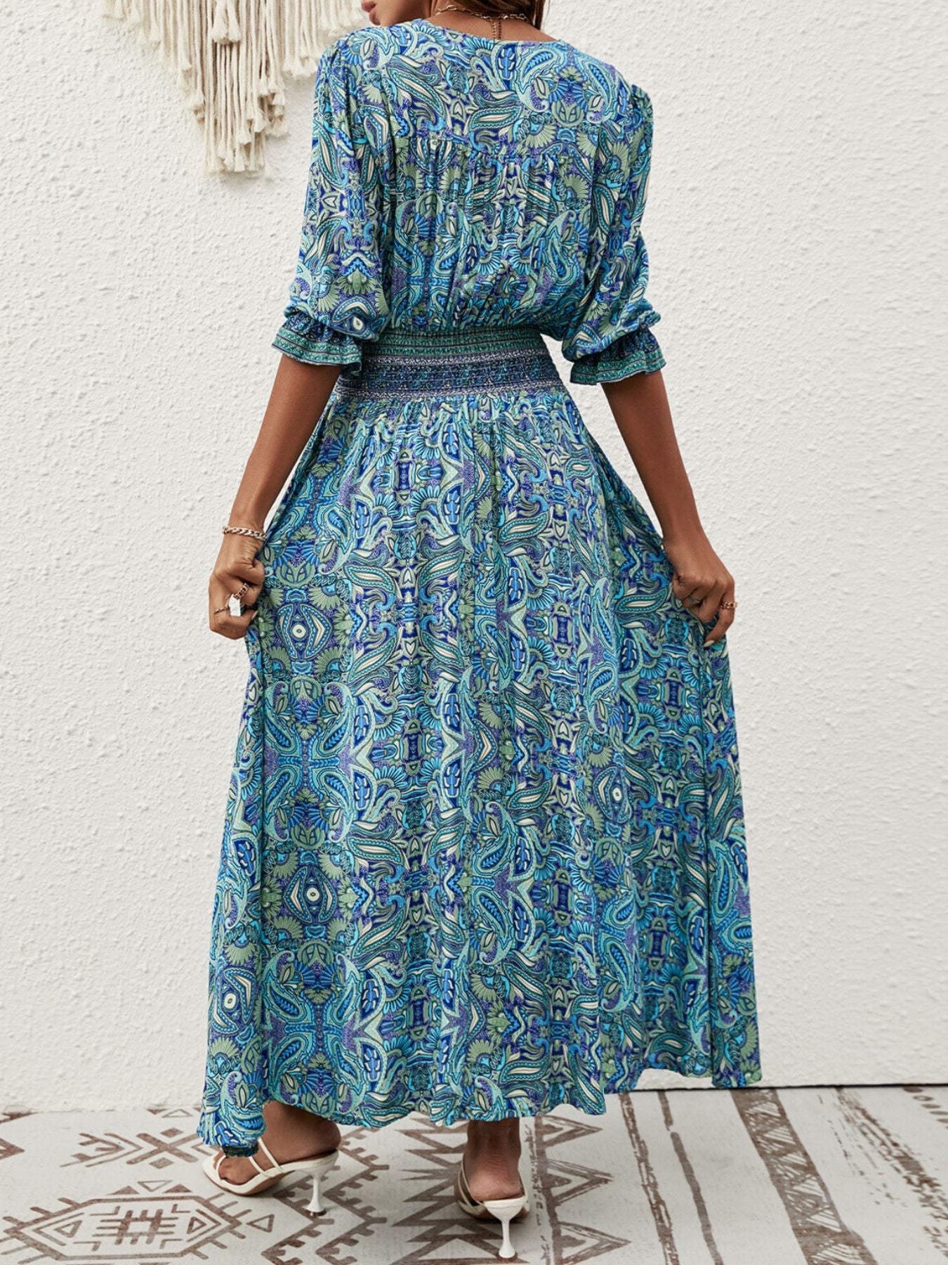 Floral Colorblock Ruffle Short Sleeve Midi Dress