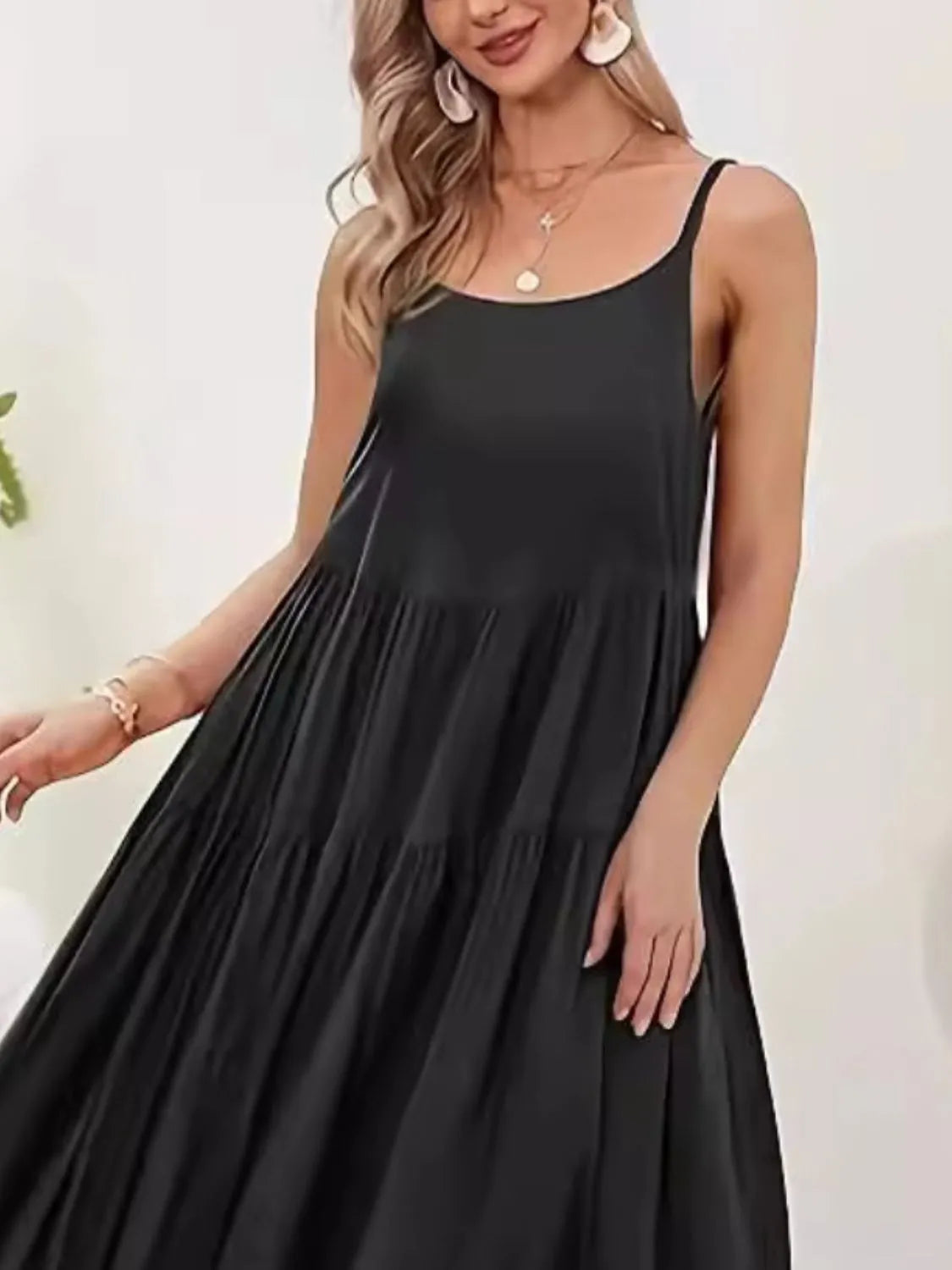 Plus Size Scoop Neck Sleeveless Midi Cami Dress