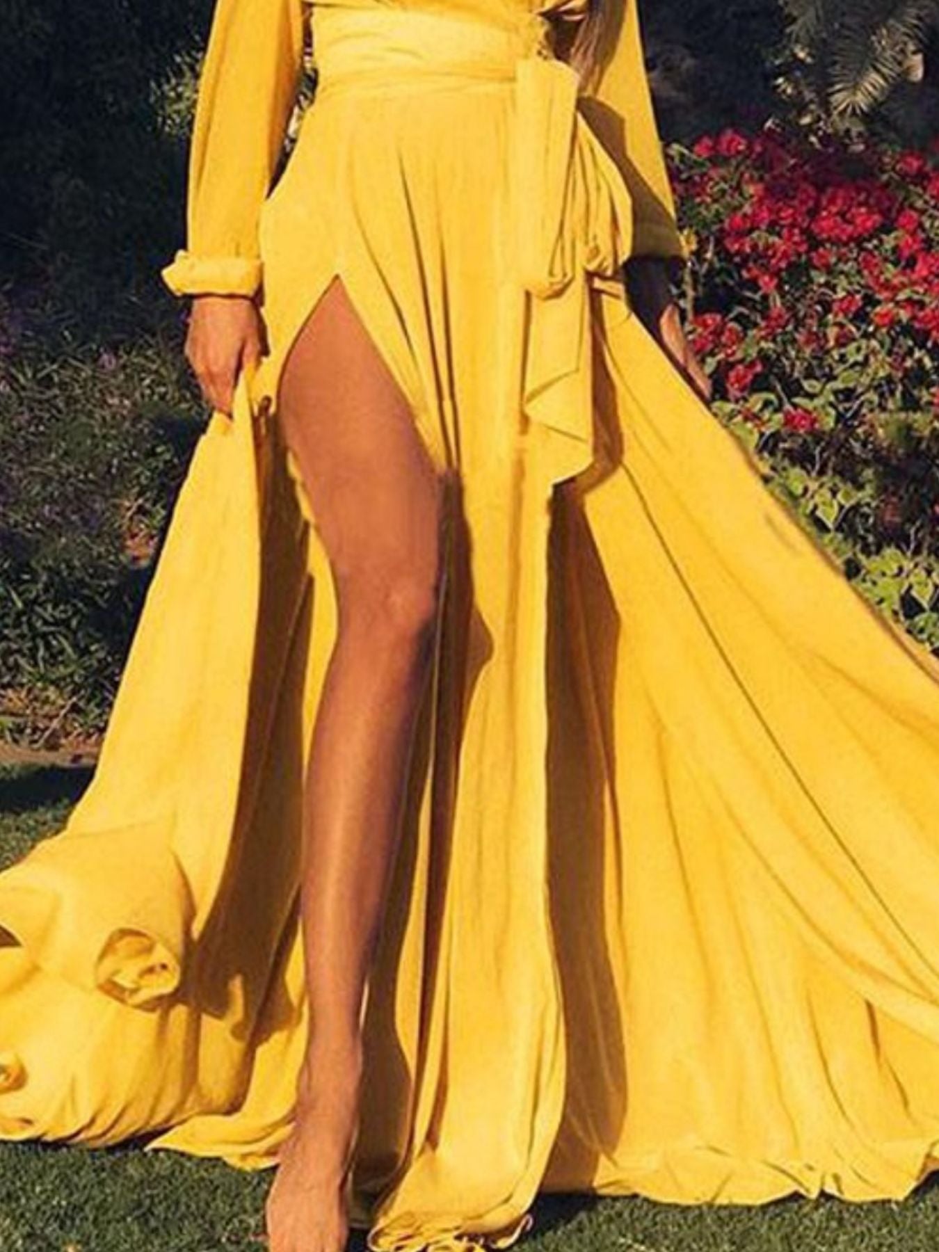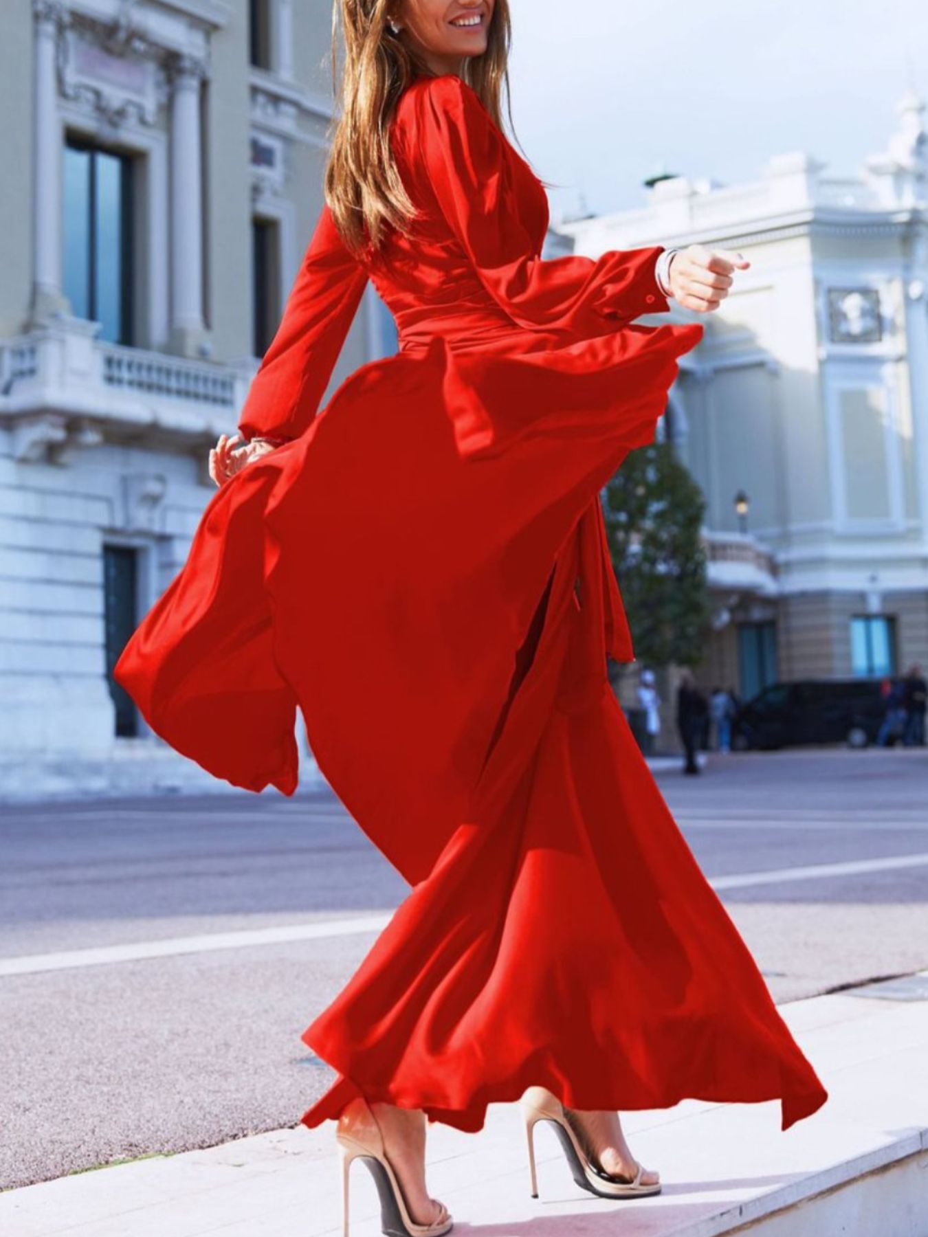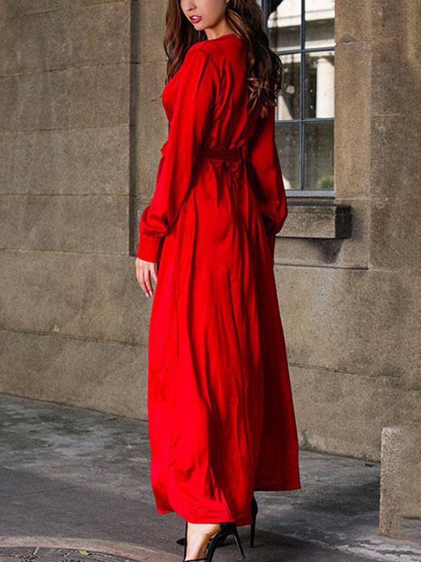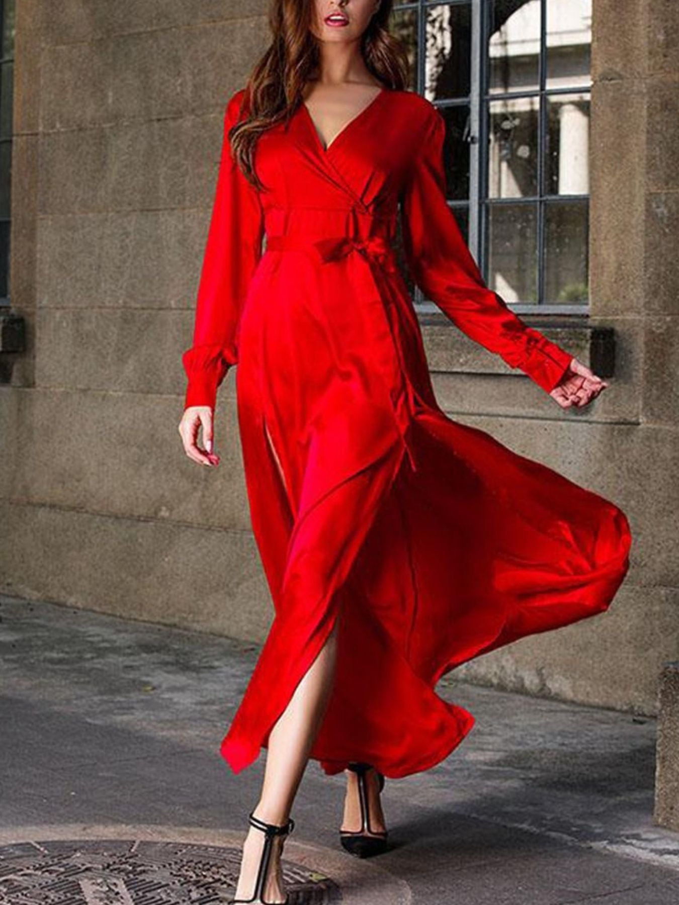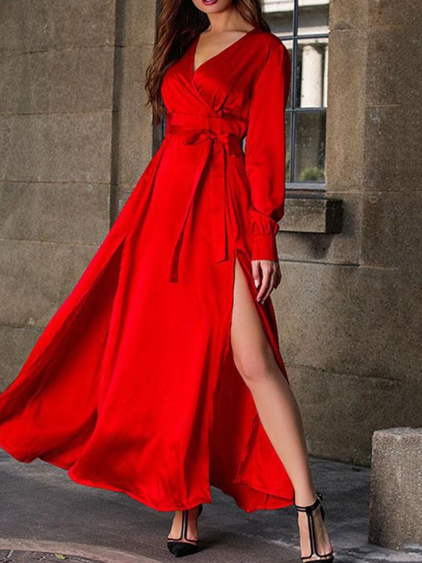 Plus Size Surplice Long Sleeve Slit Maxi Dress