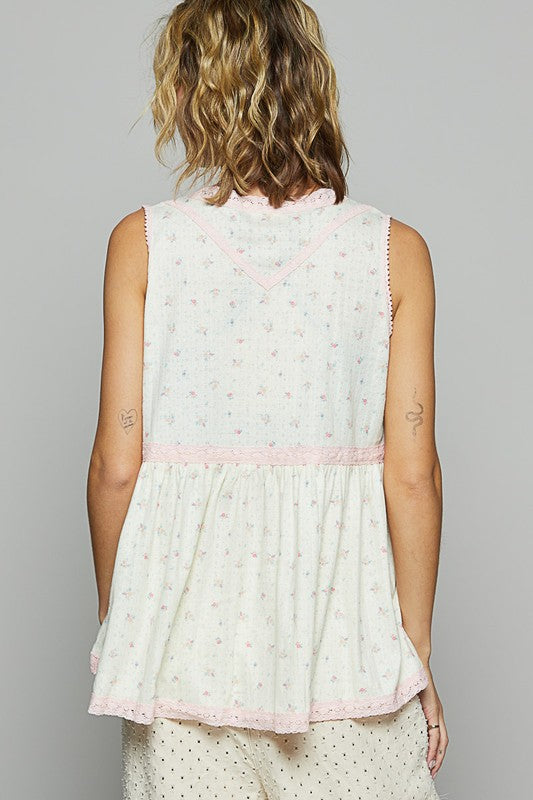 POL Lace Detail Floral V-Neck Sleeveless Top