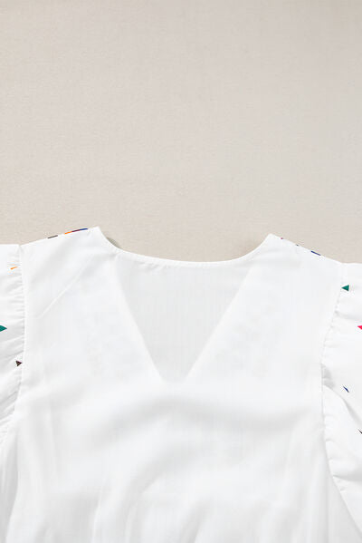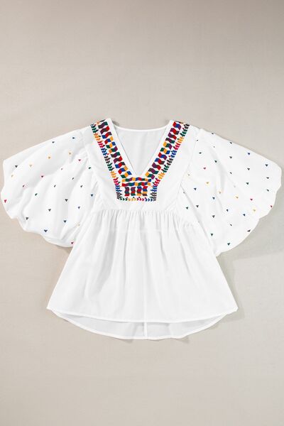 Contrast Scallop Trim V Neck Long Sleeve Blouse