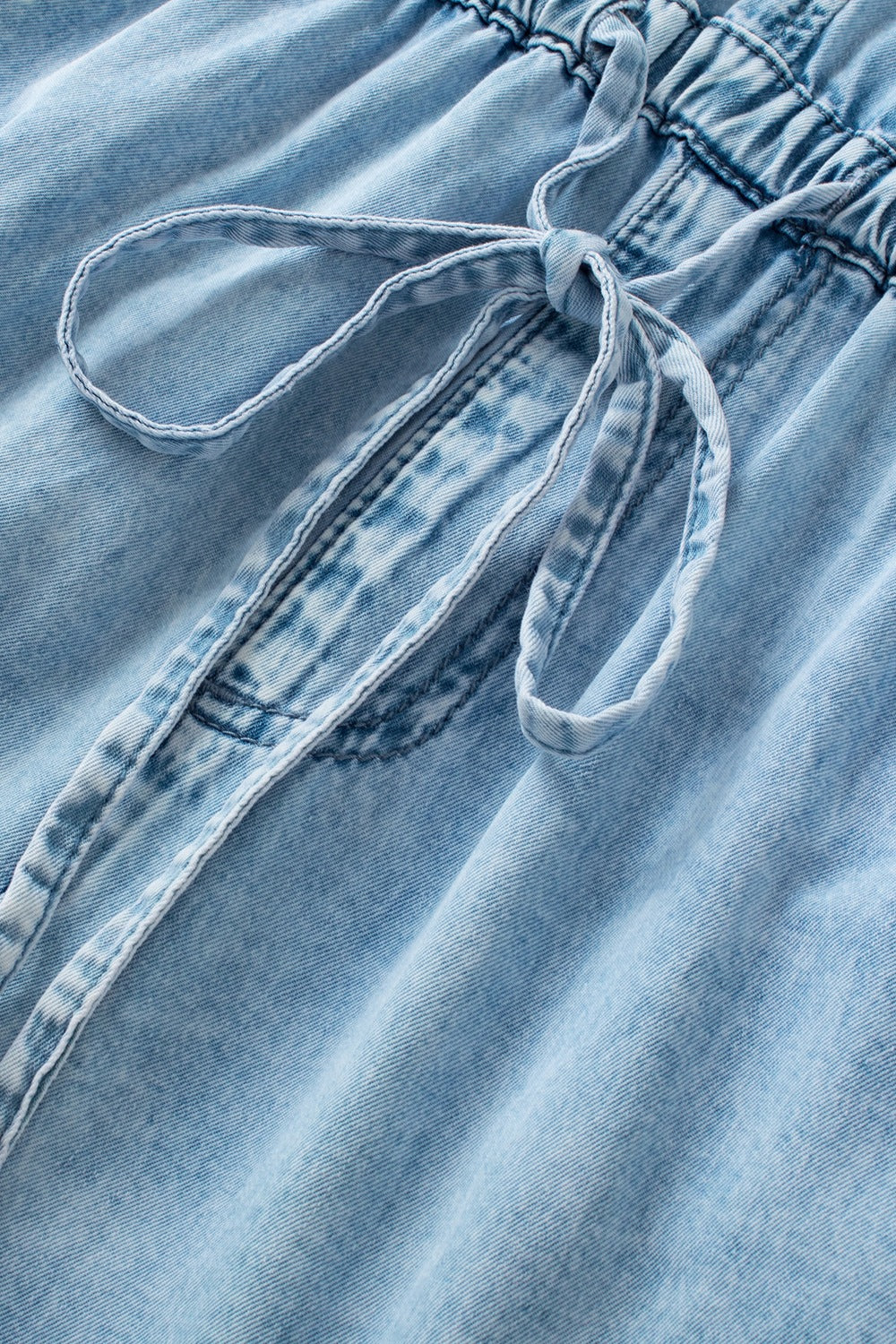 Raw Hem Studded V-Neck Drawstring Sleeveless Denim Romper