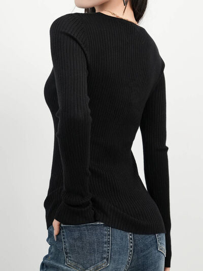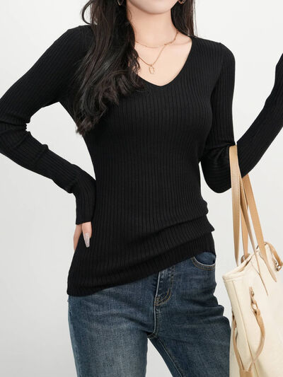 Contrast Scallop Trim V Neck Long Sleeve Blouse
