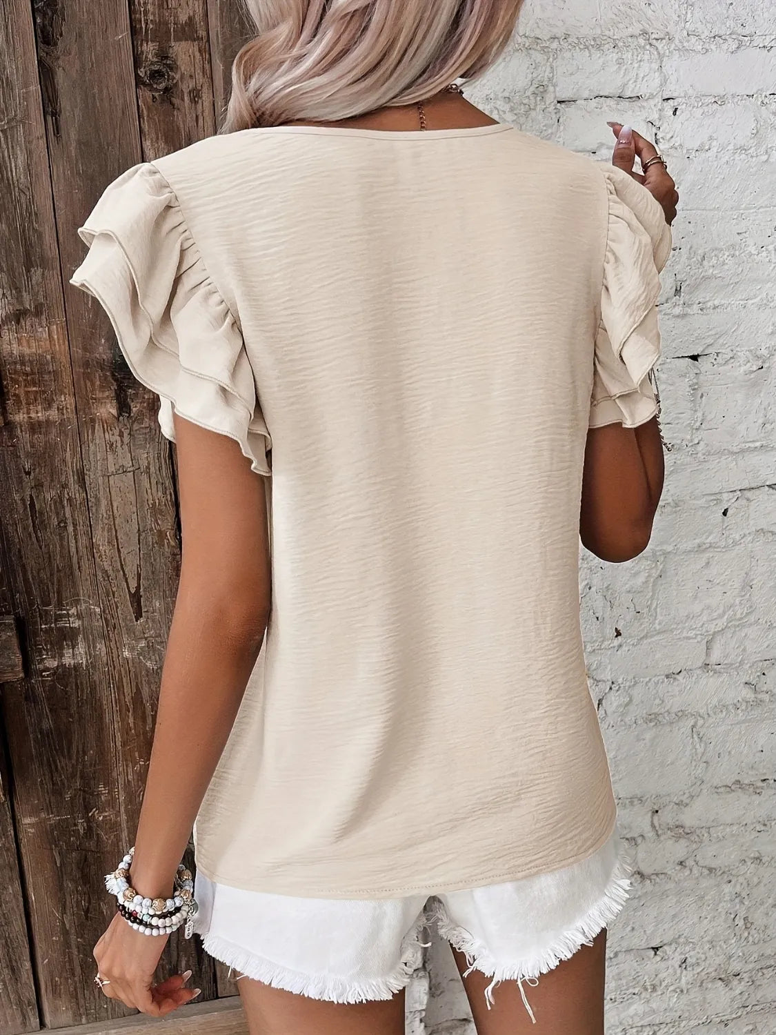 Ruffled Round Neck Cap Sleeve Blouse