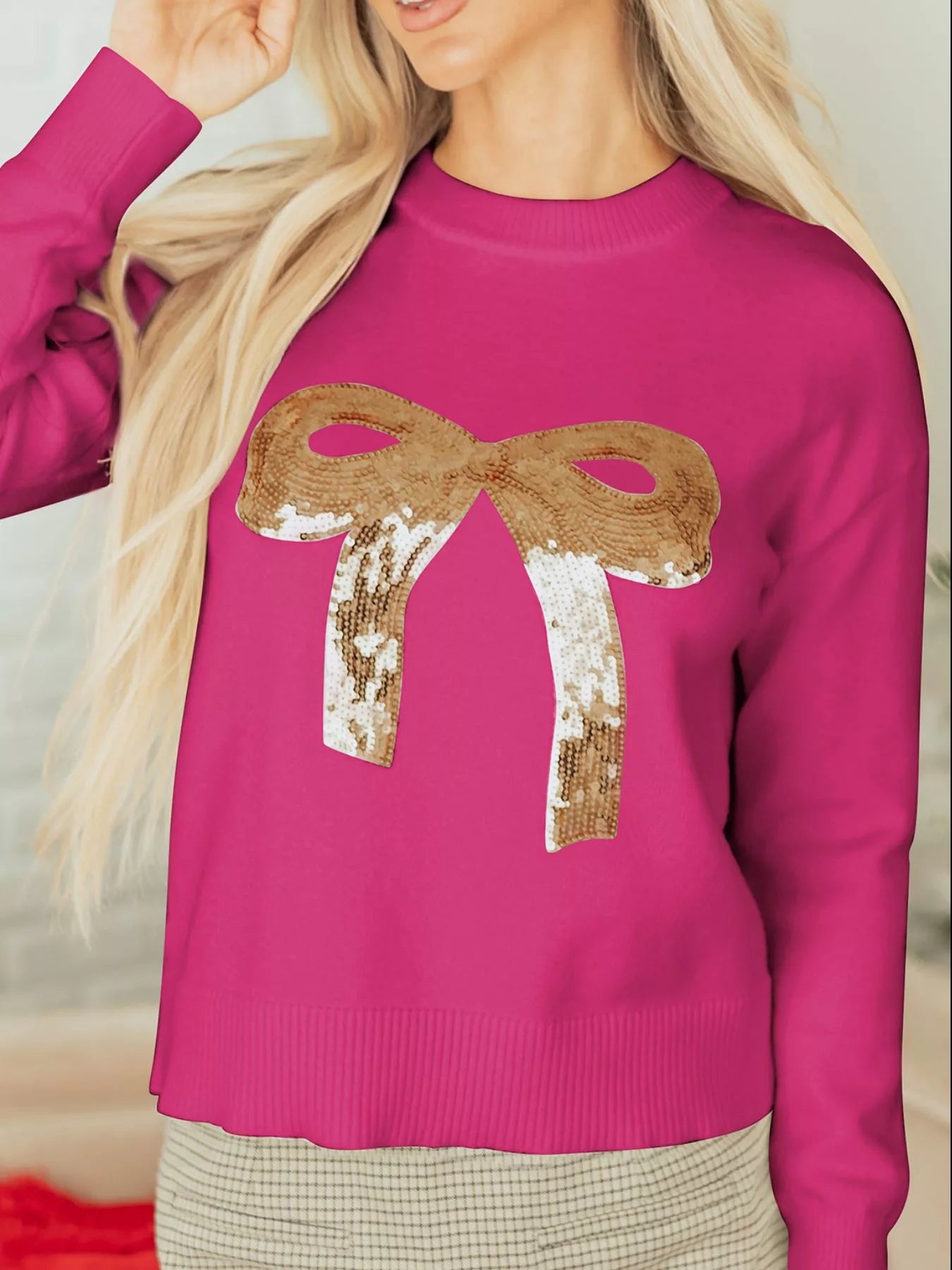 Sequined Bow Graphic Christmas Holiday Sweater