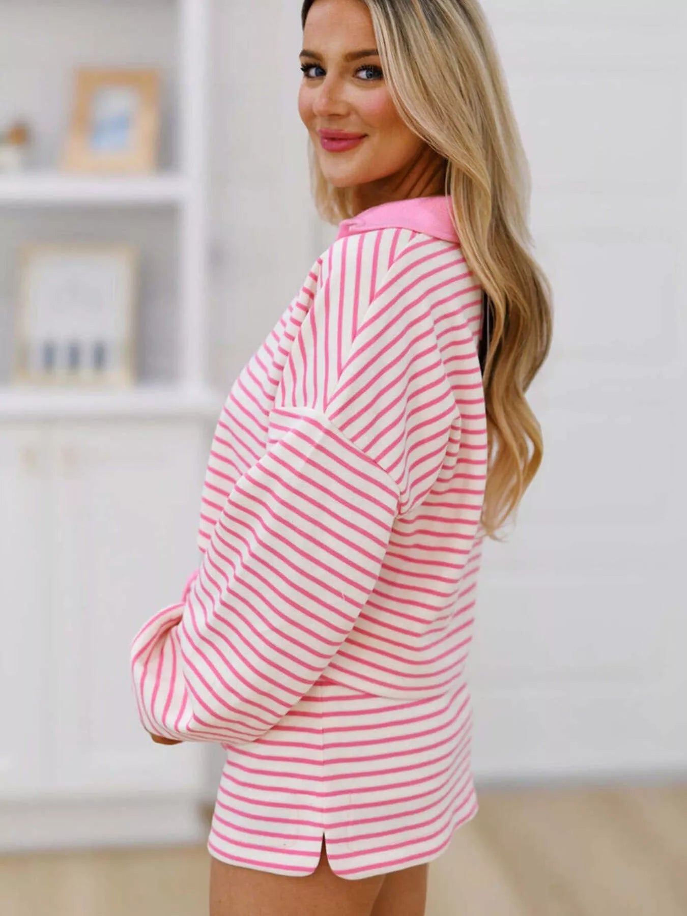 Striped Dropped Shoulder Top and Skirt Set
