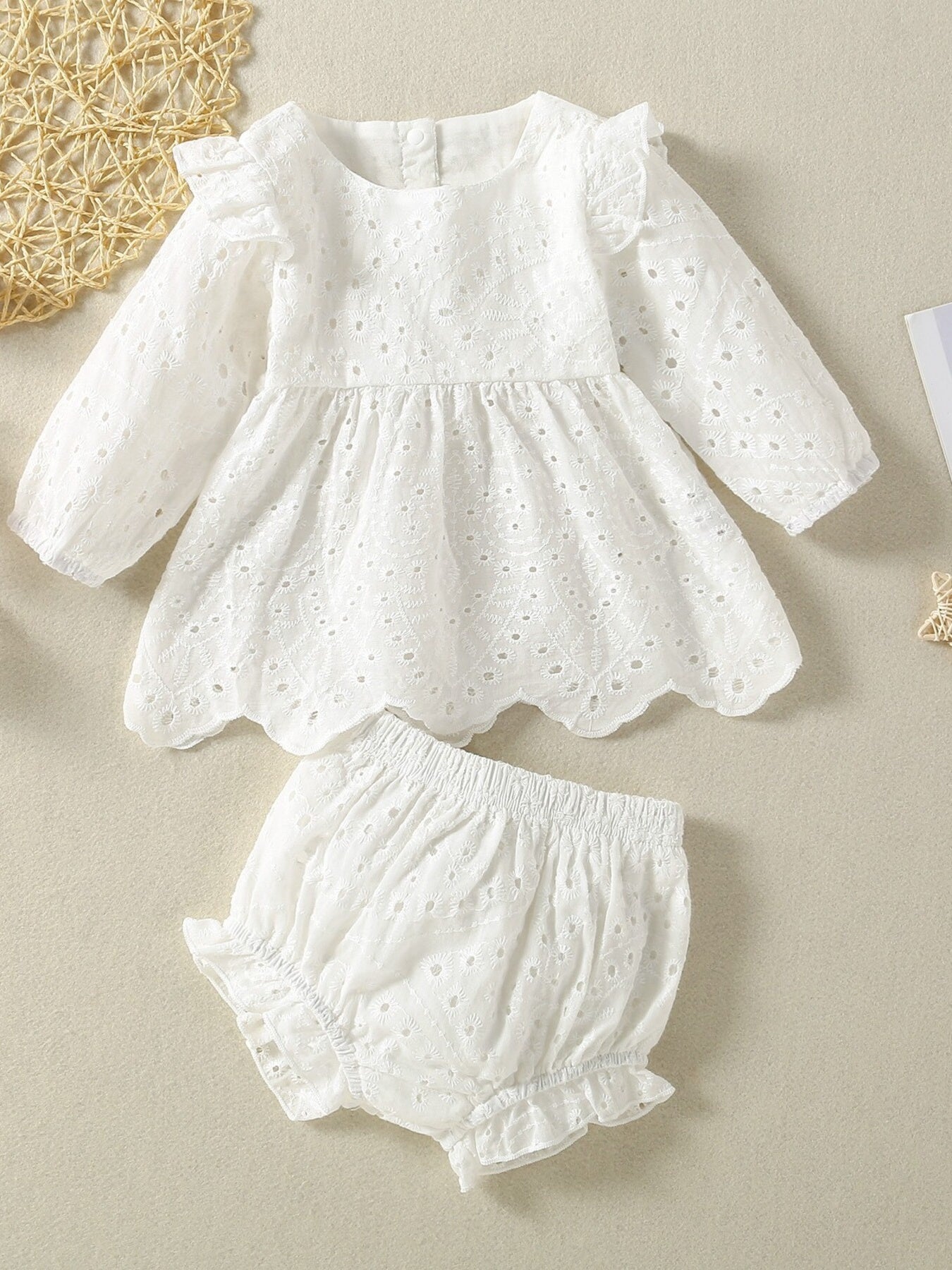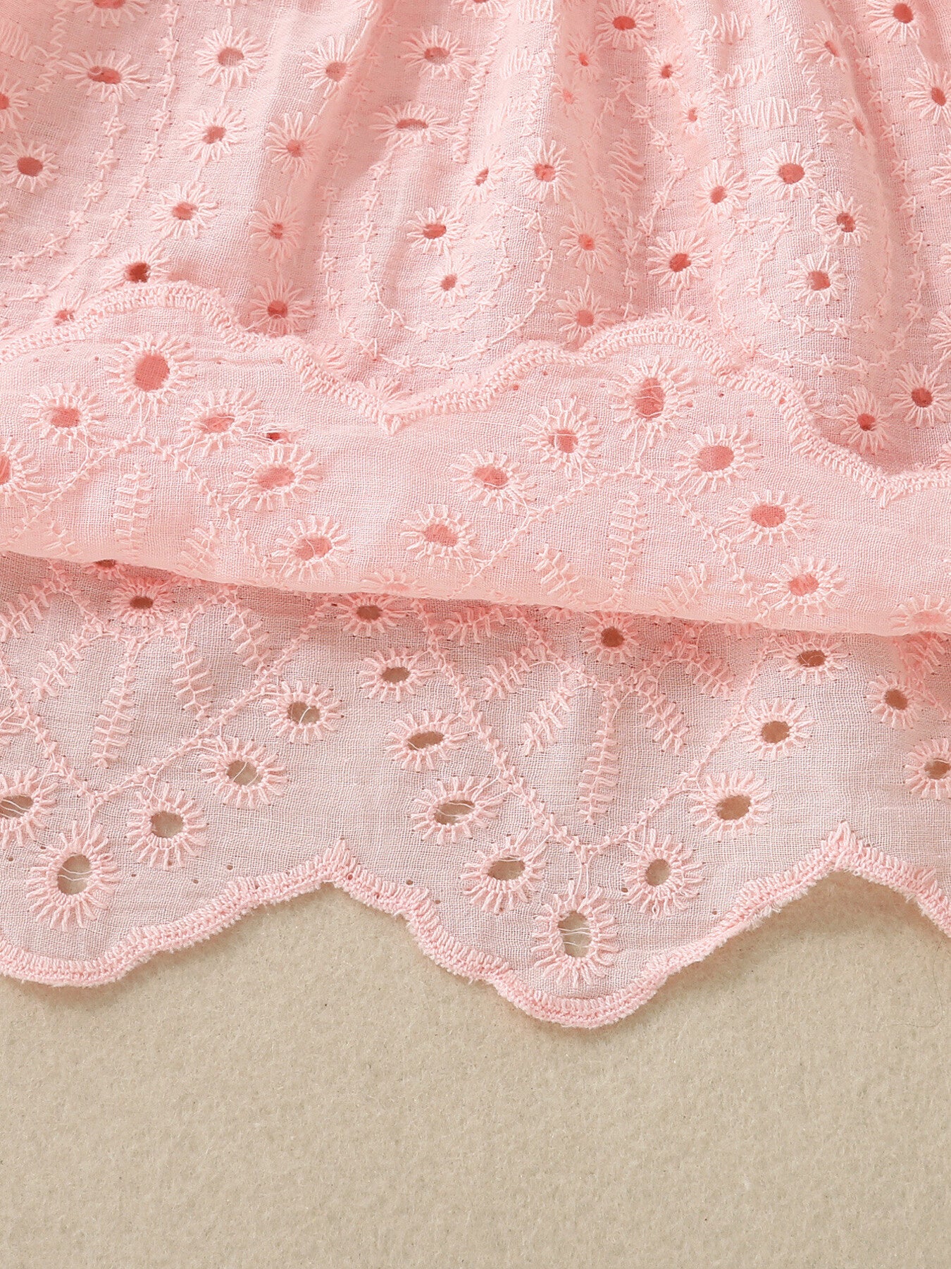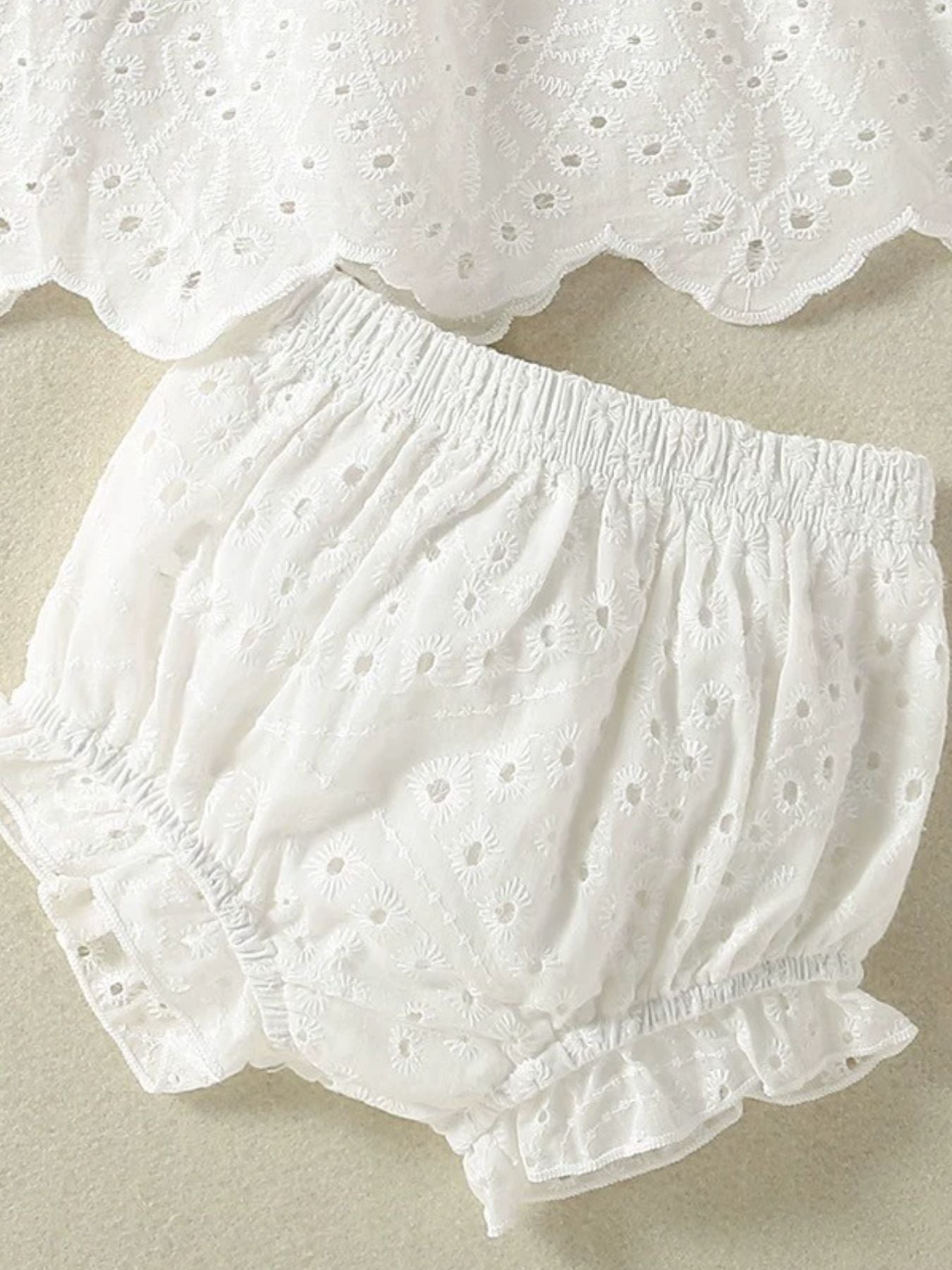 Children's Eyelet Embroidered Ruffled Top and Shorts Set
